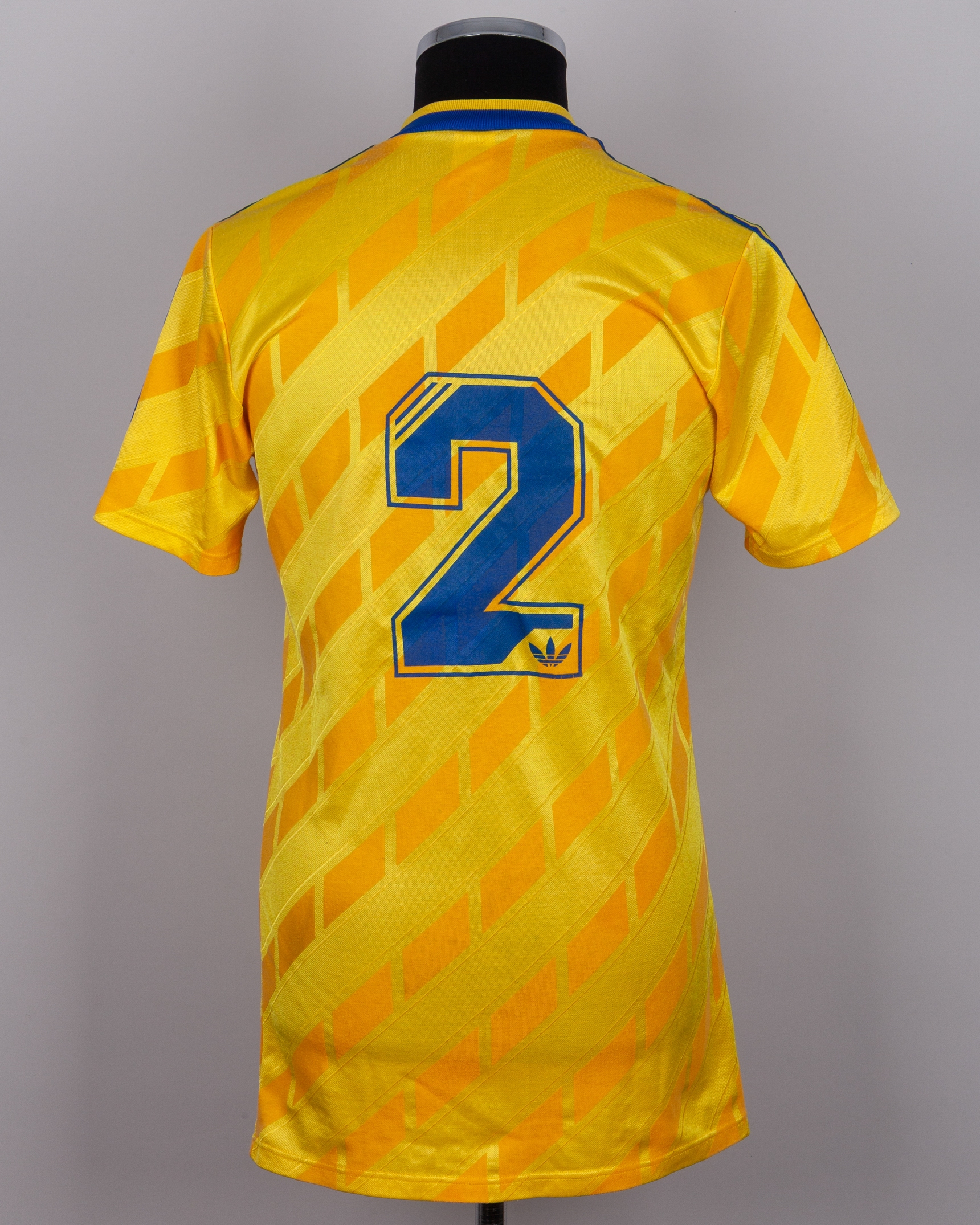 Roland Nilsson yellow No.2 Sweden v. Poland match worn short-sleeved shirt, 1989