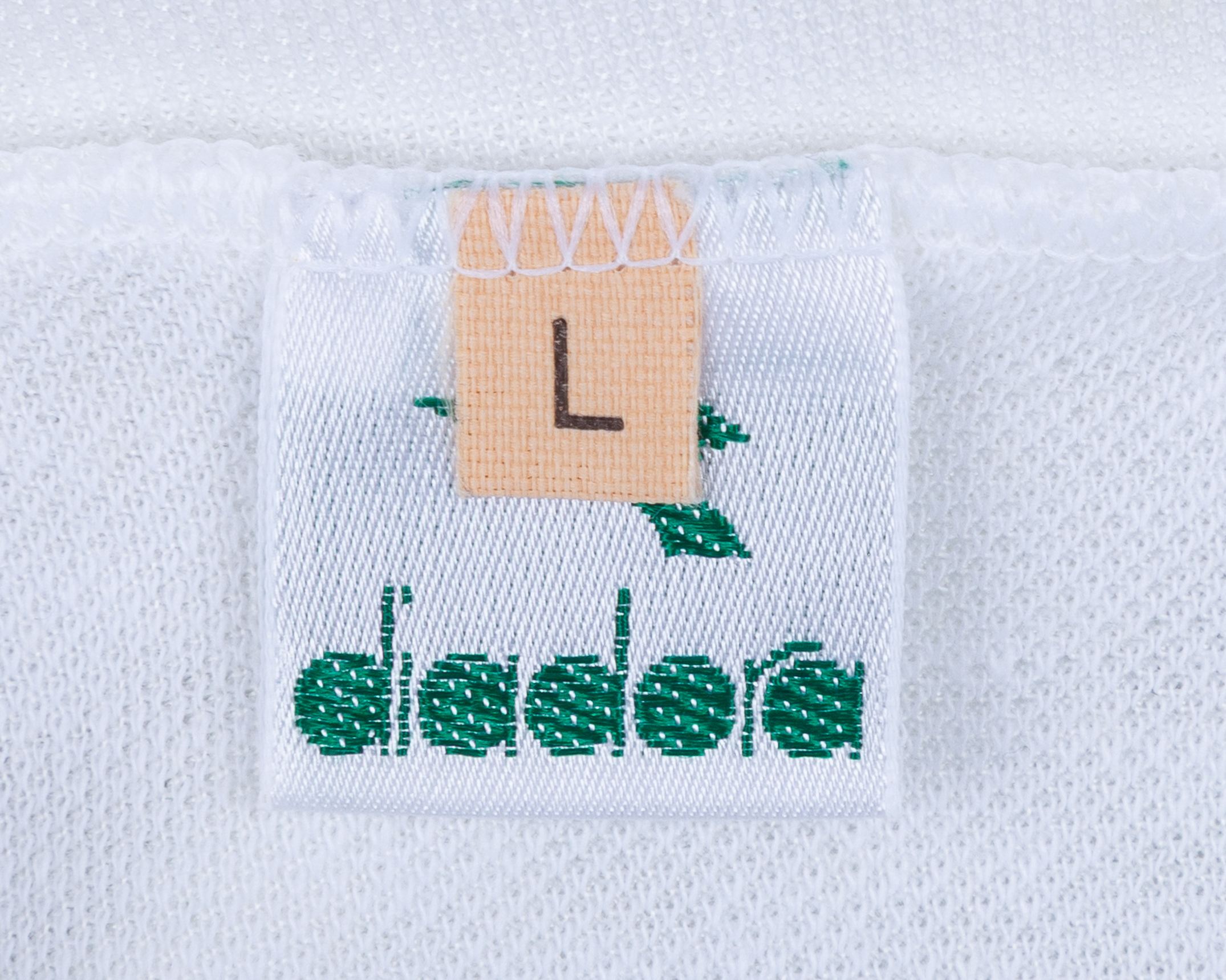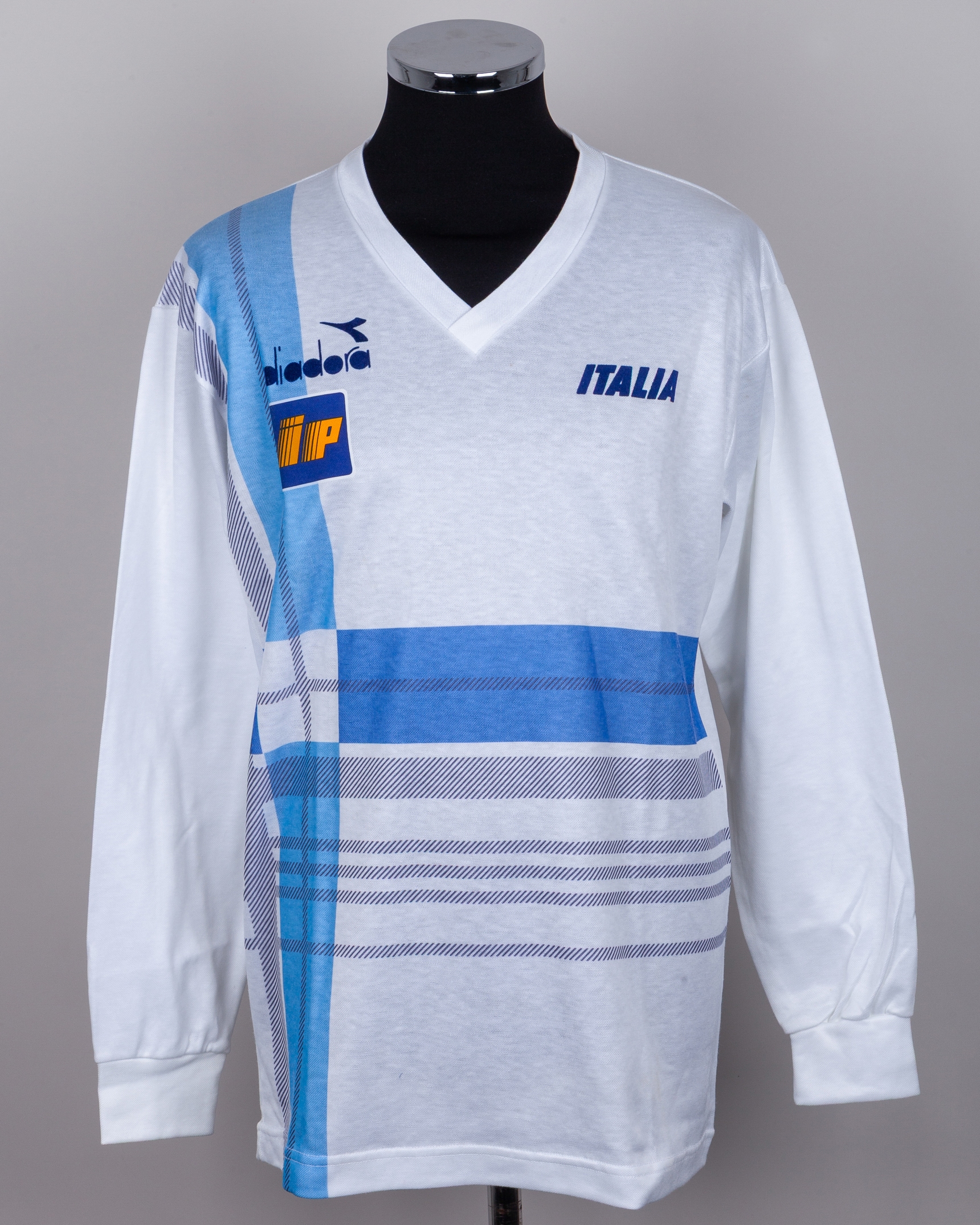 Gianluca Vialli white Italy worn training shirt, 1987, Diadora, L, with v-neck collar
