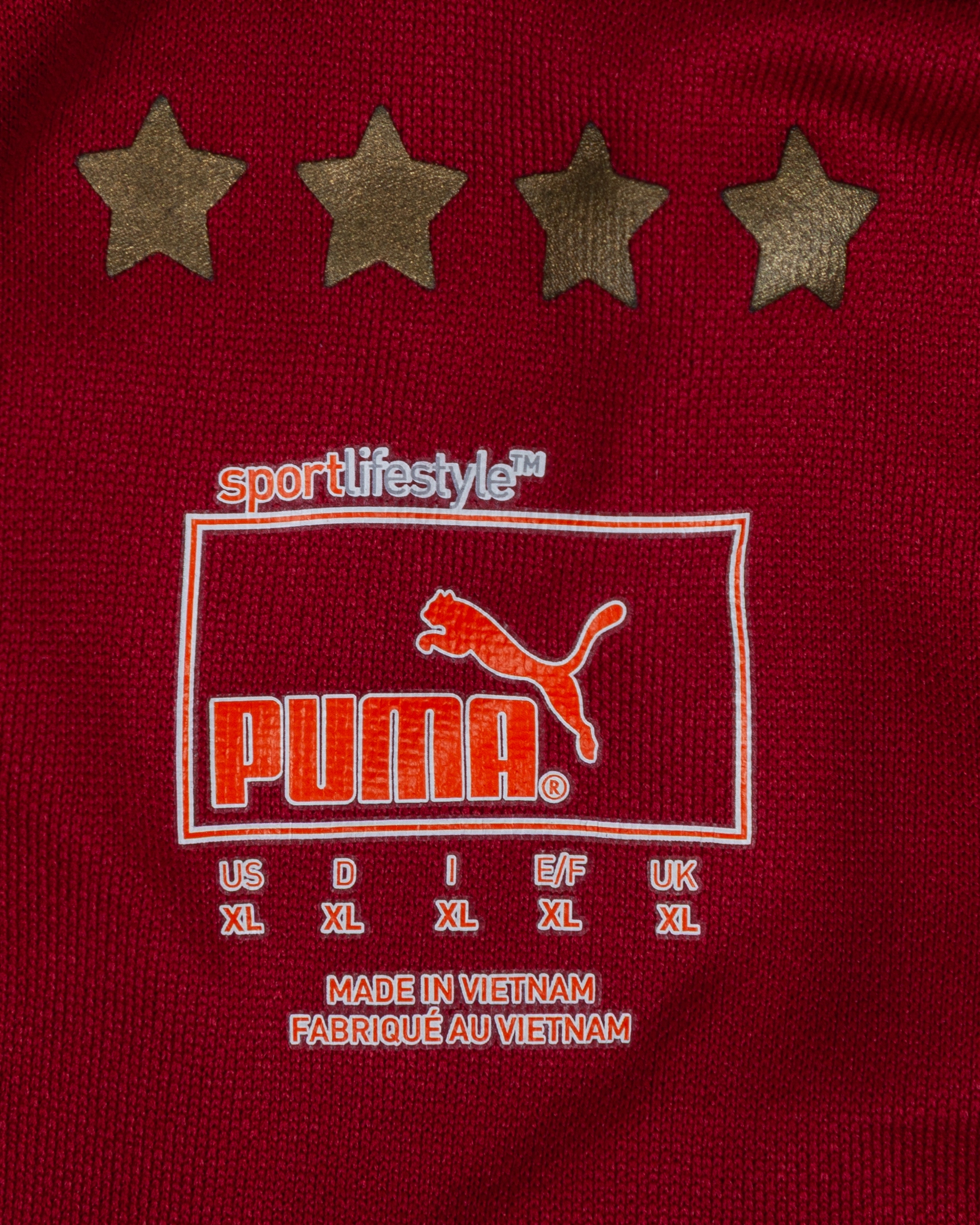 Gianluigi Buffon blue and red No.1 Italy v. Bulgaria match worn short-sleeved shirt, 2013, Puma, XL, with crew-neck collar and printed badge, the reverse lettered buffon, the sleeves 2014 FIFA World Cup Brazil qualifying flashes, some staining to front and slight wear to number