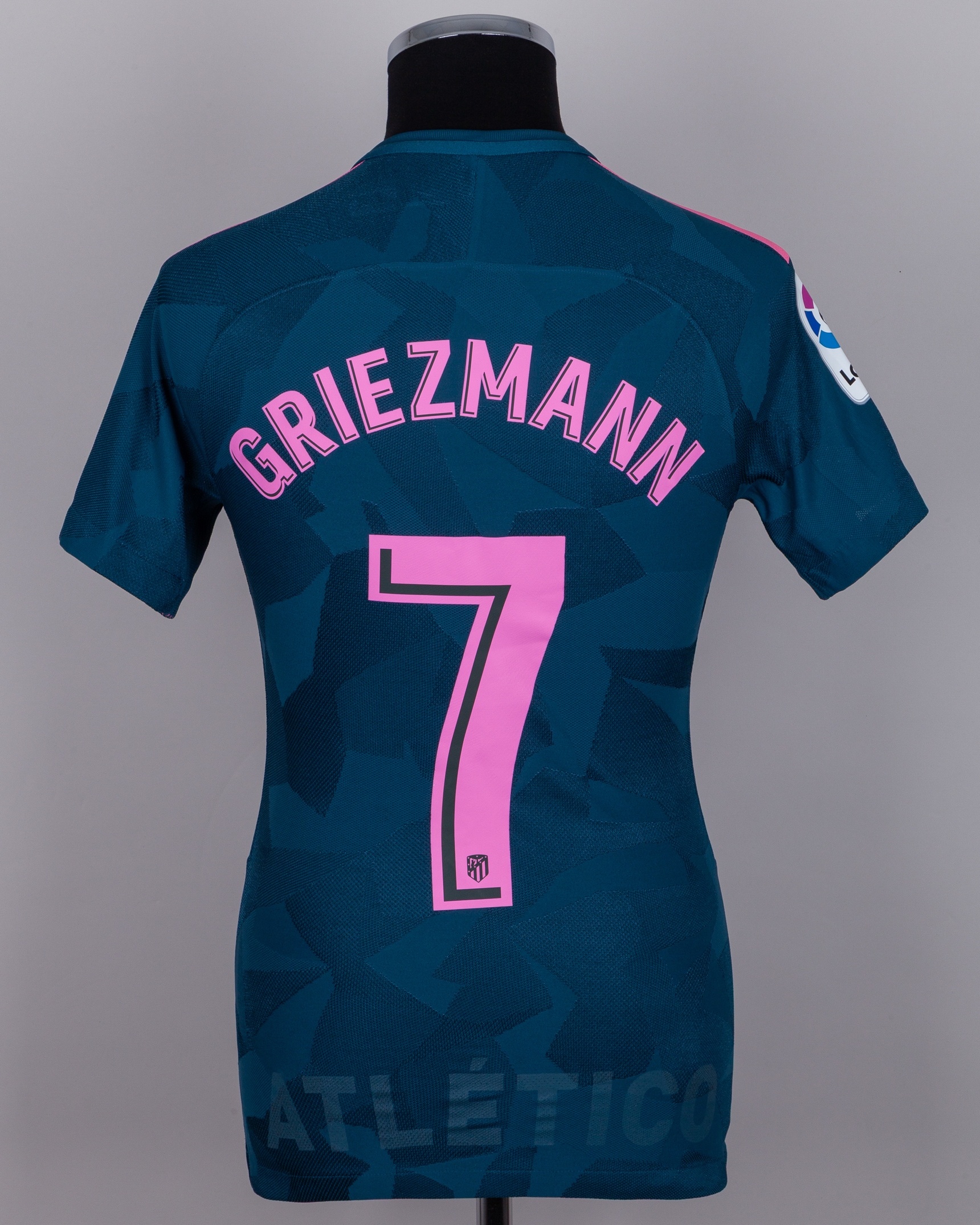 Antoinne Griezmann blue and pink No.7 Atletico Madrid match issued short-sleeved shirt