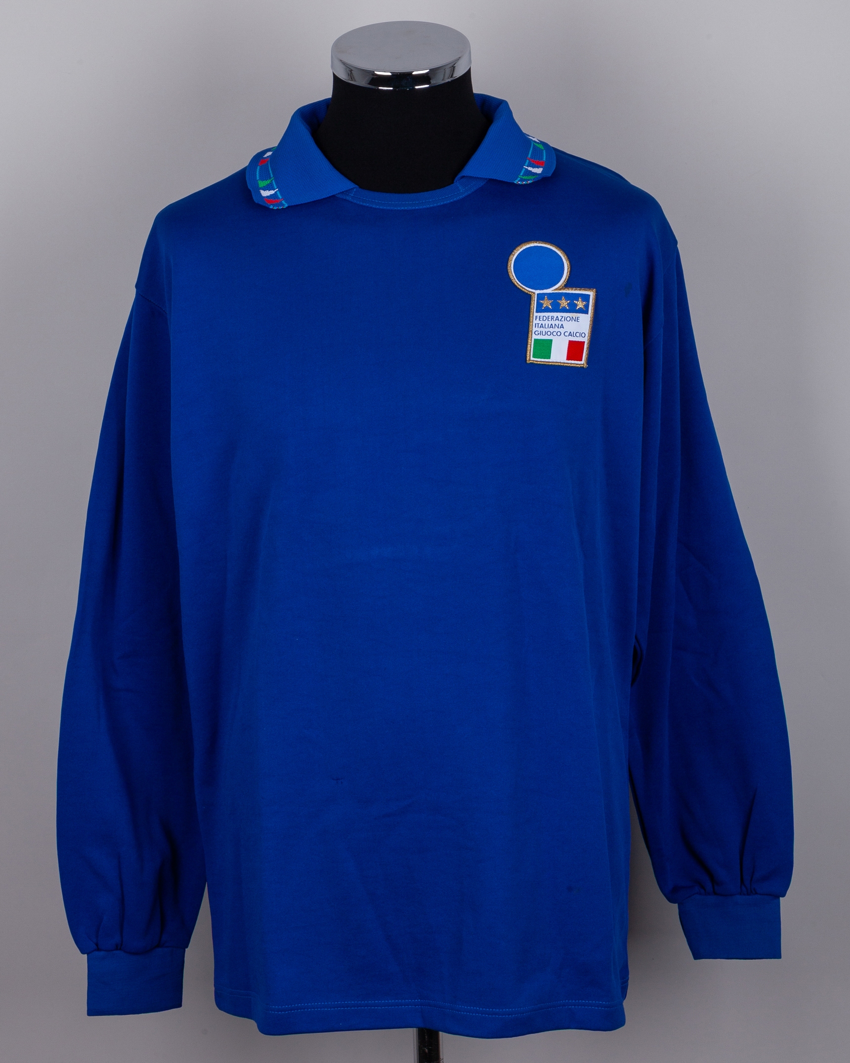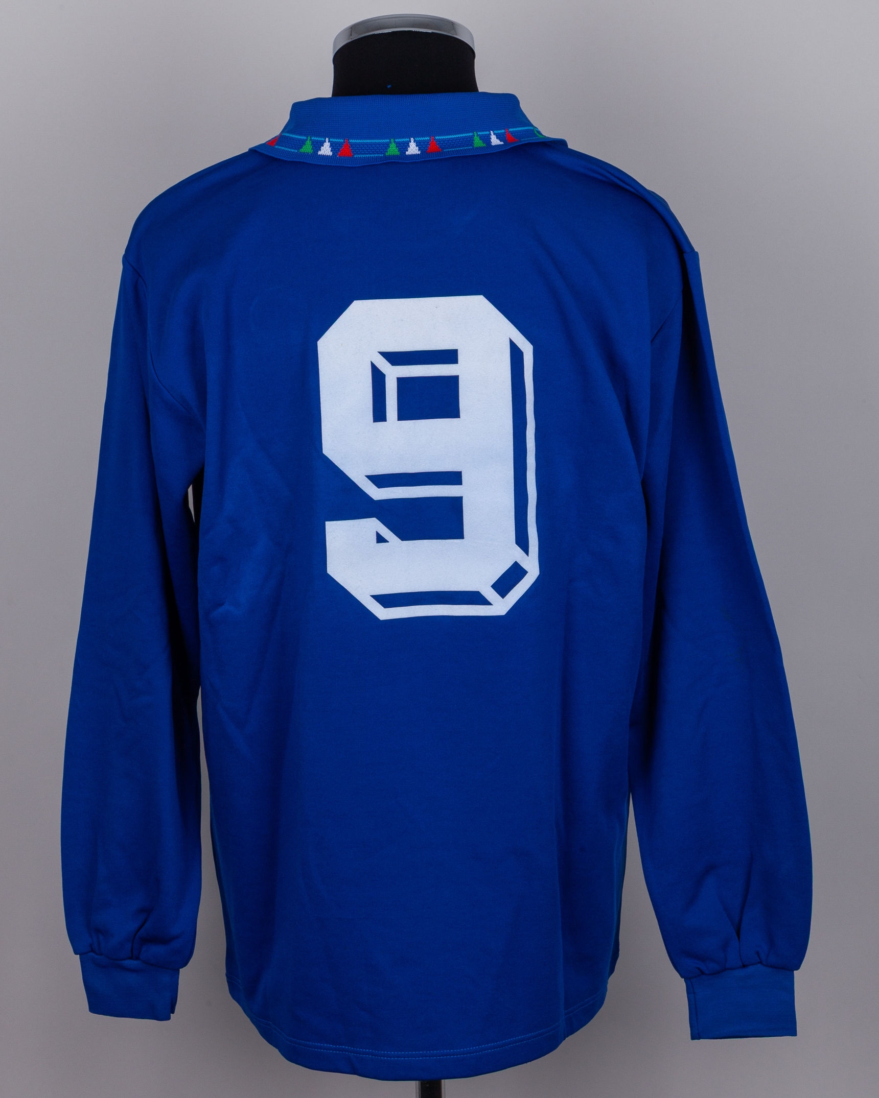 Gianluca Vialli blue No.9 Italy v. USSR match worn long-sleeved shirt, 1991