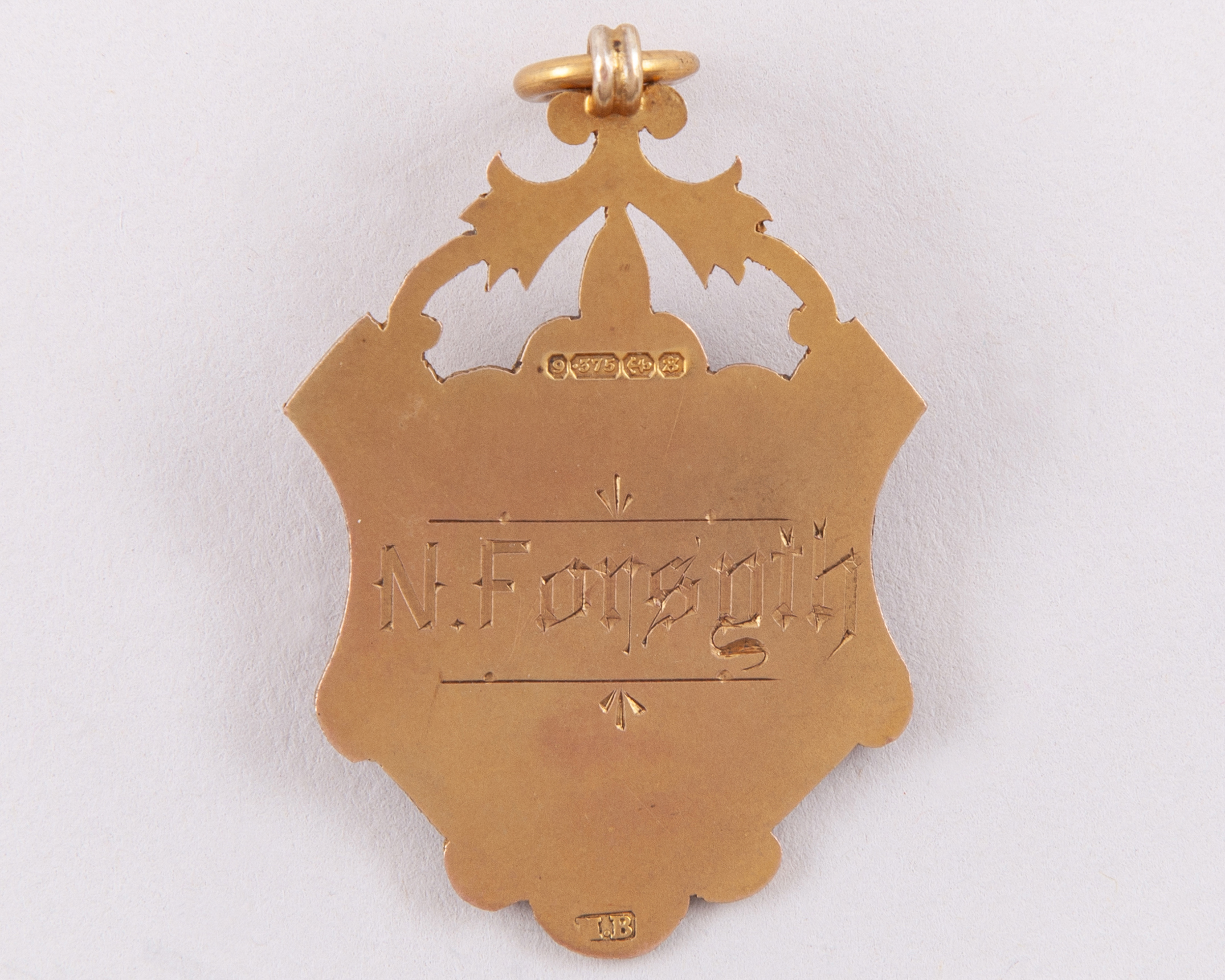 N Forsyth 9ct gold medal, the obverse inscribed F.F.C.A., the reverse inscribed N. Forsyth, 6grms