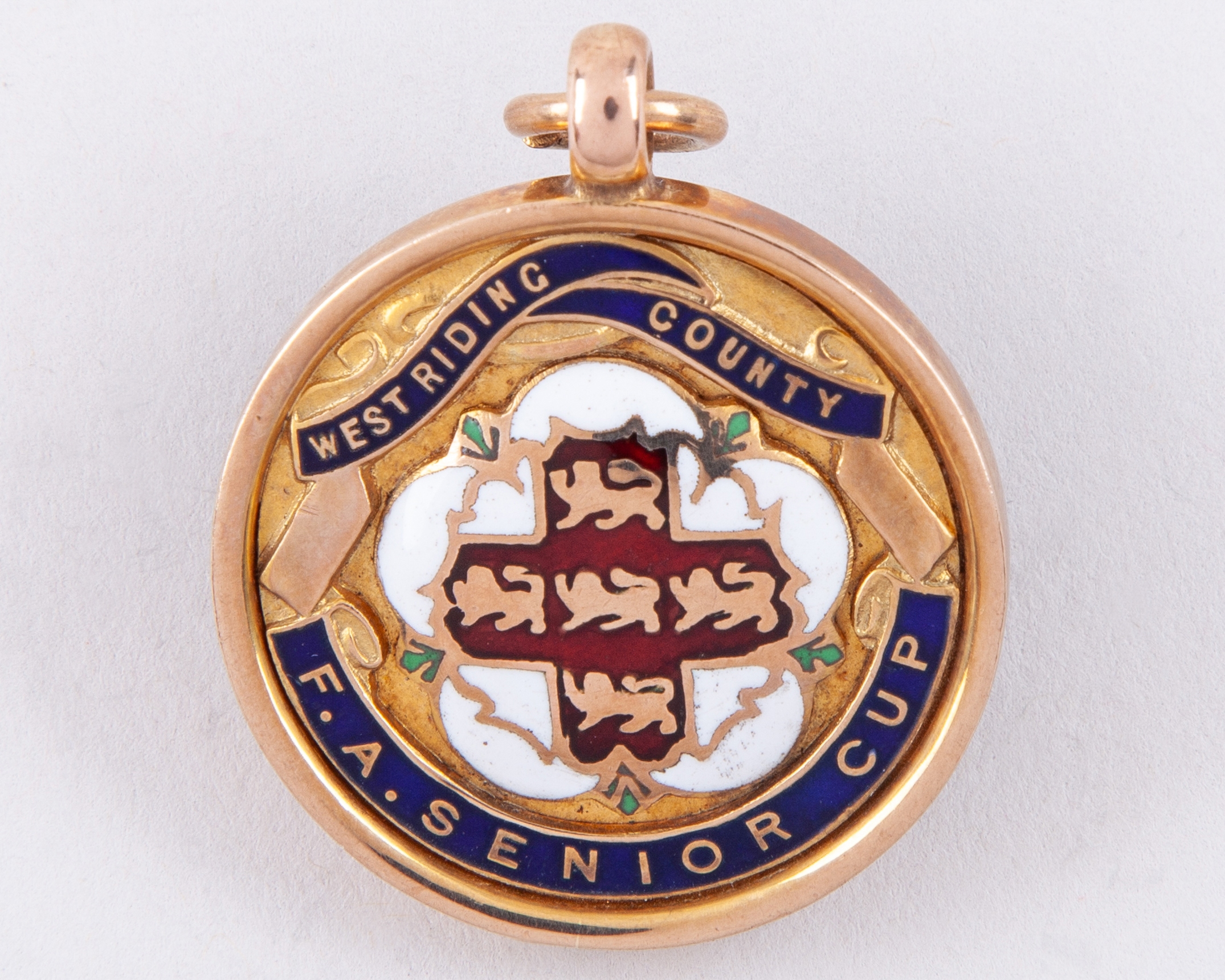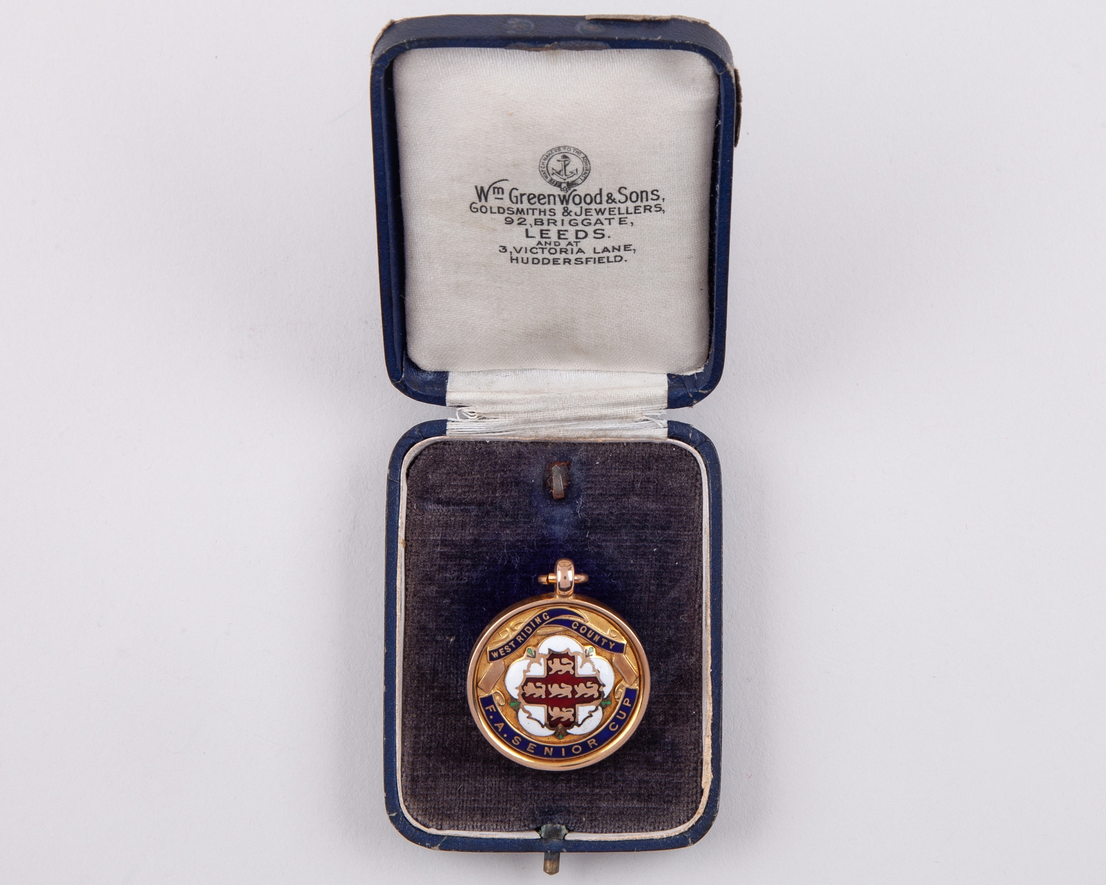 Willis Edwards 9ct gold and enamel West Riding County Senior Cup medal, 1925-26
