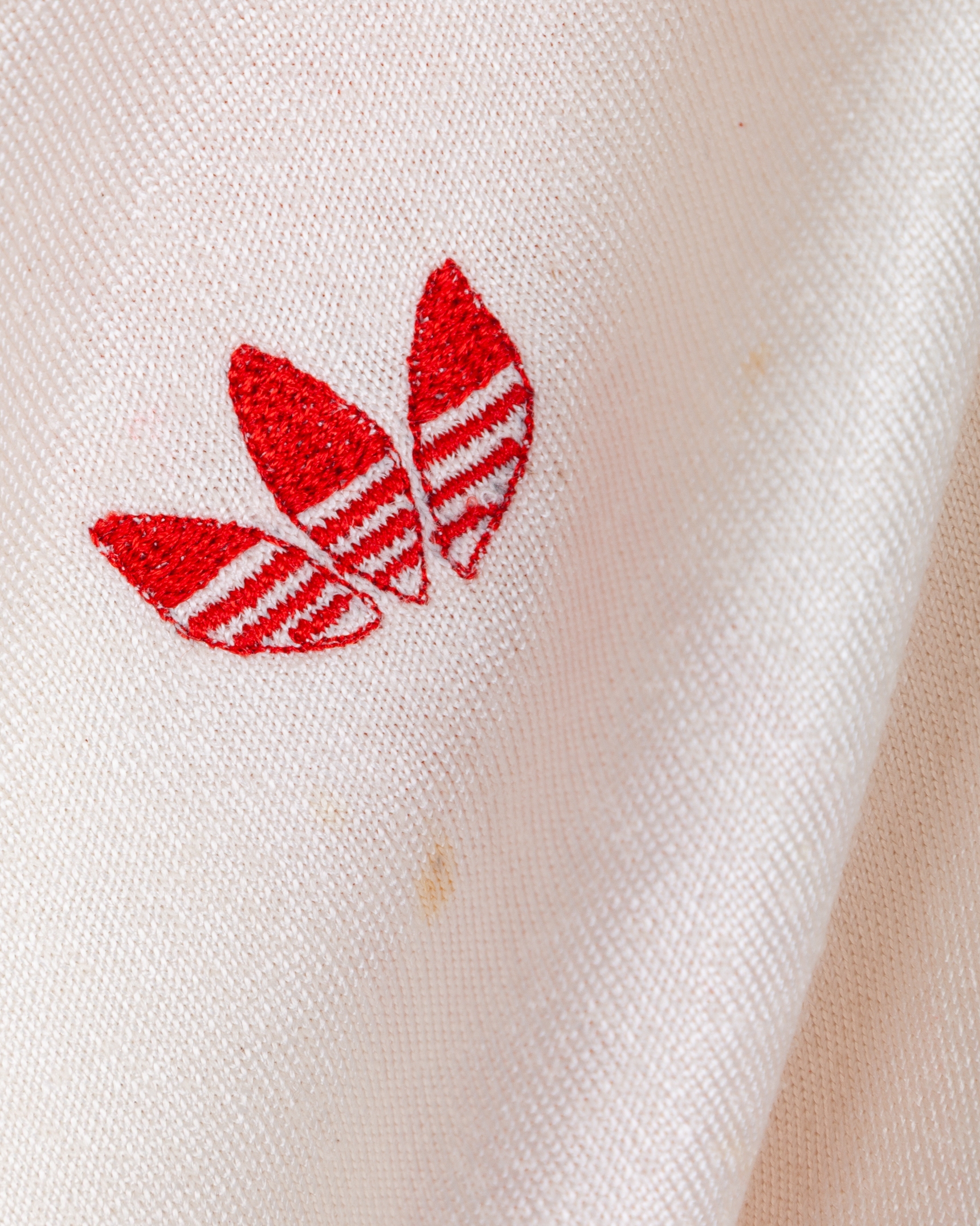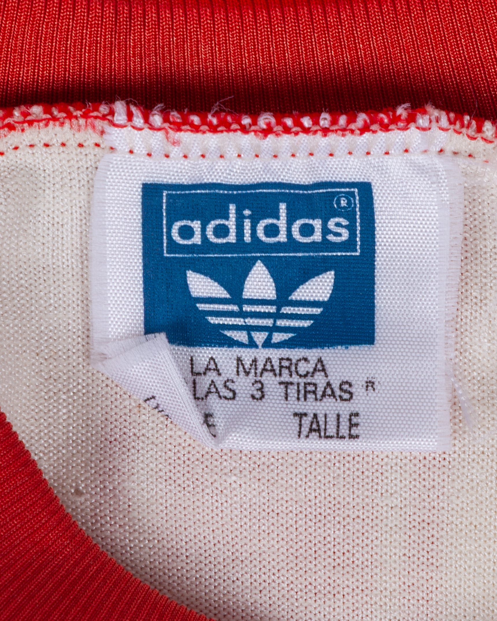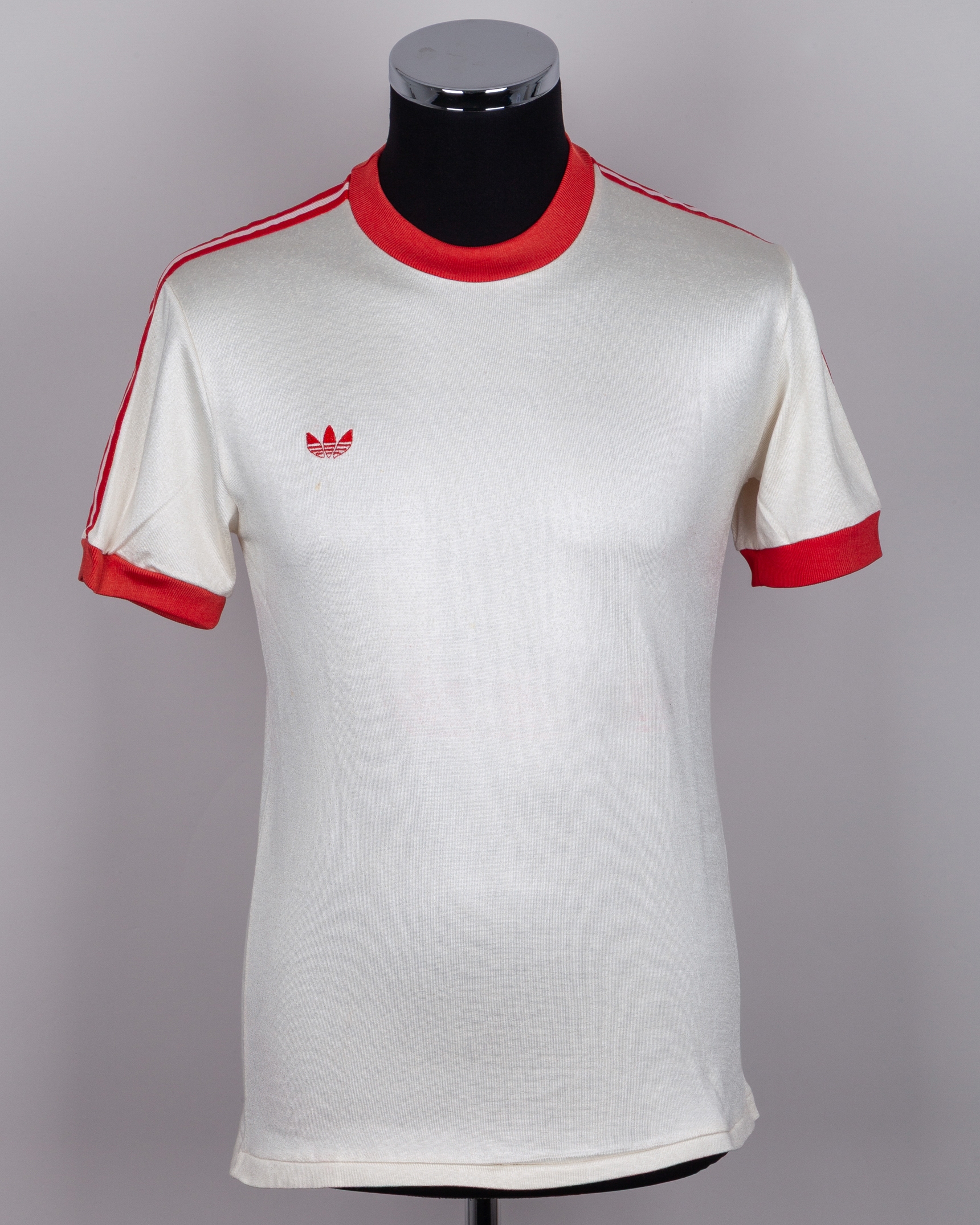 Maradona white and red No.10 Argentinos Juniors match worn short-sleeved shirt, Adidas, Talle, with crew-neck collar, certificate of authenticity from Eduardo Emilio Delgado