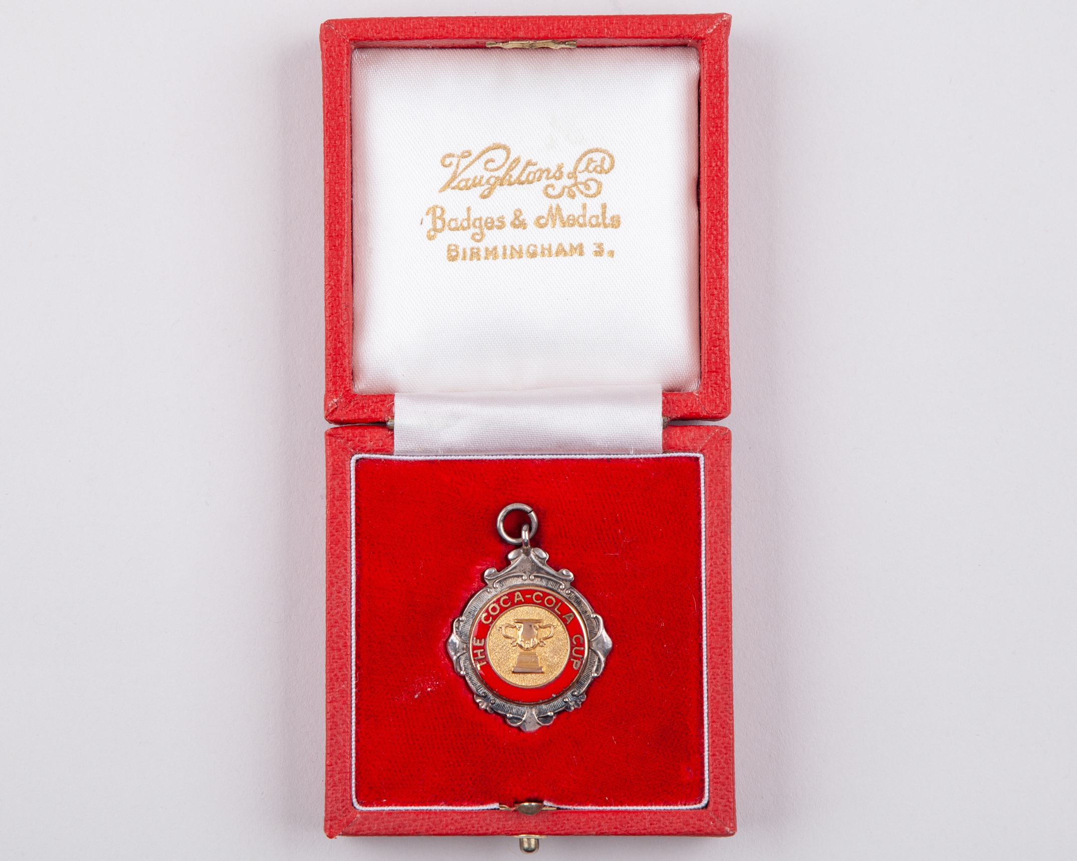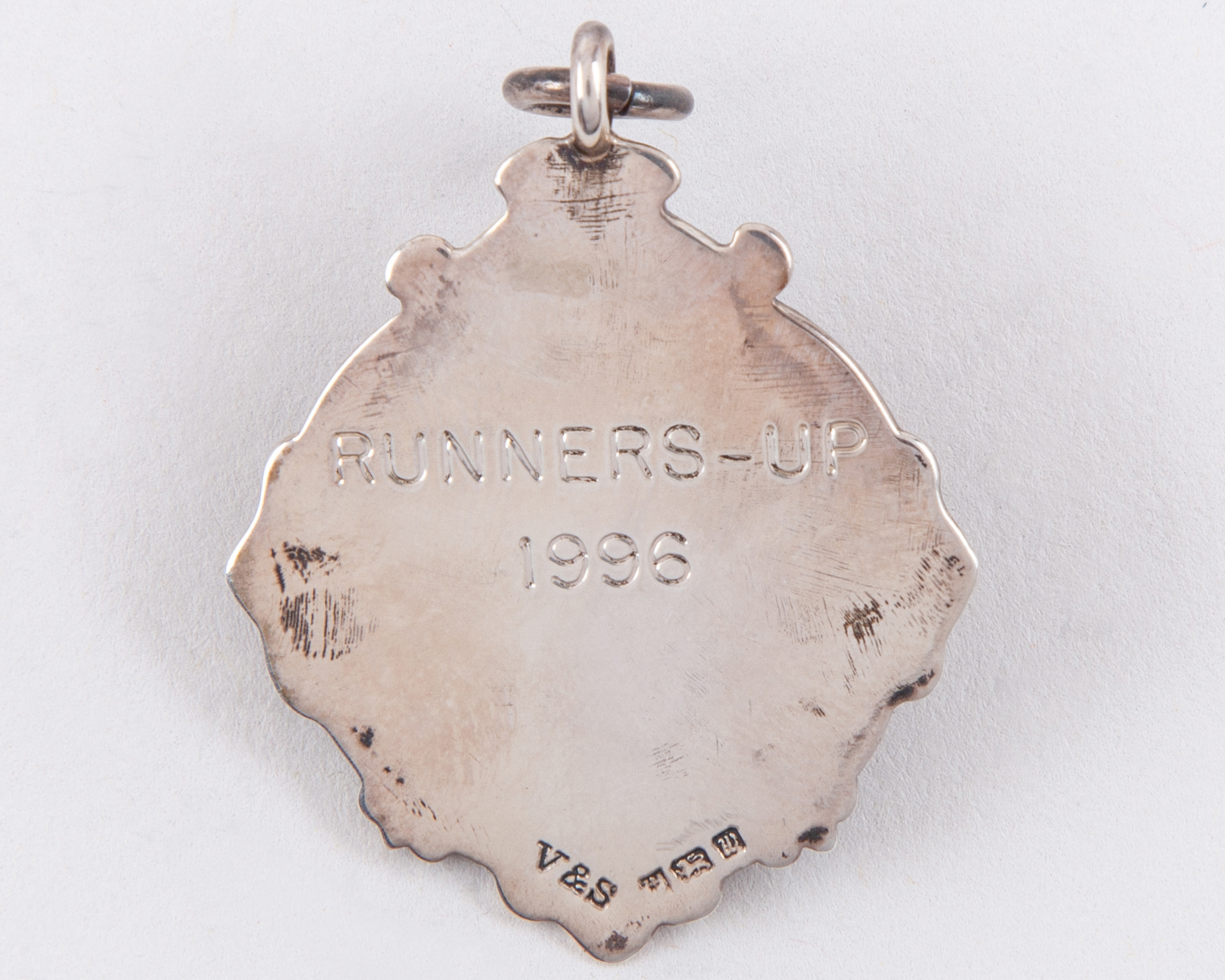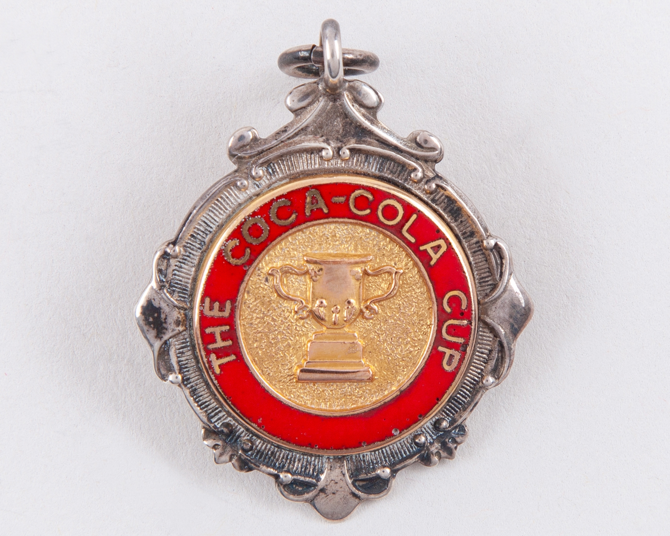 A silver and enamel Leeds United v. Aston Villa Coca-Cola Cup runners-up medal, 1996, the obverse inscribed THE COCA-COLA CUP, the reverse inscribed RUNNERS-UP 1996, in original fitted case