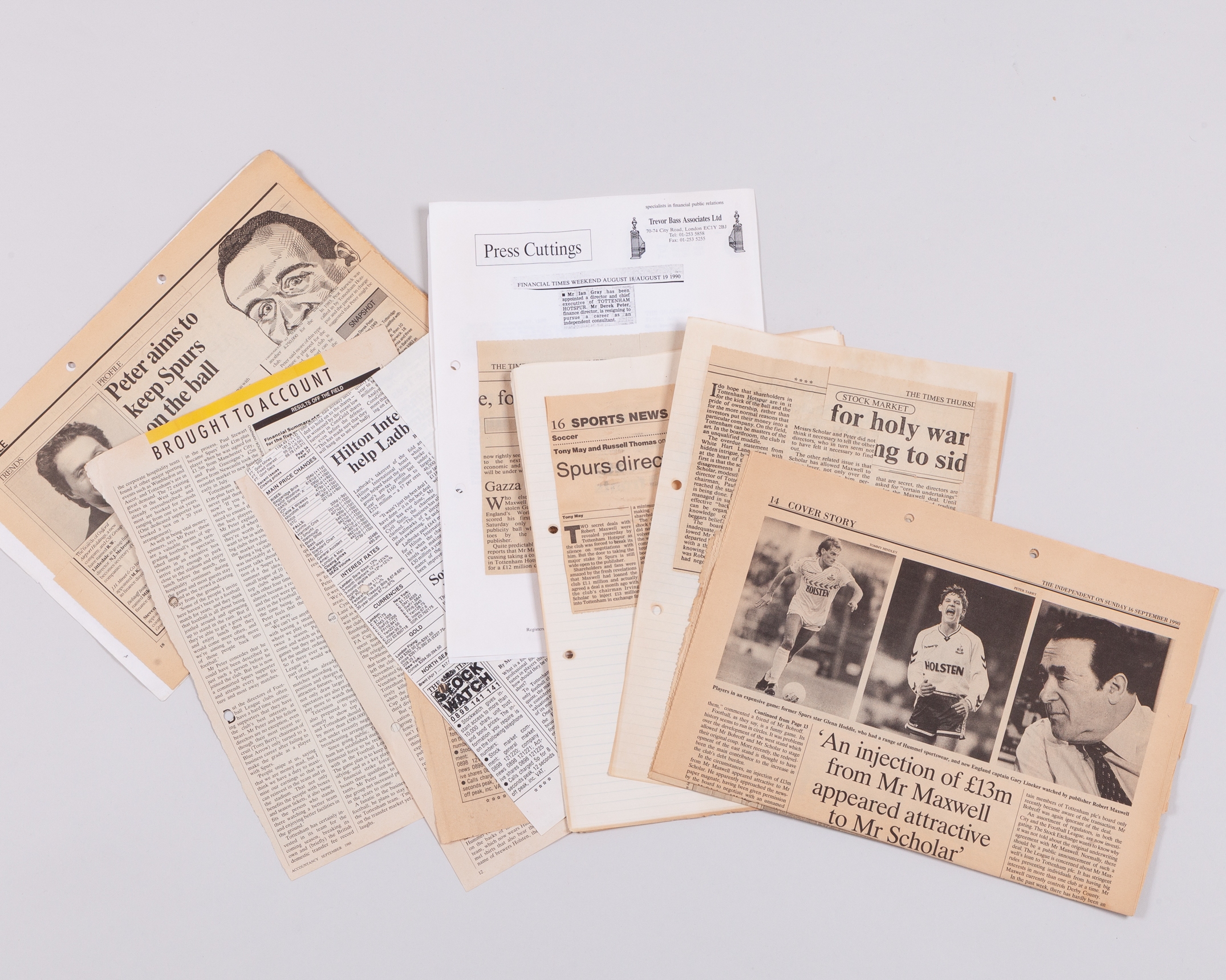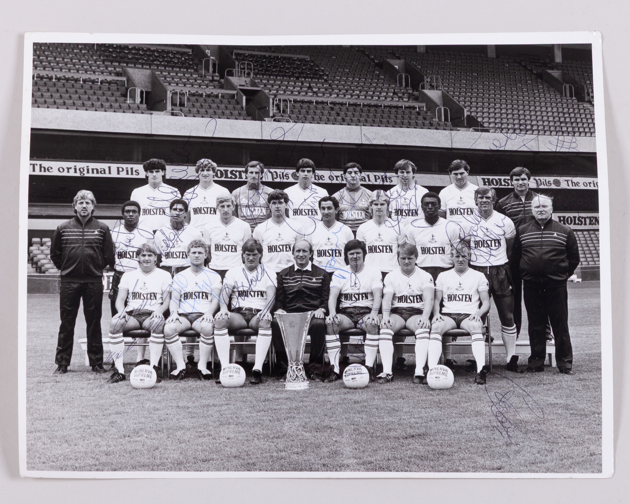 A collection of modern Tottenham Hotspur match programmes including 1987 VIP Cup final programme, partially signed by the Spurs and Coventry sides, a black and white team autographed team line-up photograph, lapel badges etc