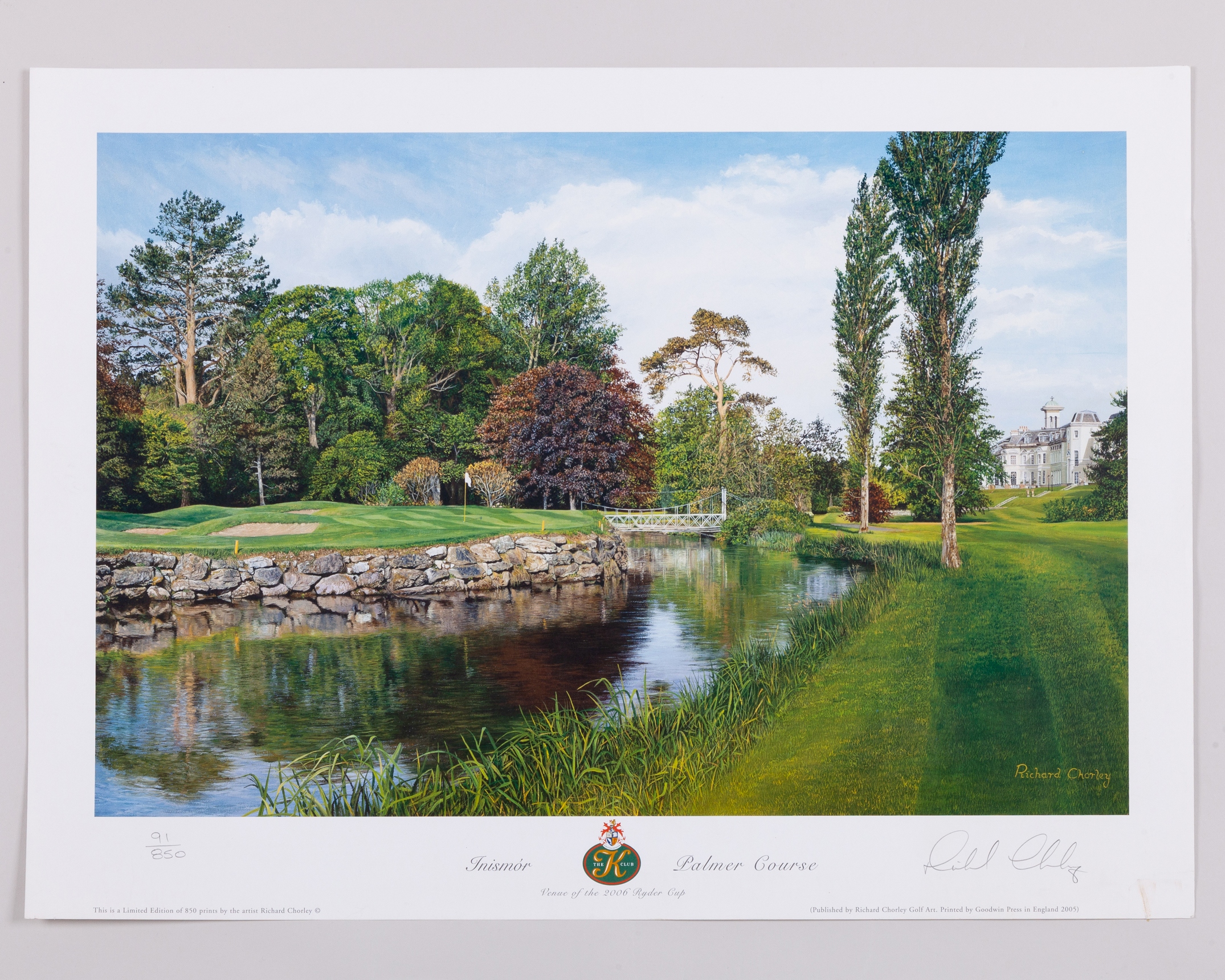 Ten Peter Munro limited edition signed golf prints, Six being Portmarnock 18th limited to 350 copies, four being Ballybunion (Old) 11th, Inismor Palmer Course limited edition signed print by Richard Chorley, 91/850, collage print of hurling stars (12)