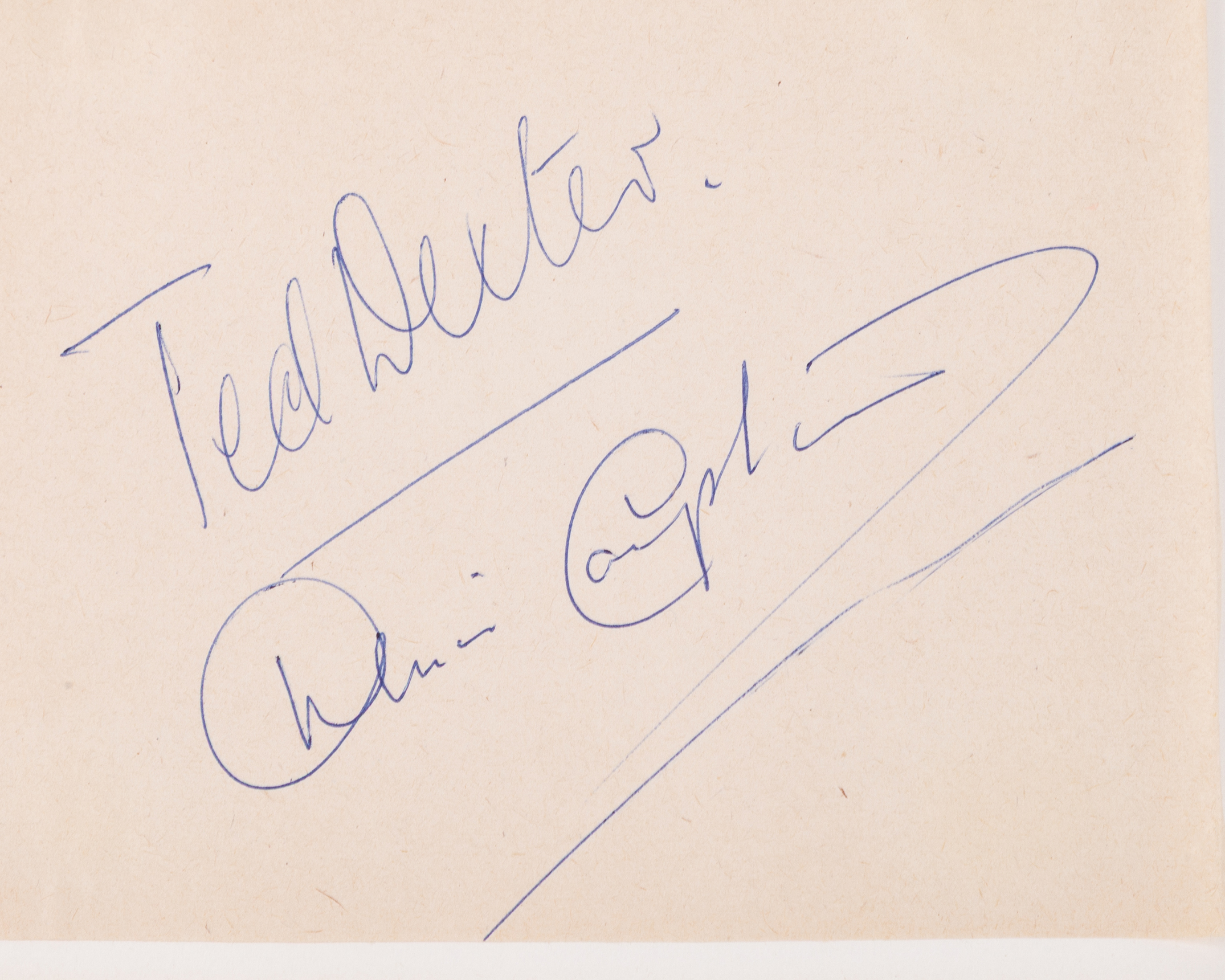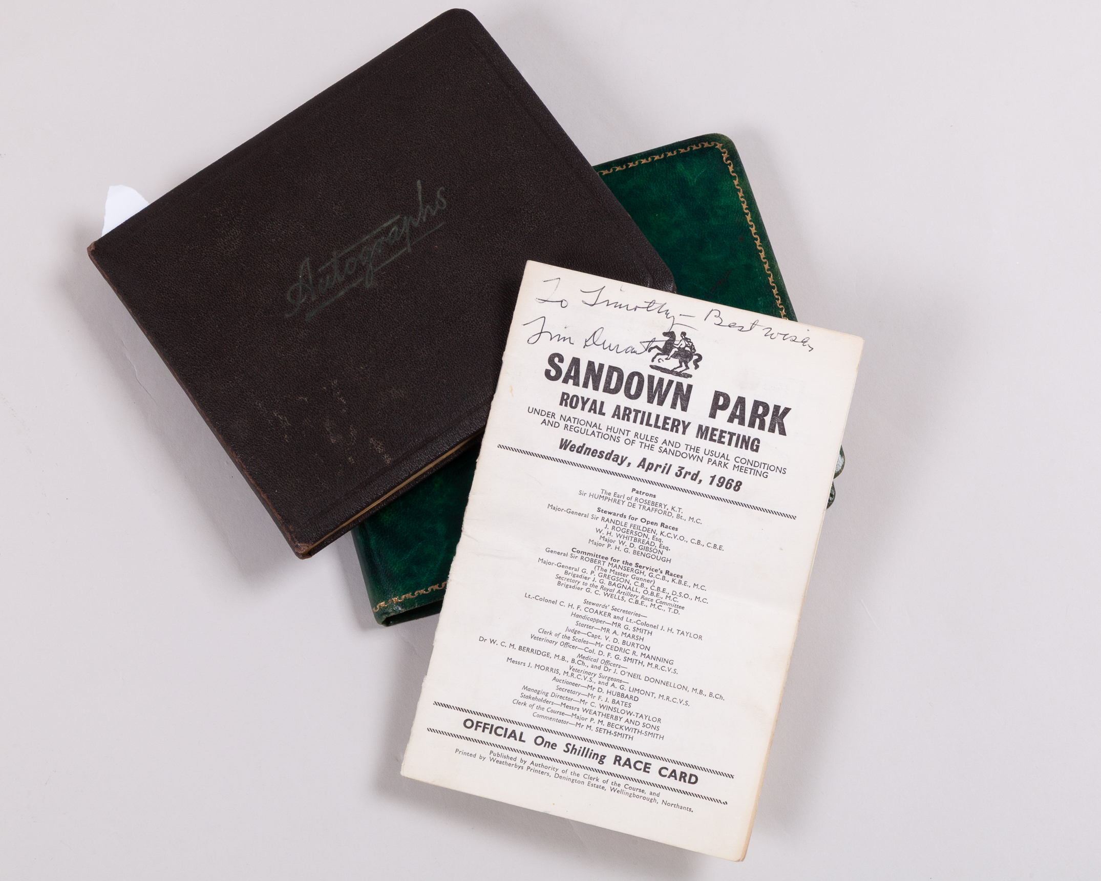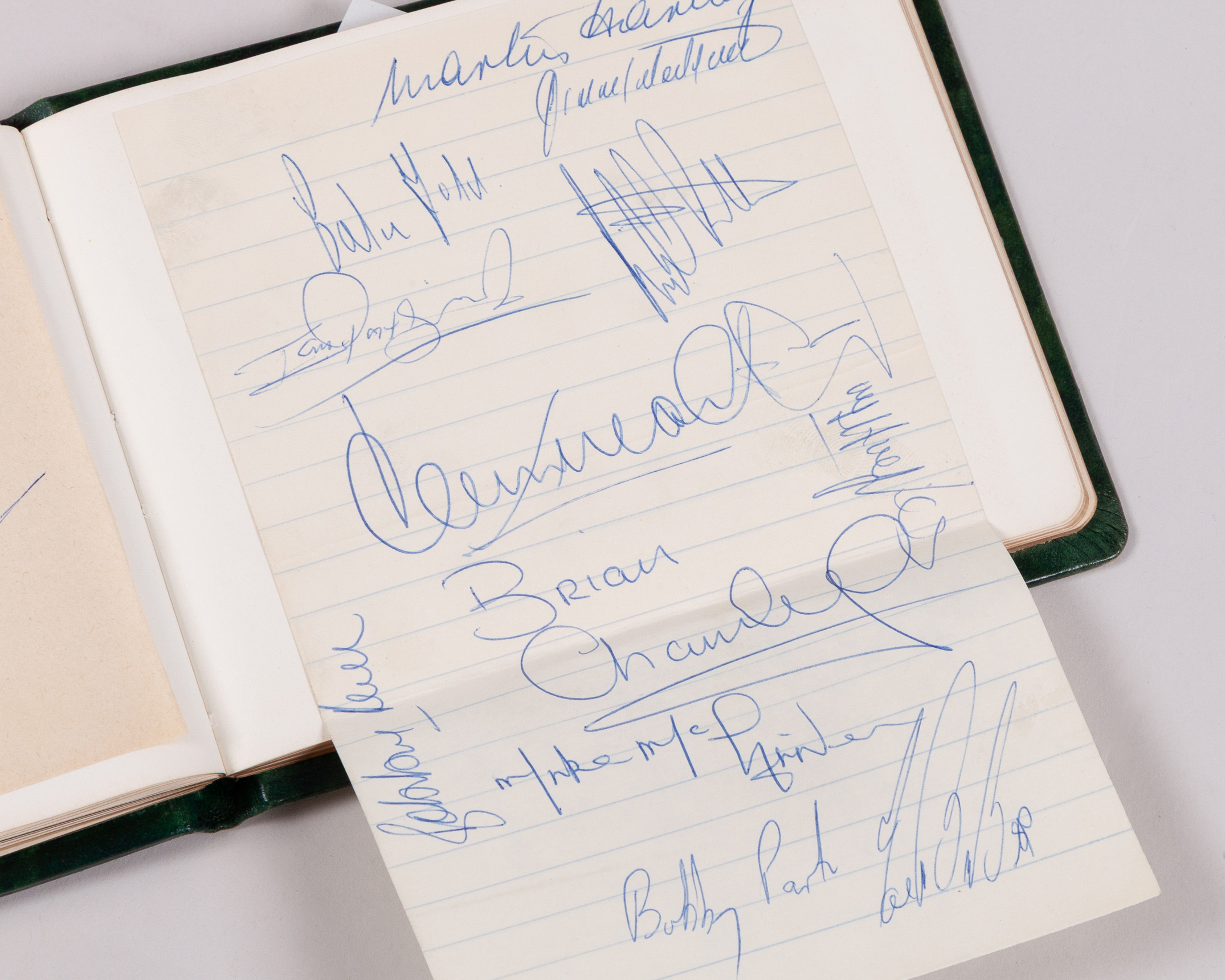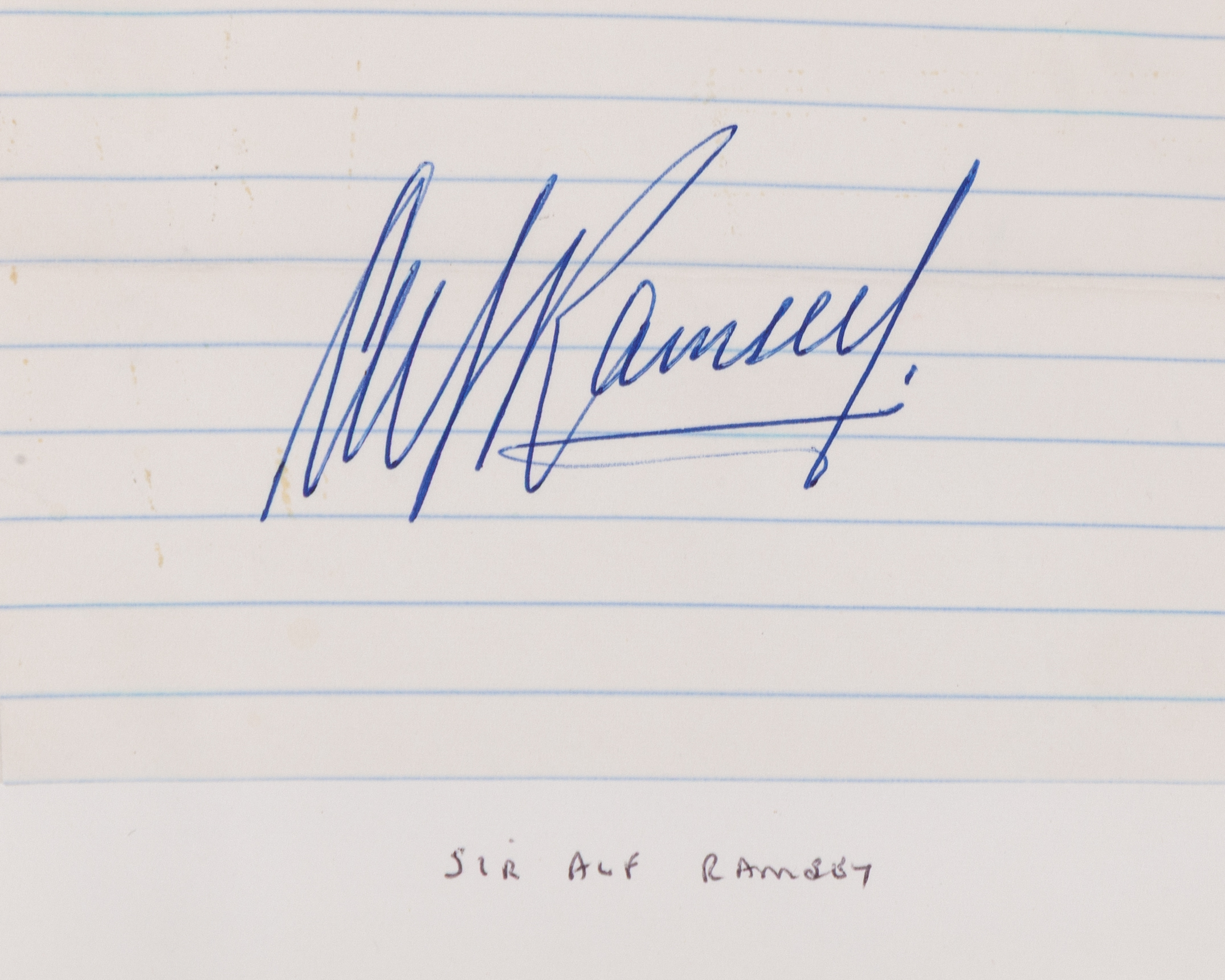 A mixed sports autographed book including football, cricket, athletics and entertainment etc., names featured include Daley Thompson, Alf Ramsey, Laurence Olivia, Edward Hide and Ted Dexter etc., Southern League and Northern League c.1951-52 autograph book (2)