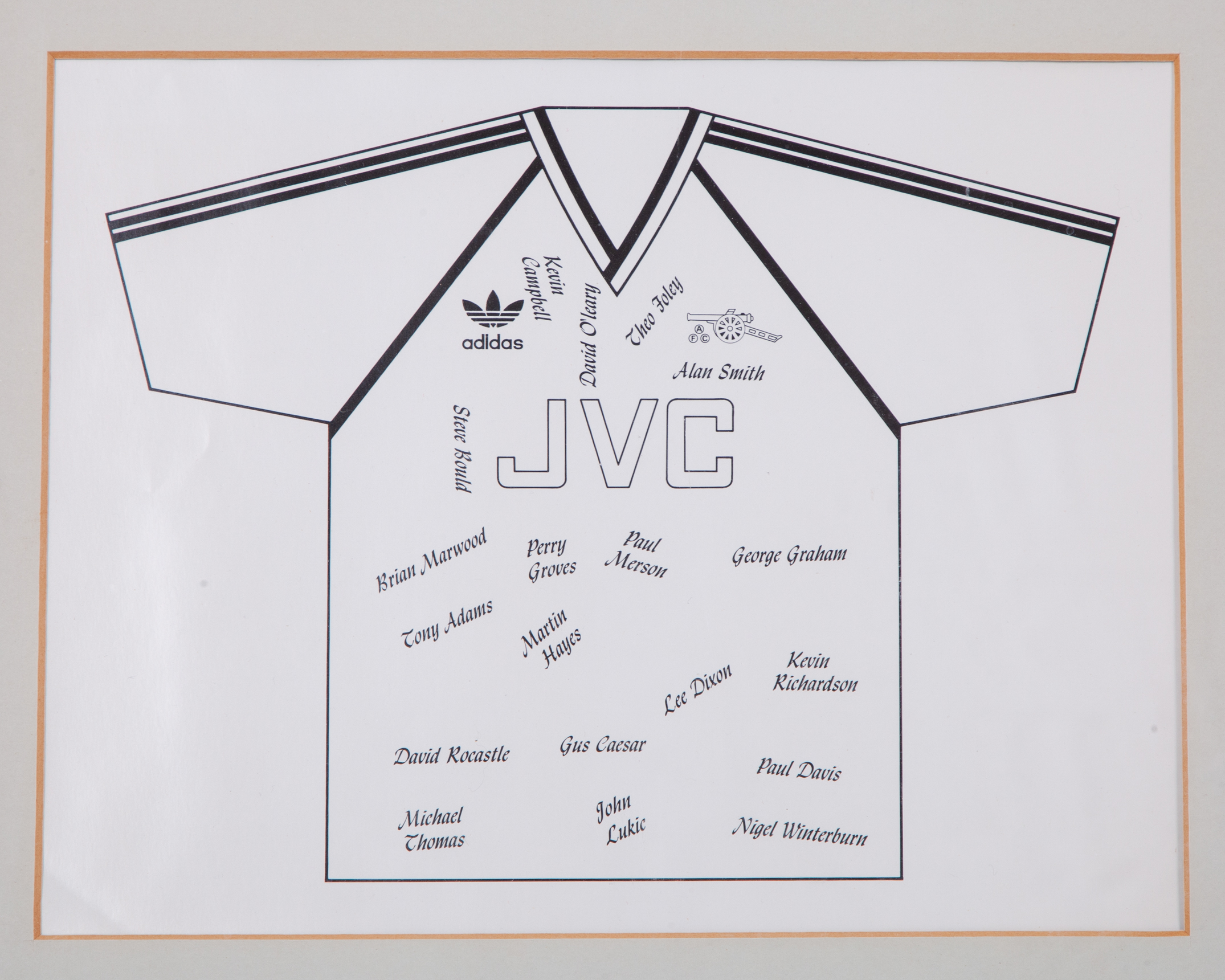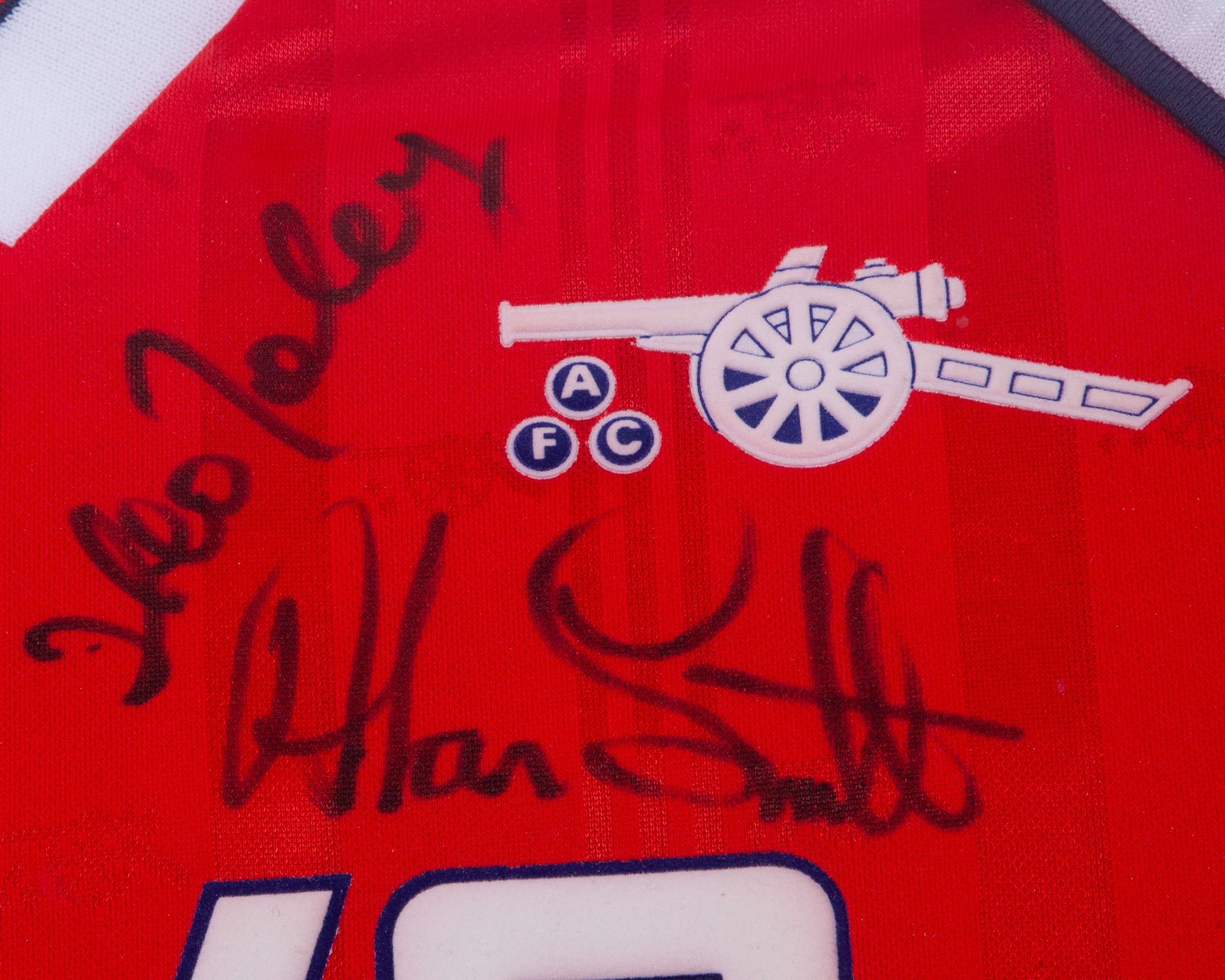 Red and white Arsenal autographed replica short-sleeved shirt display, 1988-90