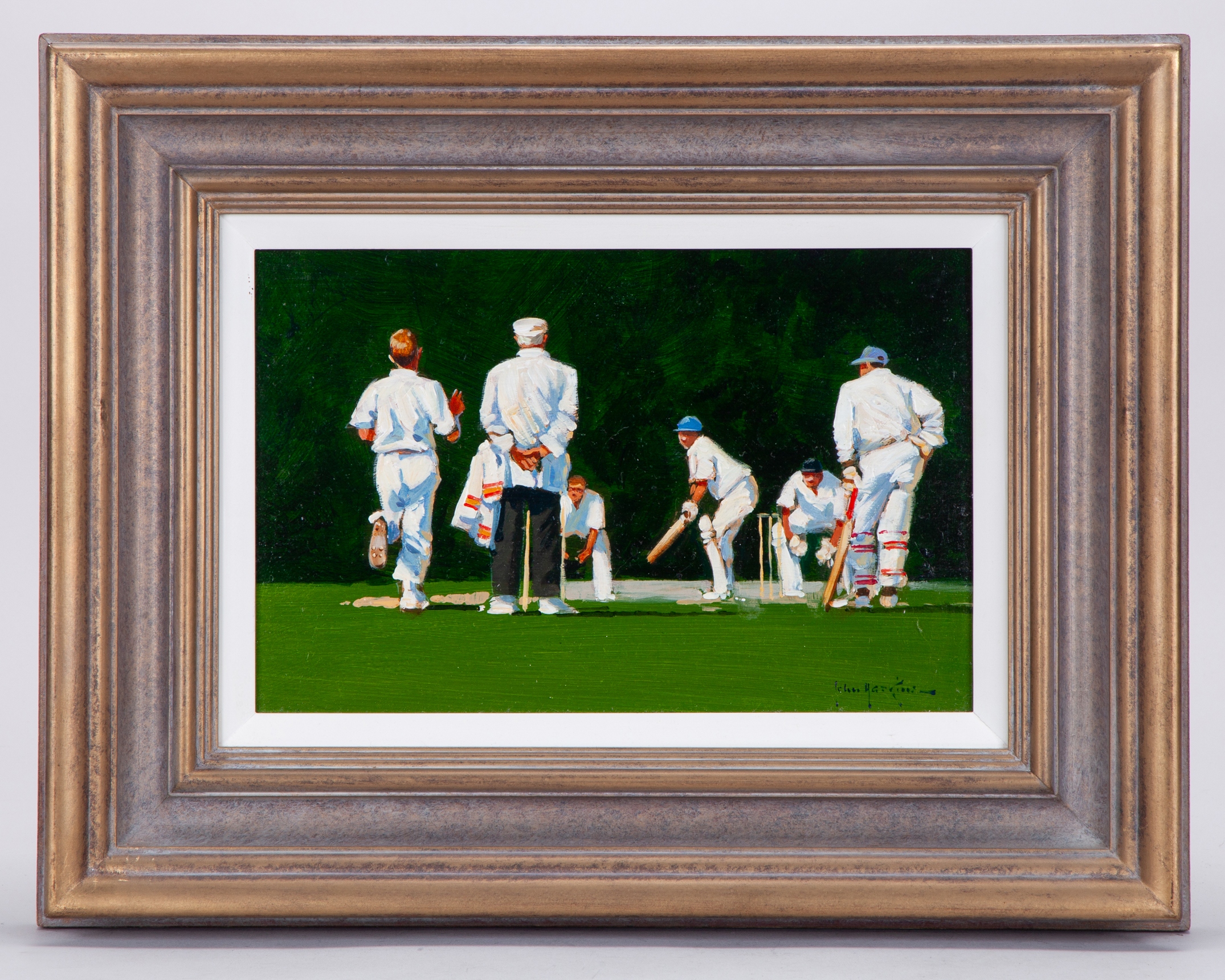 John Haskins (British, B.1938) Running into Bowl, signed, acrylic on board, framed, the image 28 x 18cm and the overall 46 x 36cm