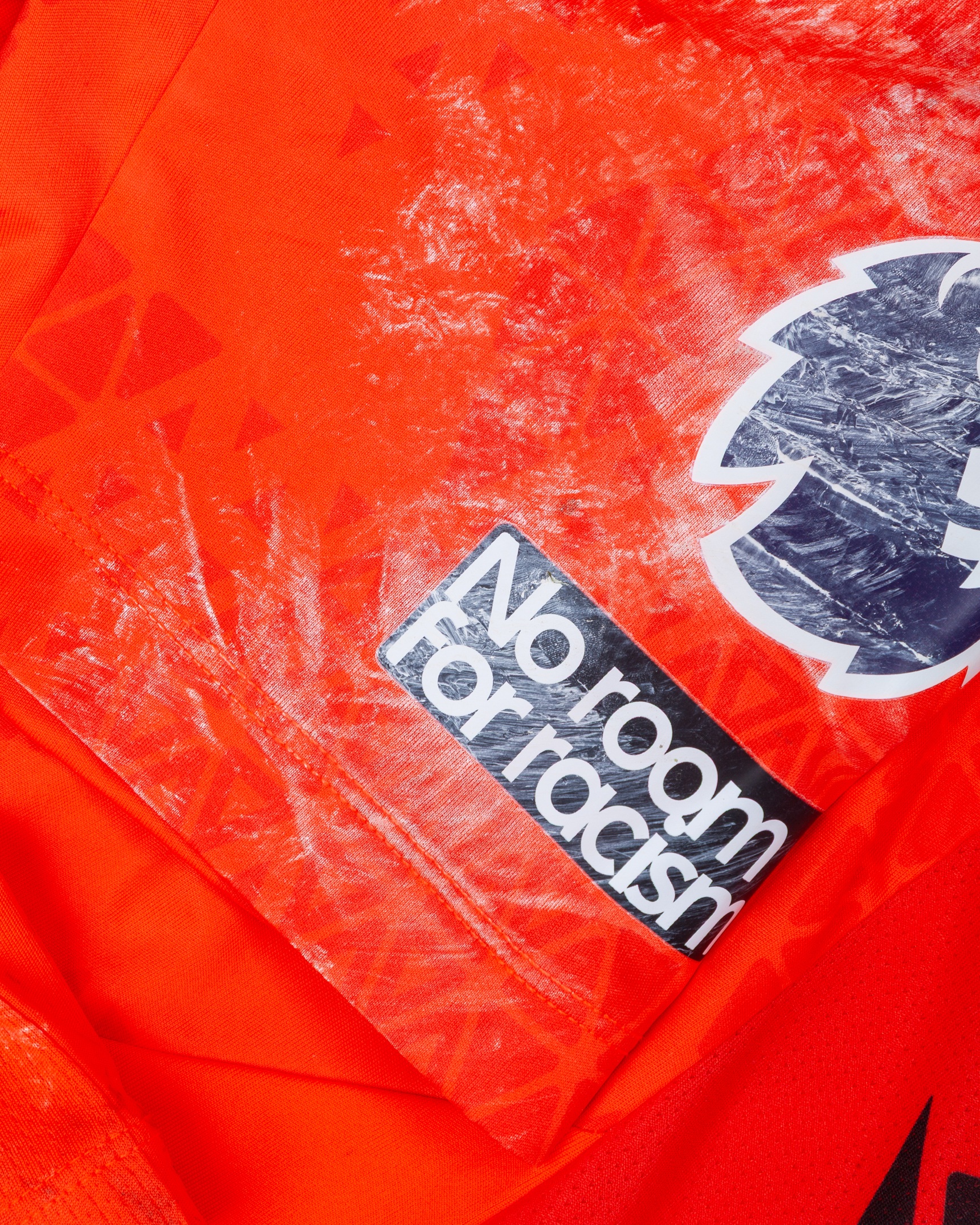 The shirt is match worn and unwashed, bears pitch marks