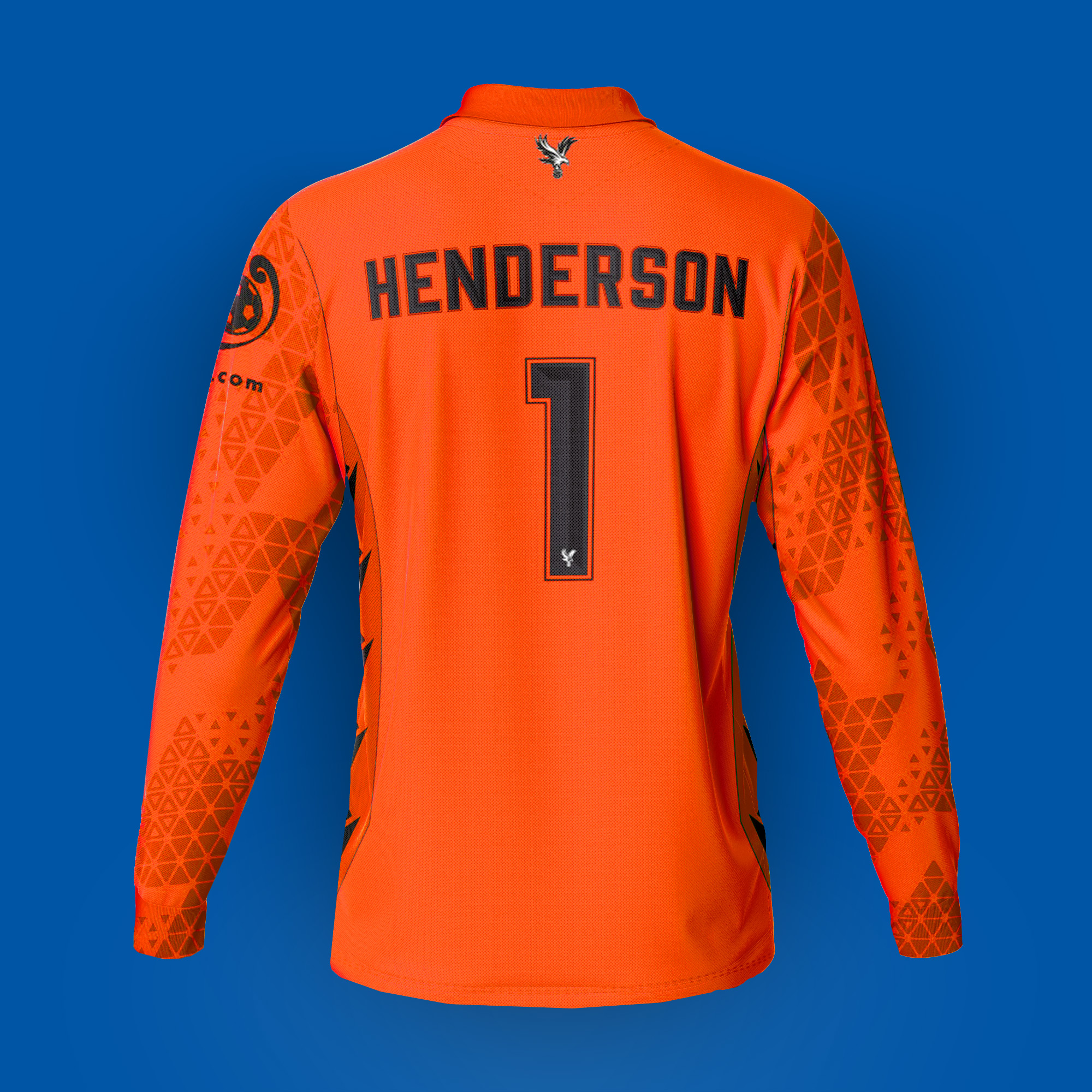 Dean Henderson No.1 Crystal Palace v. Aston Villa match worn short-sleeved shirt, Premier League 2026, Macron, with crew-neck collar and printed badge, the reverse lettered HENDERSON the right sleeve with Premier League logo