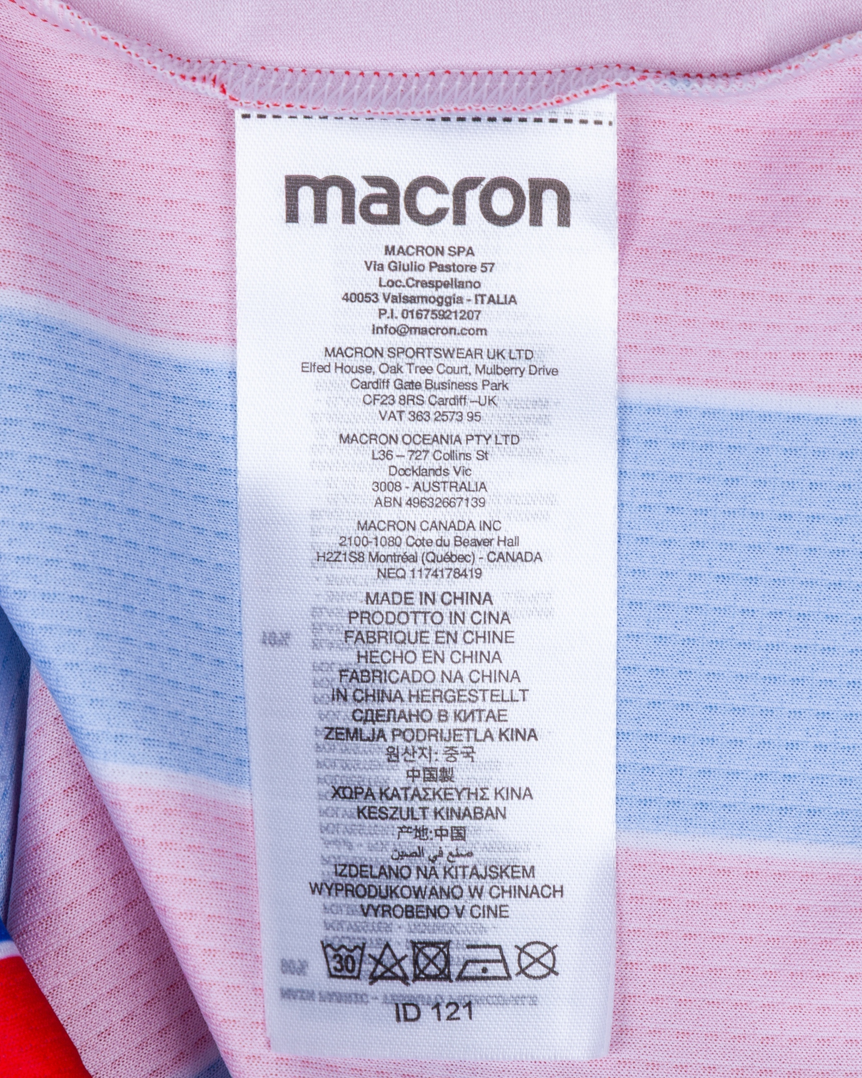 Justin Devenny red No.55 Crystal Palace v. Aston Villa match worn short-sleeved shirt, Premier League 2026, Macron, with crew-neck collar and printed badge, the reverse lettered DEVENNY the right sleeve with Premier League logo