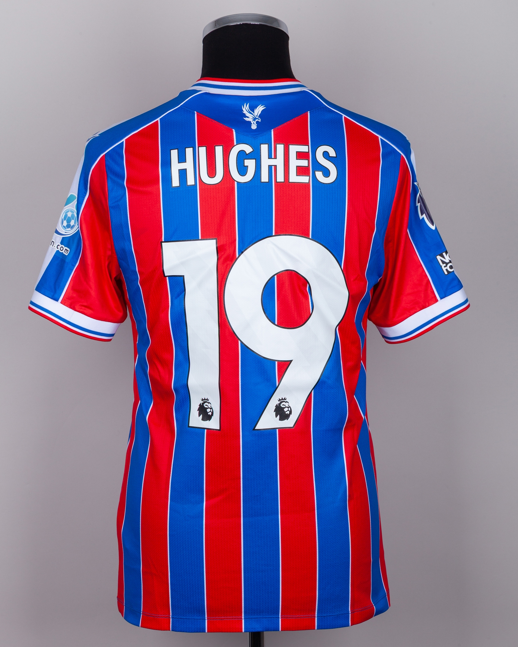 Will Hughes No.19 Crystal Palace v. Aston Villa match worn short-sleeved shirt, Premier League 2026, Macron, with crew-neck collar and printed badge, the reverse lettered HUGHES the right sleeve with Premier League logo