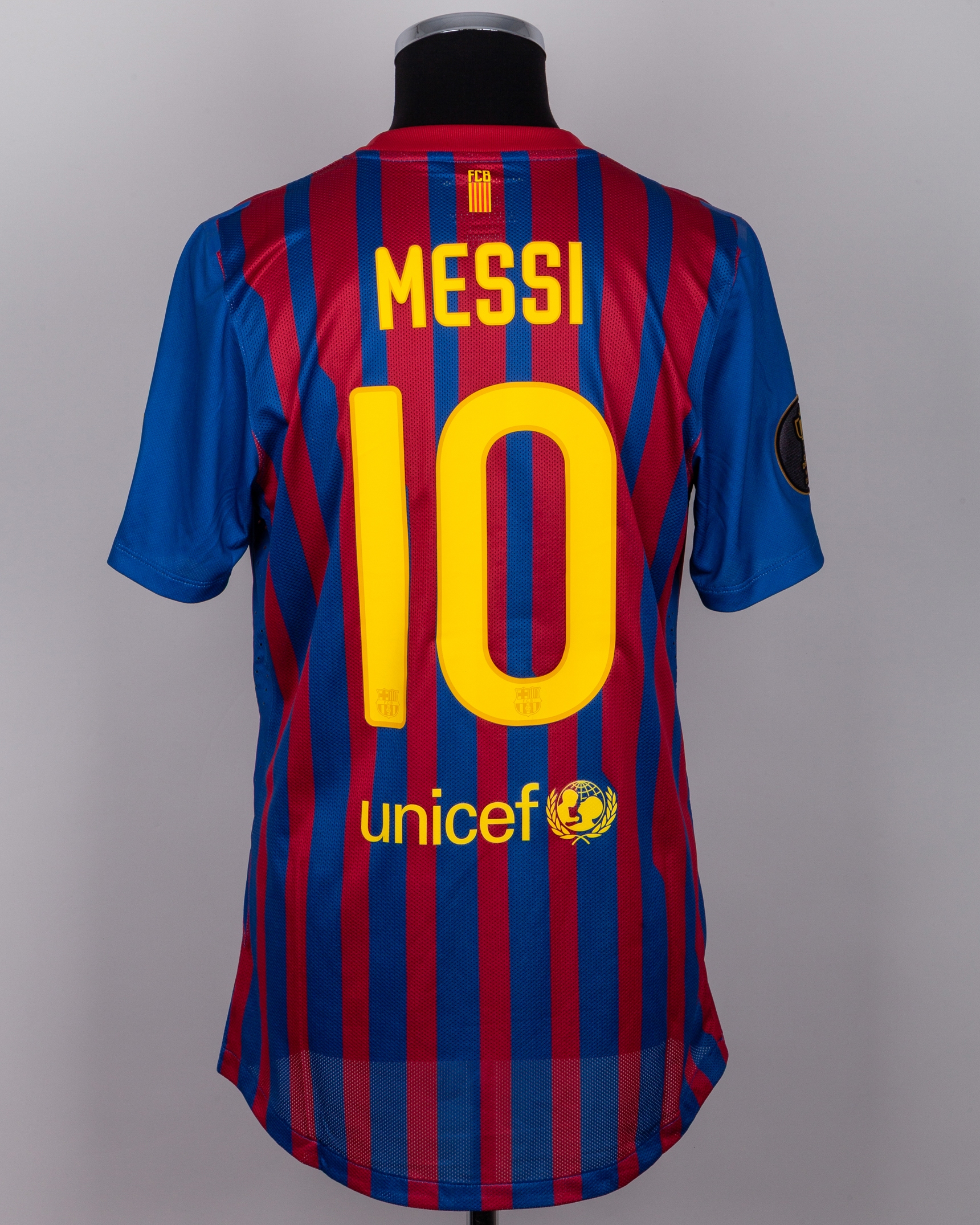 Lionel Messi garnet and blue match-issued No.10 Barcelona v. Athletic Club Copa Del Rey Final short-sleeved shirt, 2011-12 home, with crew-neck collar and printed badge, with FIFA World Champions 2011 badge, the reverse lettered MESSI, the right sleeve with Final Cop Del Rey Madrid 25.05.2012 flash