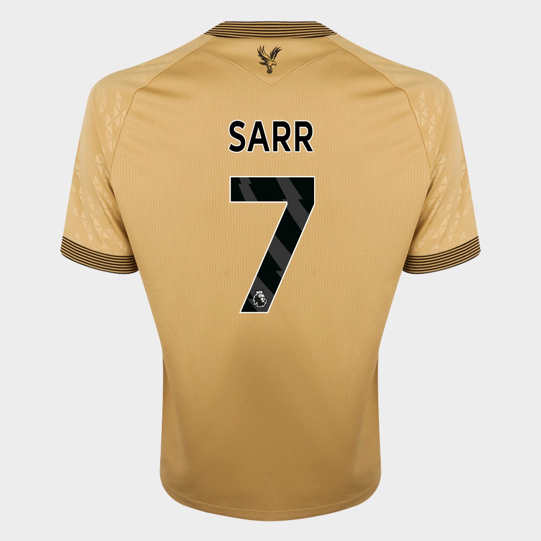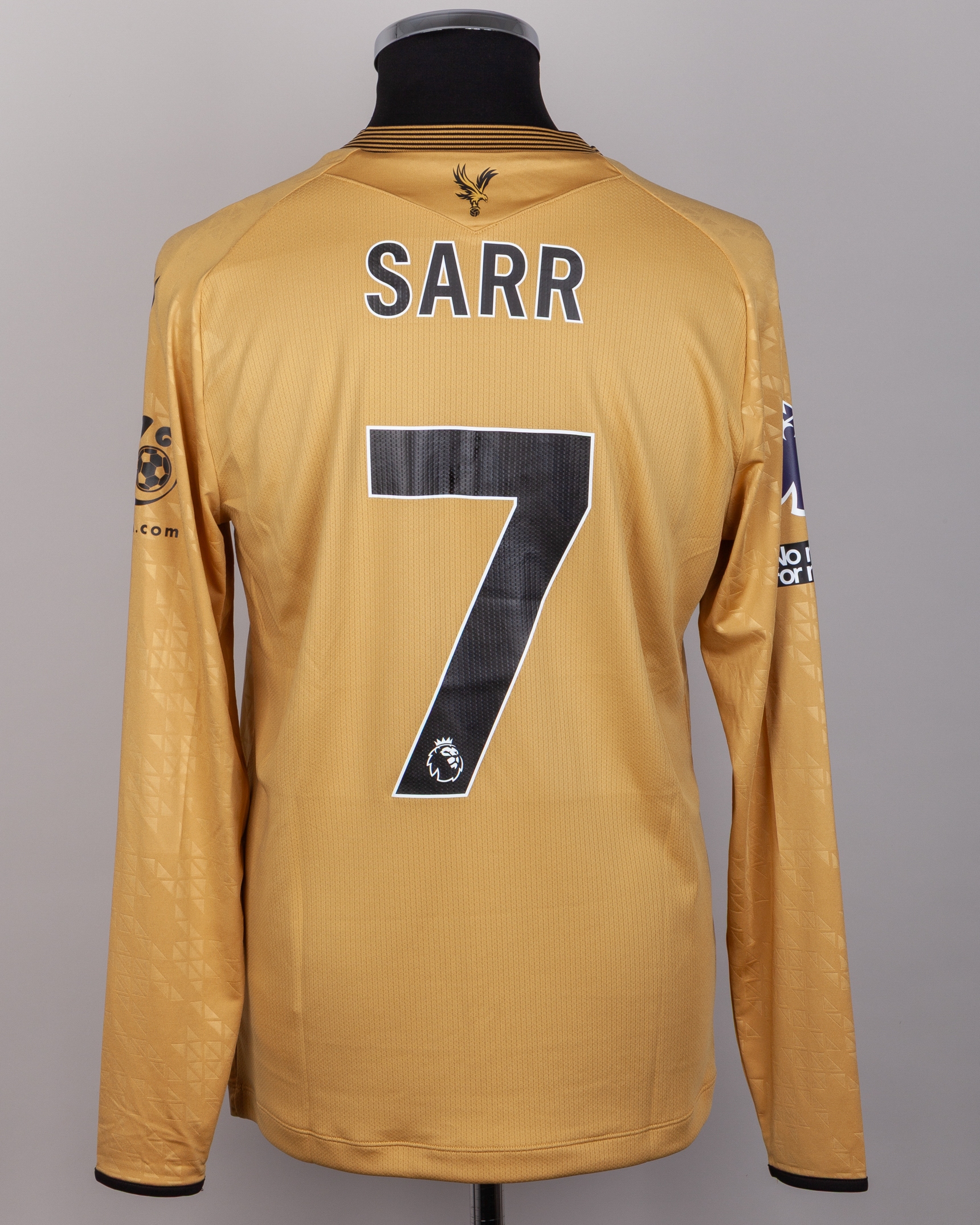 Ismaïla Sarr No.7 Crystal Palace v. Brighton (Away) match worn long-sleeved shirt, Premier League 2026, Macron, with crew-neck collar and printed badge, the reverse lettered SARR, the right sleeve with Premier League logo