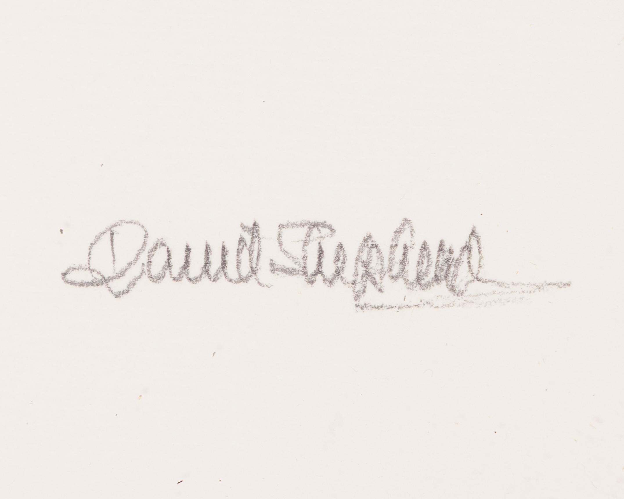 After David Shepherd Rhinos, colour print, the mount dedicated and signed To Nigel best wishes David Shepherd, framed, 43 x 41cm overall.