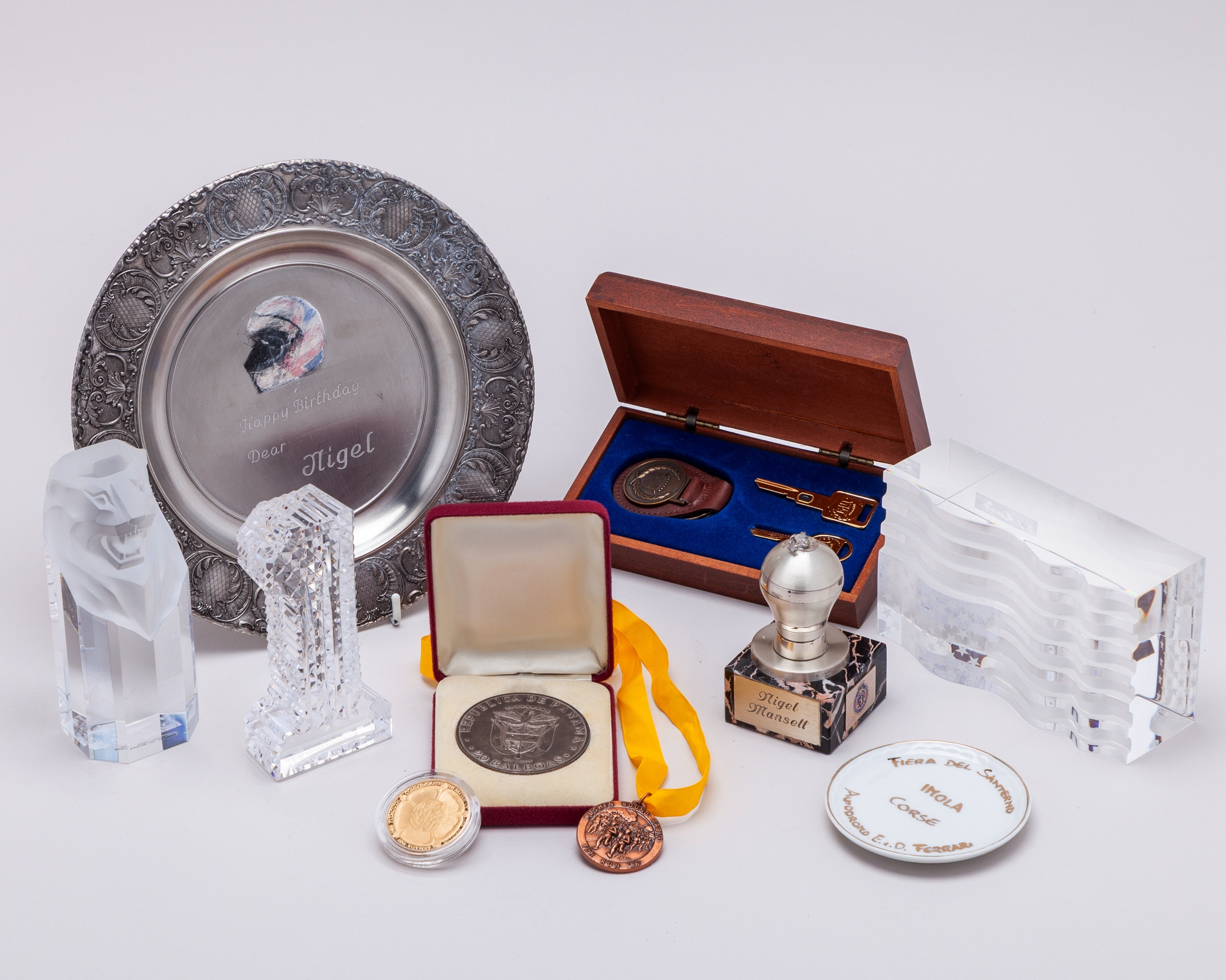 A Collection of Commemorative Plates, Trophies & Medals Presented to Nigel Mansell