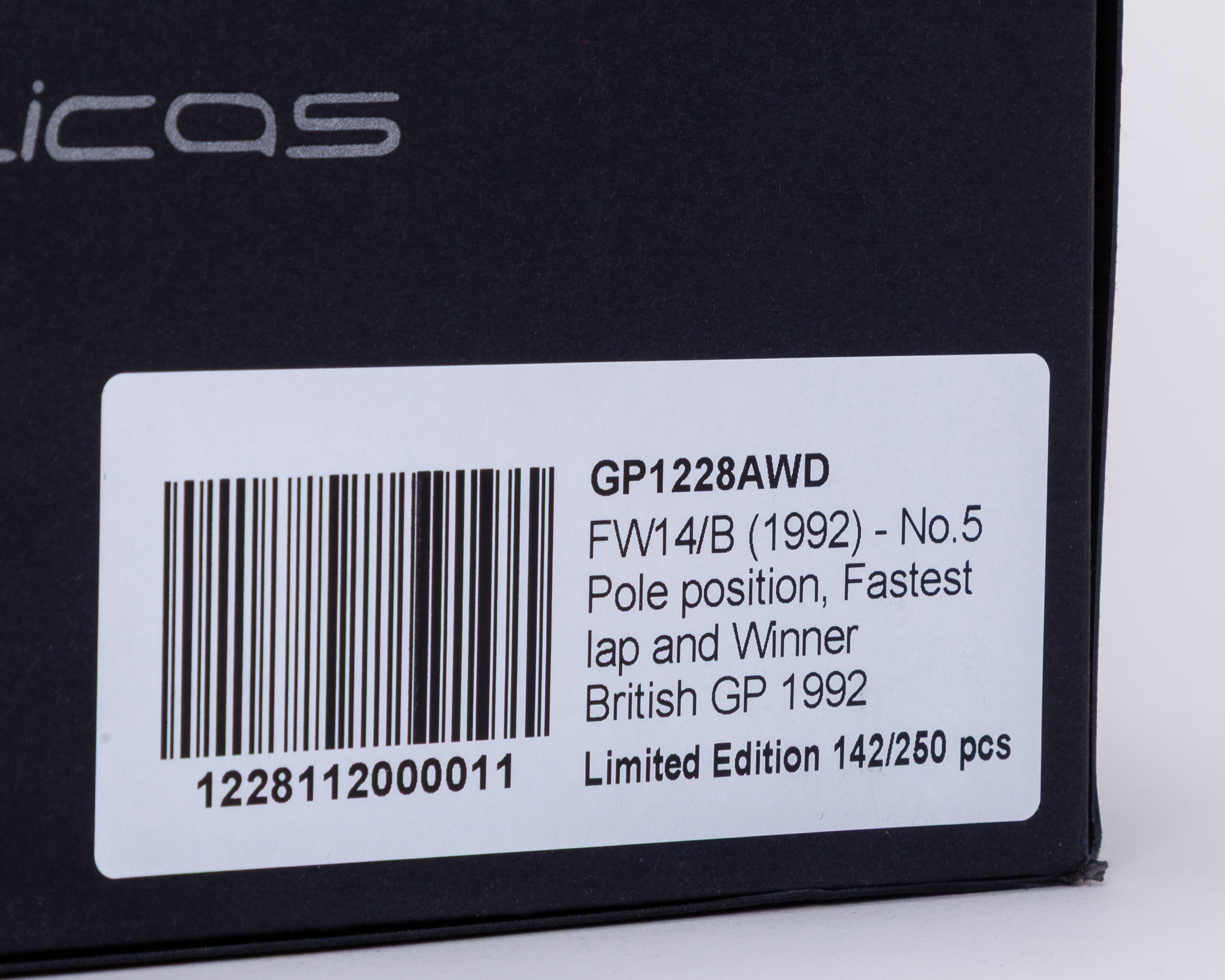 The model car represents Nigel's iconic Williams Renault FW14B from the 1992 British Grand Prix. Nigel claimed the race victory, pole position, and the fastest lap.