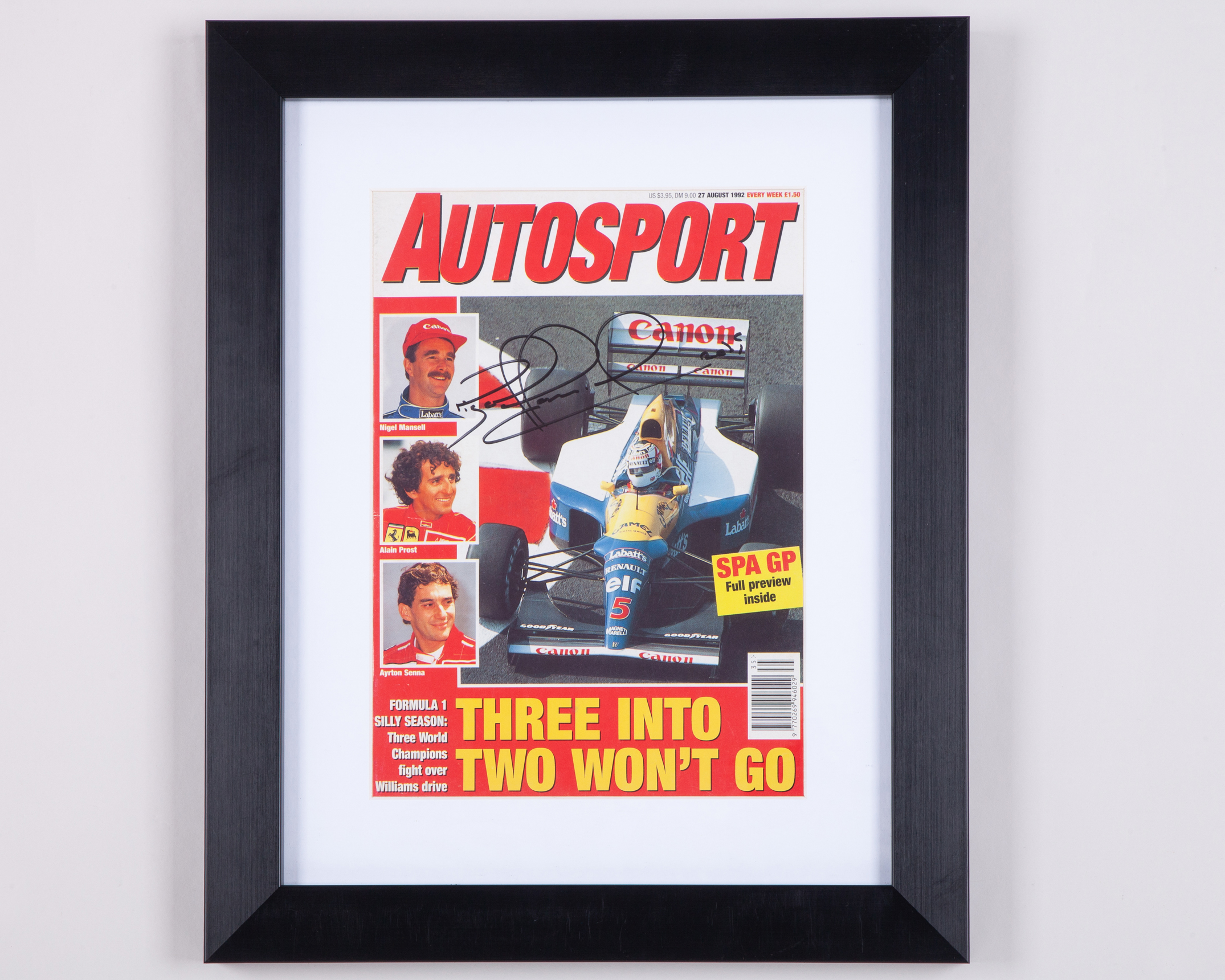 The magazine is professionally mounted, framed and glazed, and personally hand signed by Mansell.