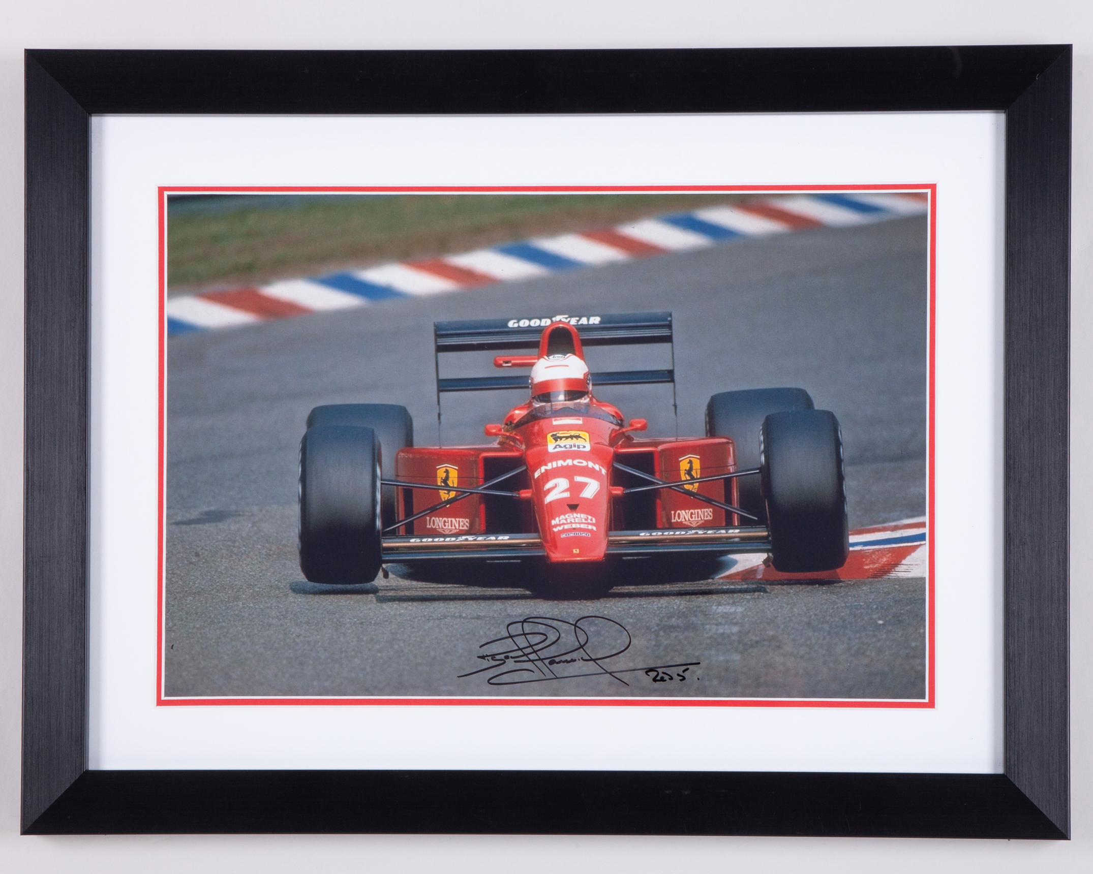 Nigel Mansell Signed Ferrari Framed Print.