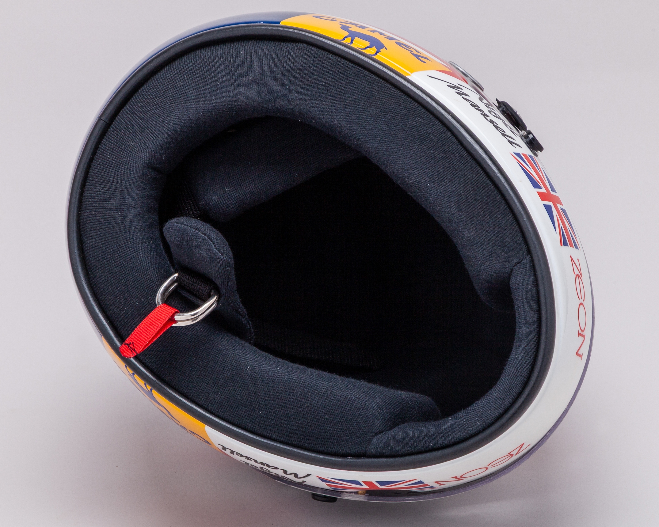 The helmet was gifted by Mansell to Sebastian Vettel at the British Grand Prix, on the occasion of Vettel driving the legendary Williams FW14 as part of a special appearance, coinciding with Sebastian Vettel’s birthday.
