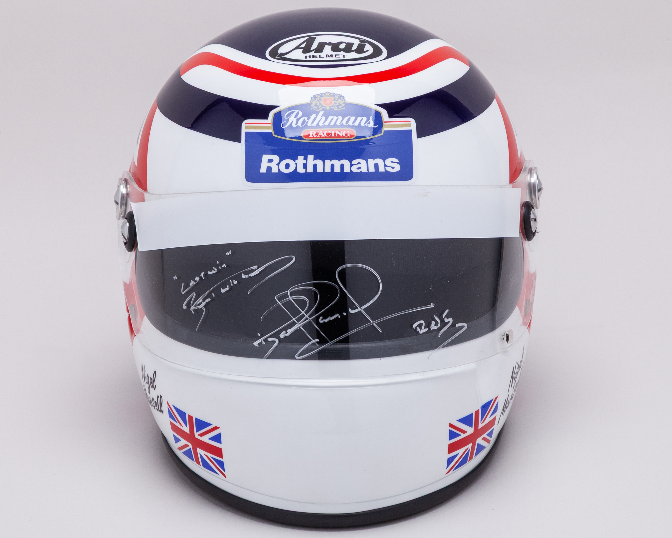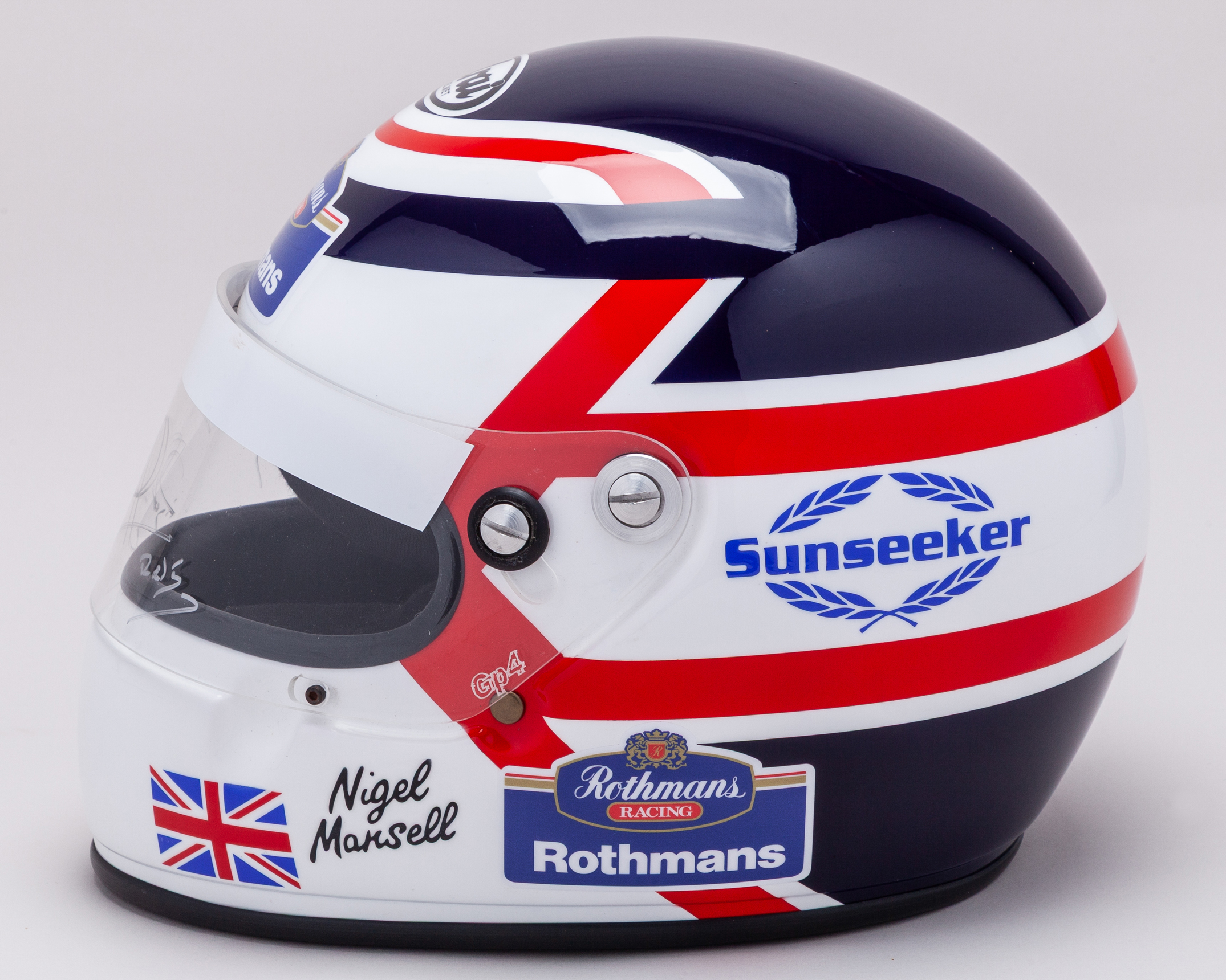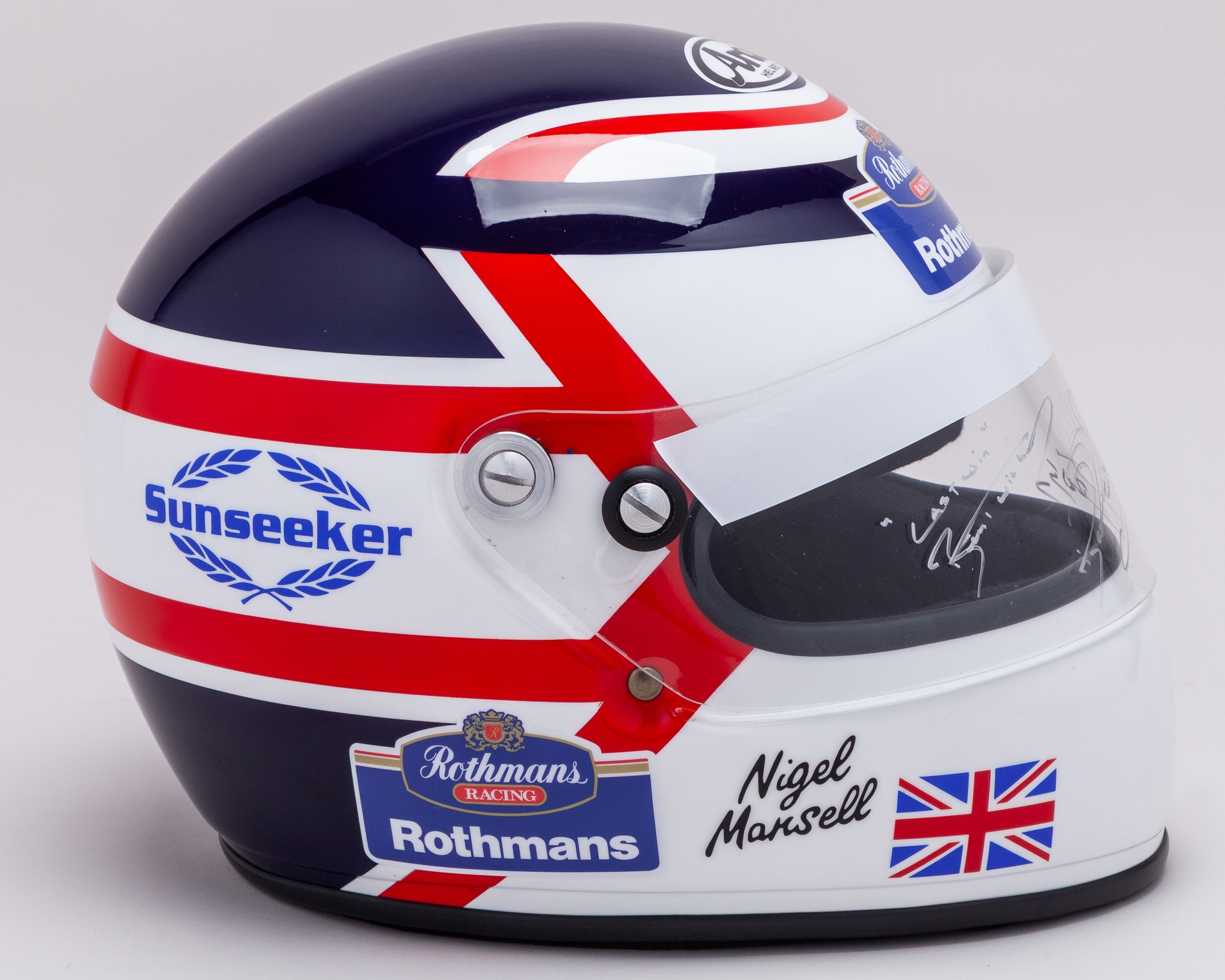 This full size helmet represents Mansell’s last win in Formula One, at the 1994 Australian Grand Prix. The helmet has been personally signed by Nigel himself.