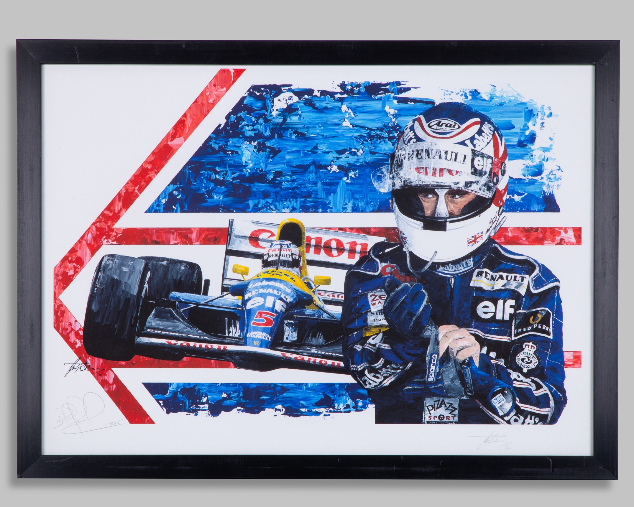 The print is limited edition number 6/150, and has been personally signed by the 1992 Formula One World Champion, and the artist, David Johnson.