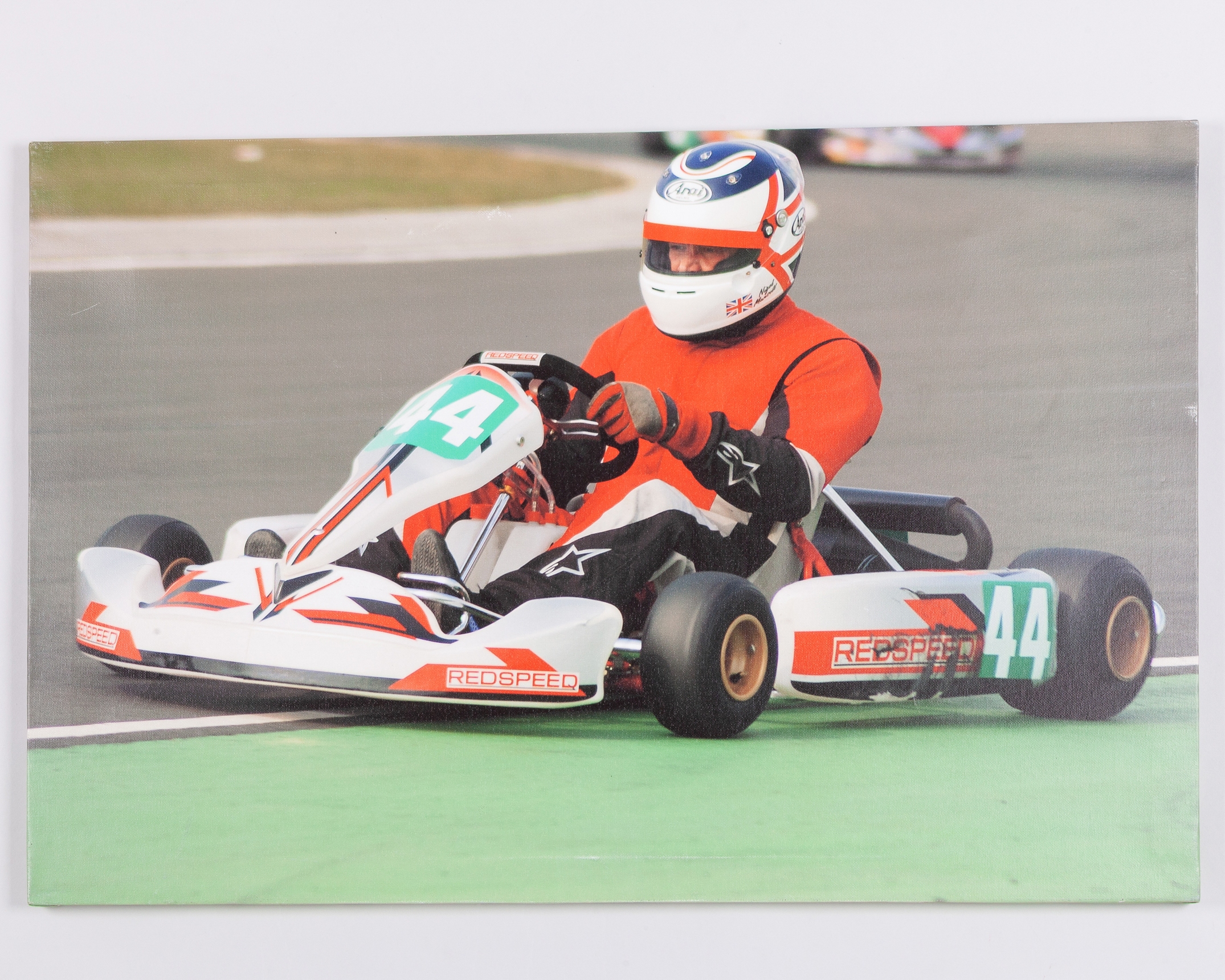The first canvas is of Nigel racing a go kart, which measures 86cm length x 57cm width.