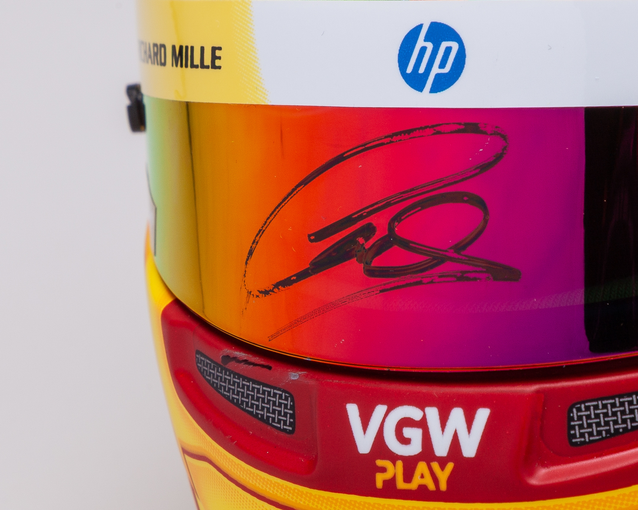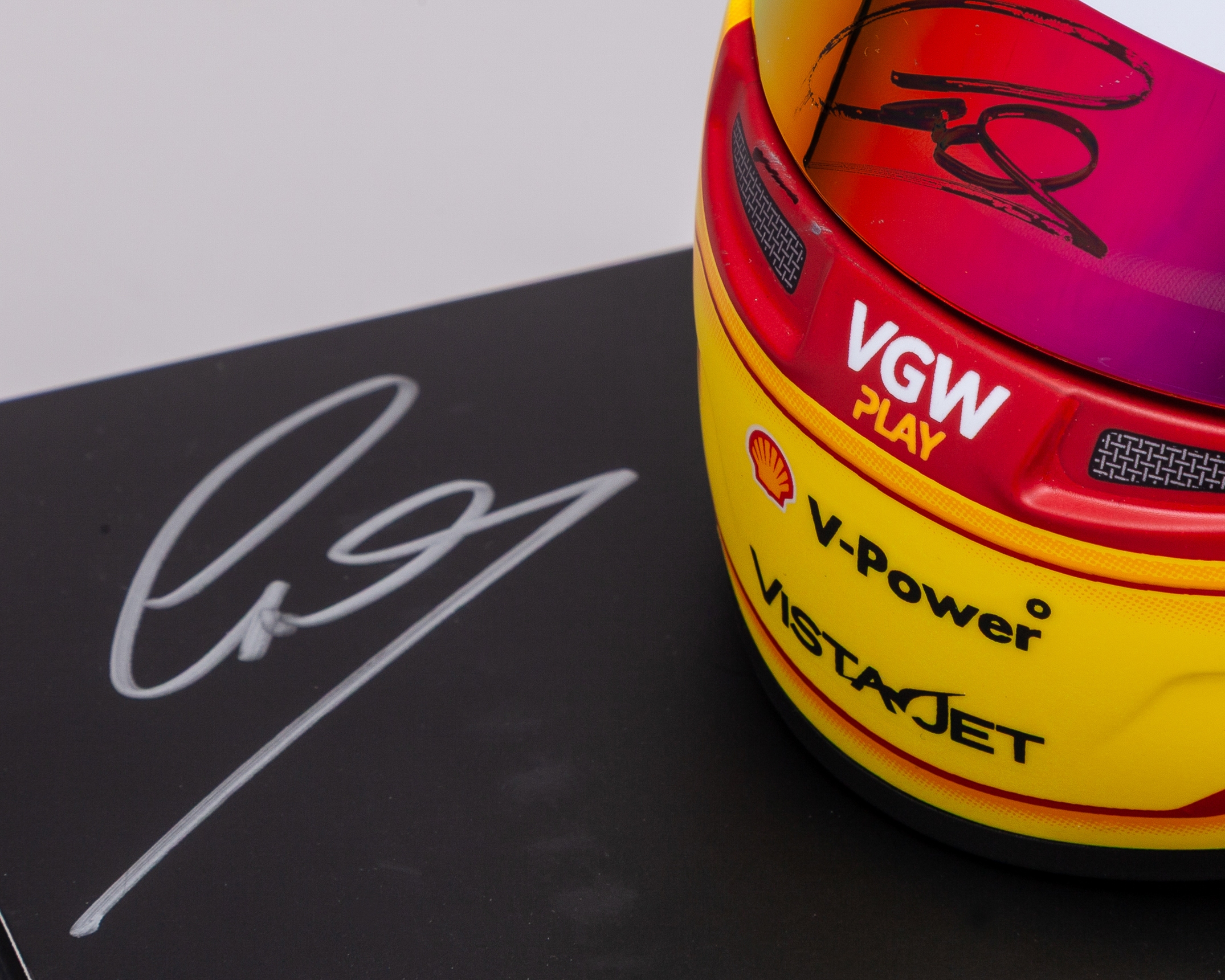 This 1:2 scale Bell Helmet has been personally signed by 7-time F1 World Champion Lewis Hamilton on the helmet visor and helmet box.