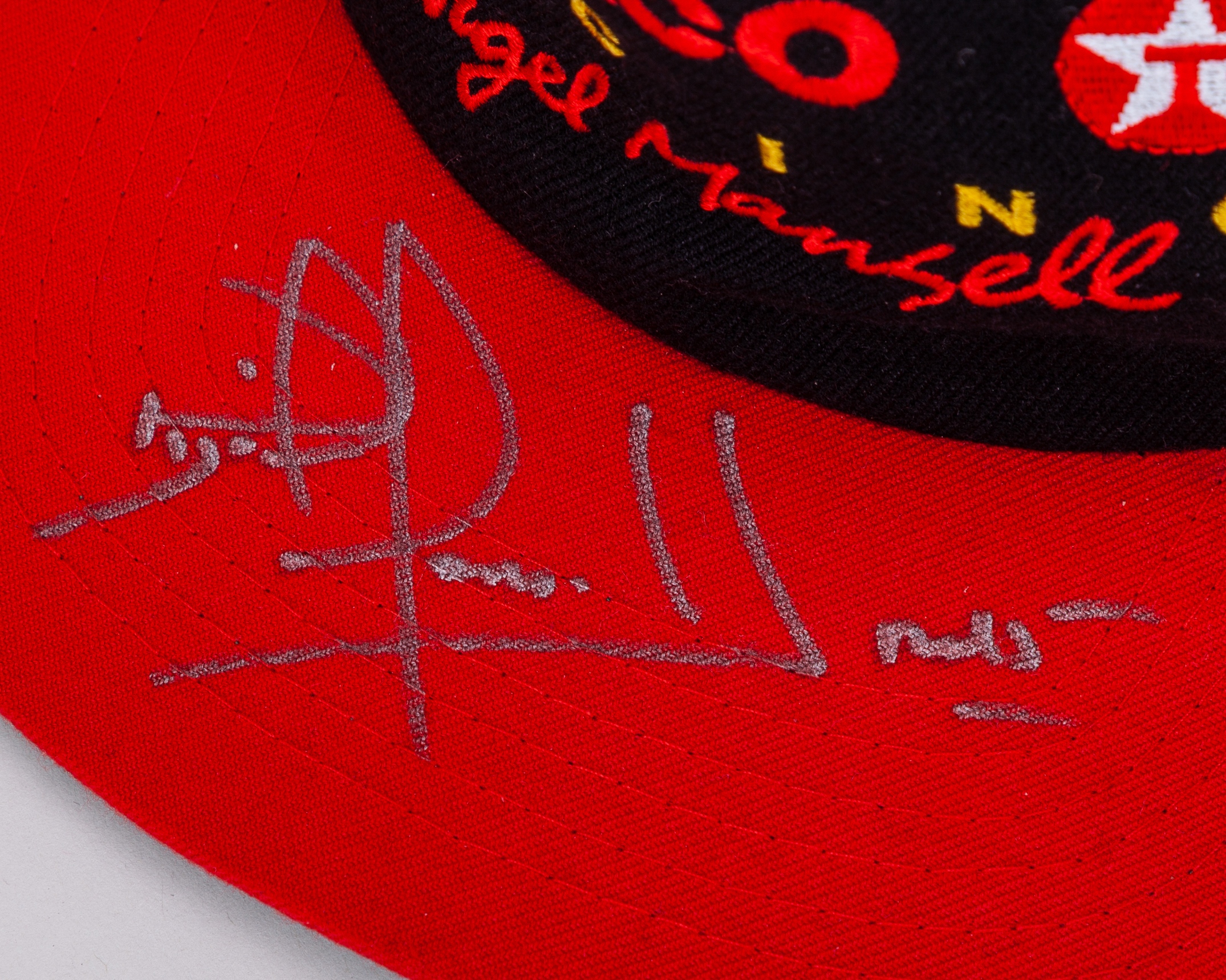 Nigel Mansell Signed Texaco Racing Podium Cap.