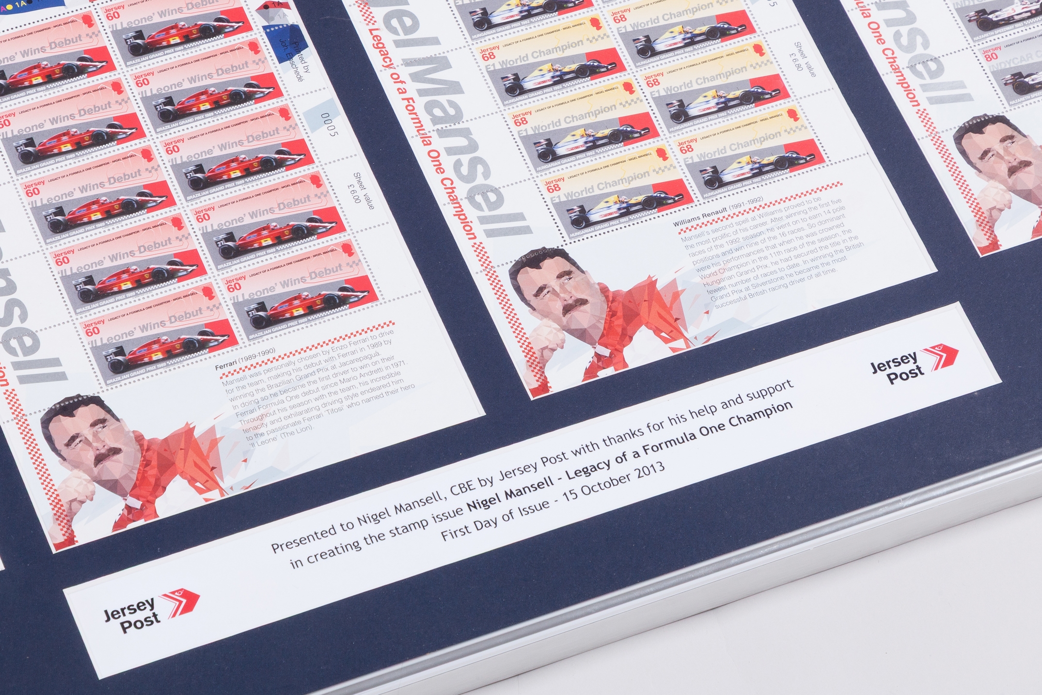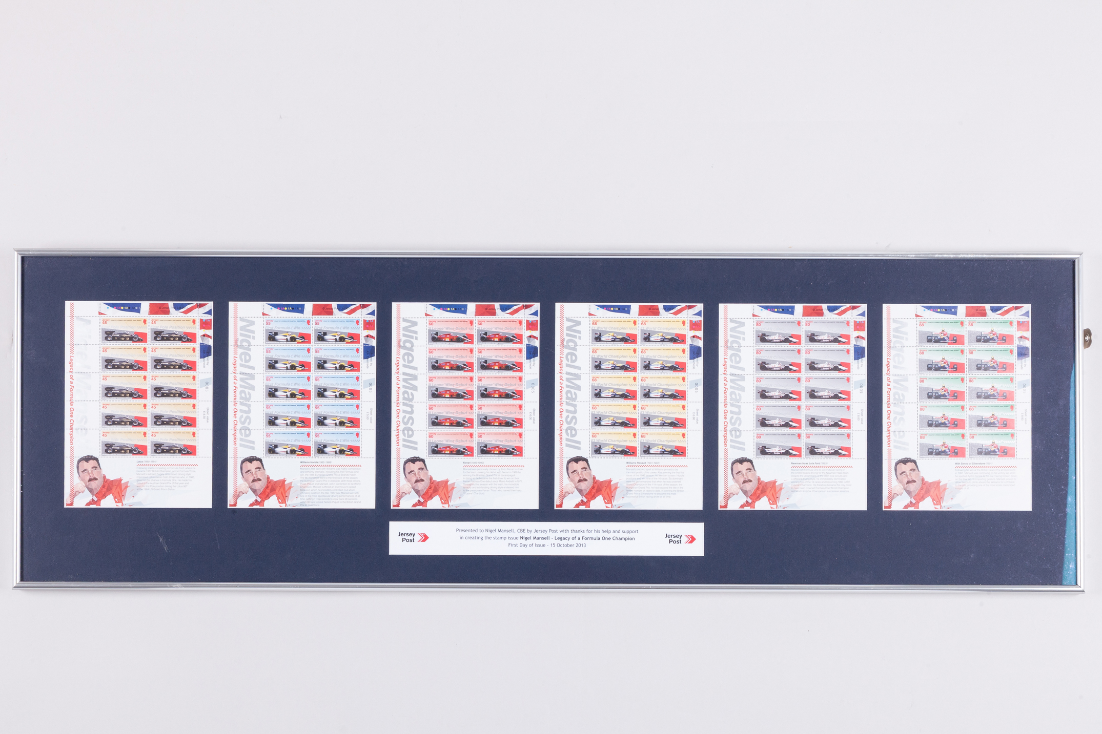Nigel Mansell Stamp Issue Framed Display.