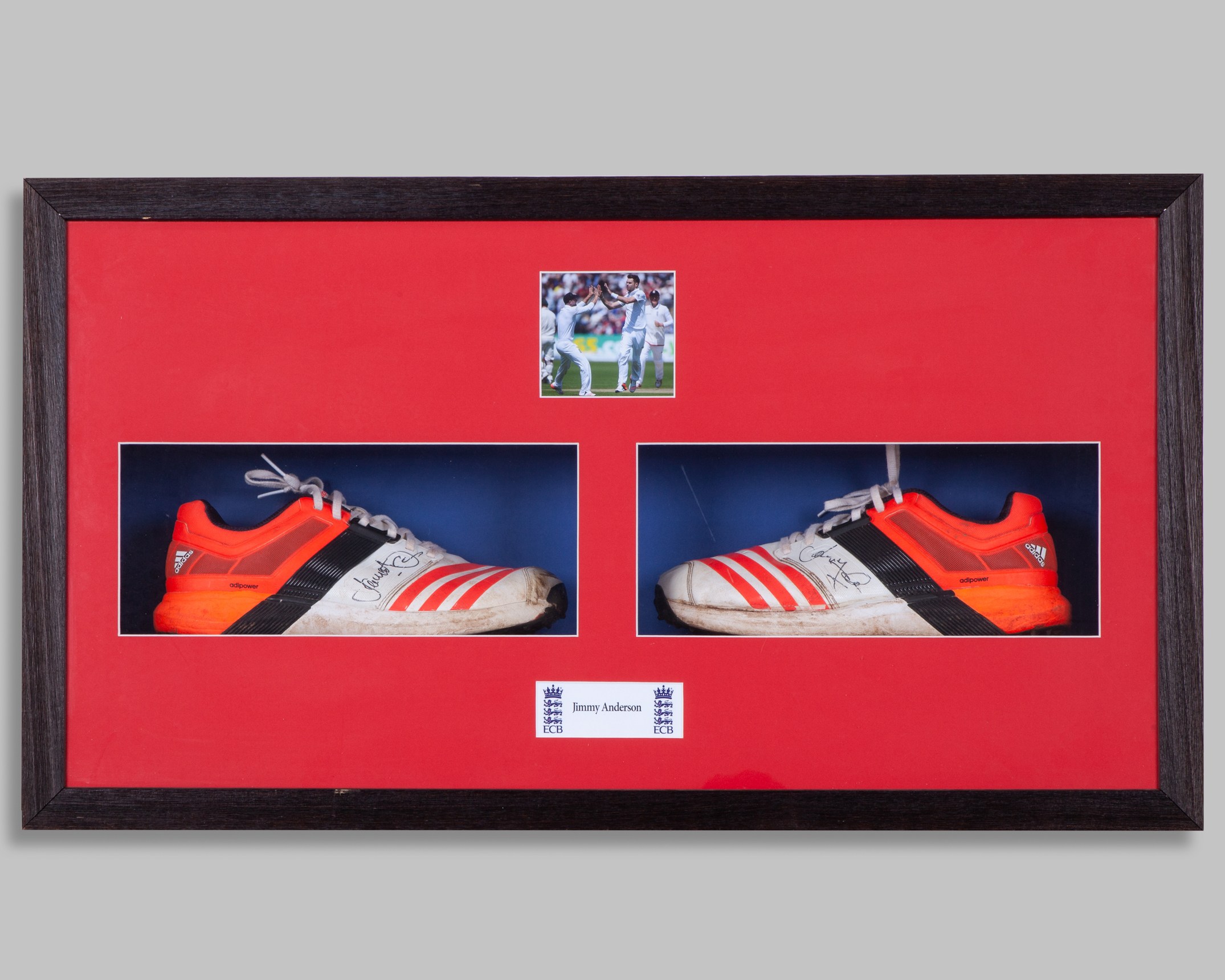 Jimmy Anderson a pair of match used Adidas autographed cricket shoes