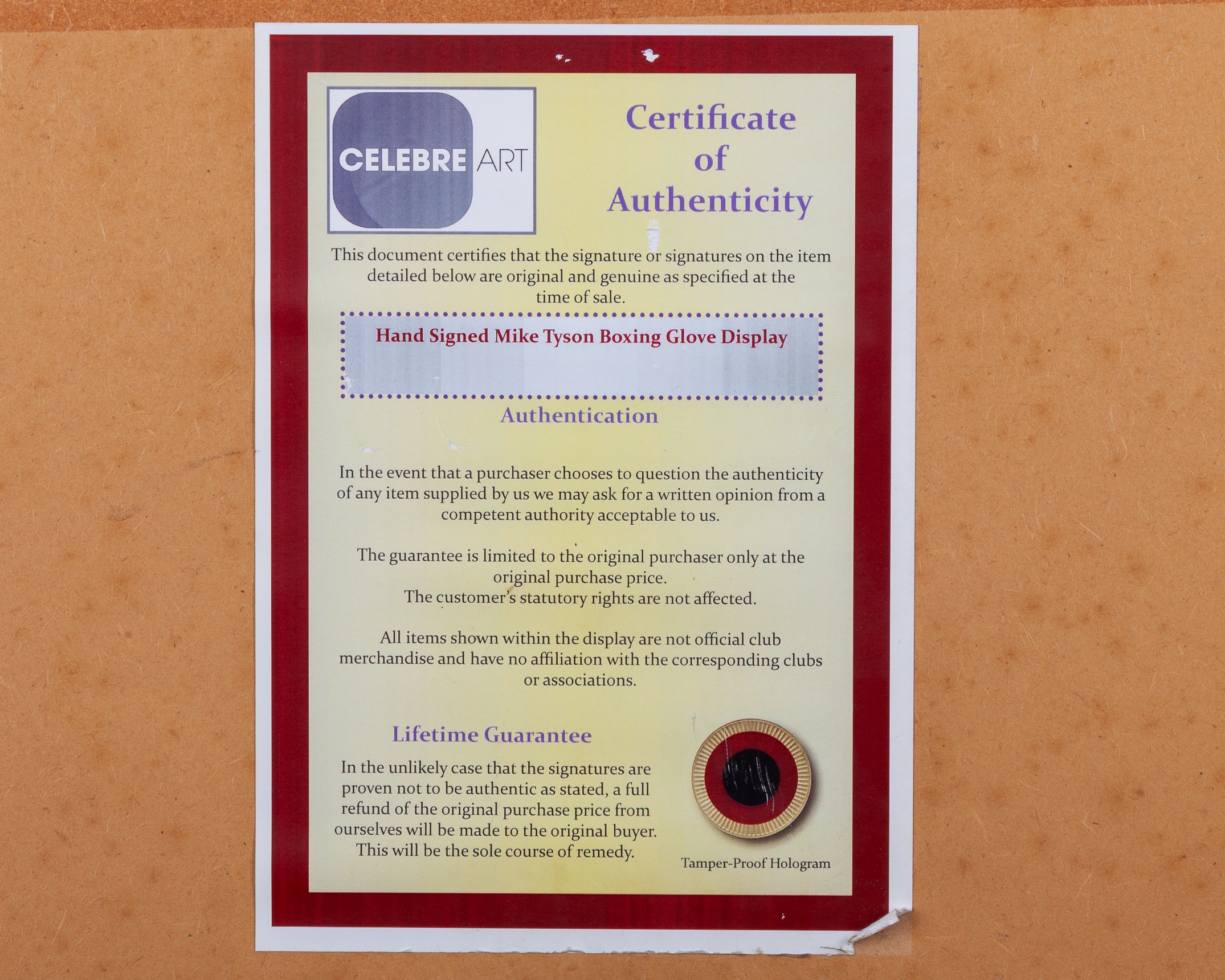 A Mike Tyson autographed Lonsdale boxing glove, with COA, framed, 90 x 66cm.
