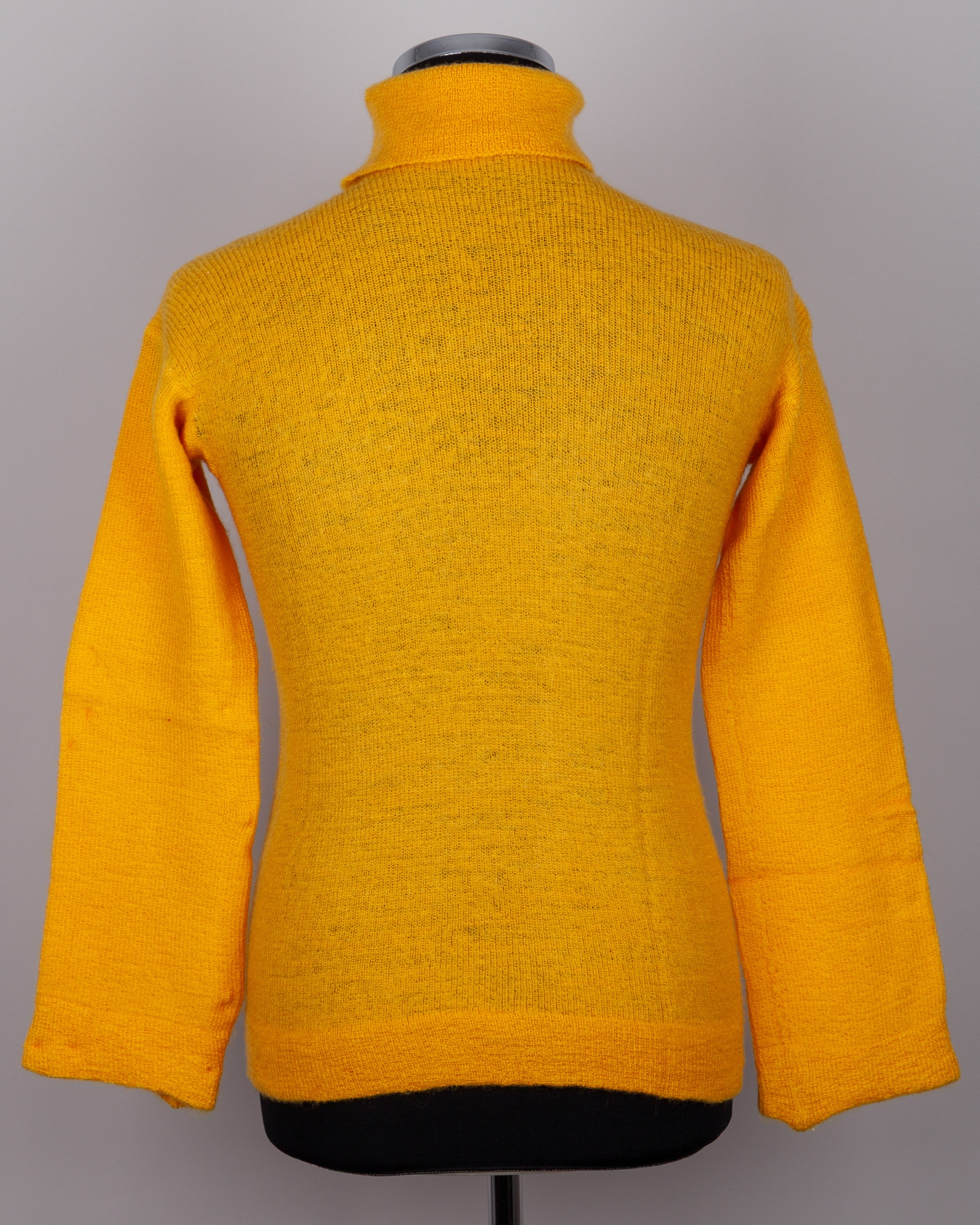Harry Gregg yellow woollen Northern Ireland v. England amateur international match worn shirt, 1952, with roll-neck collar and embroidered cloth badge, holed front and back due to framing