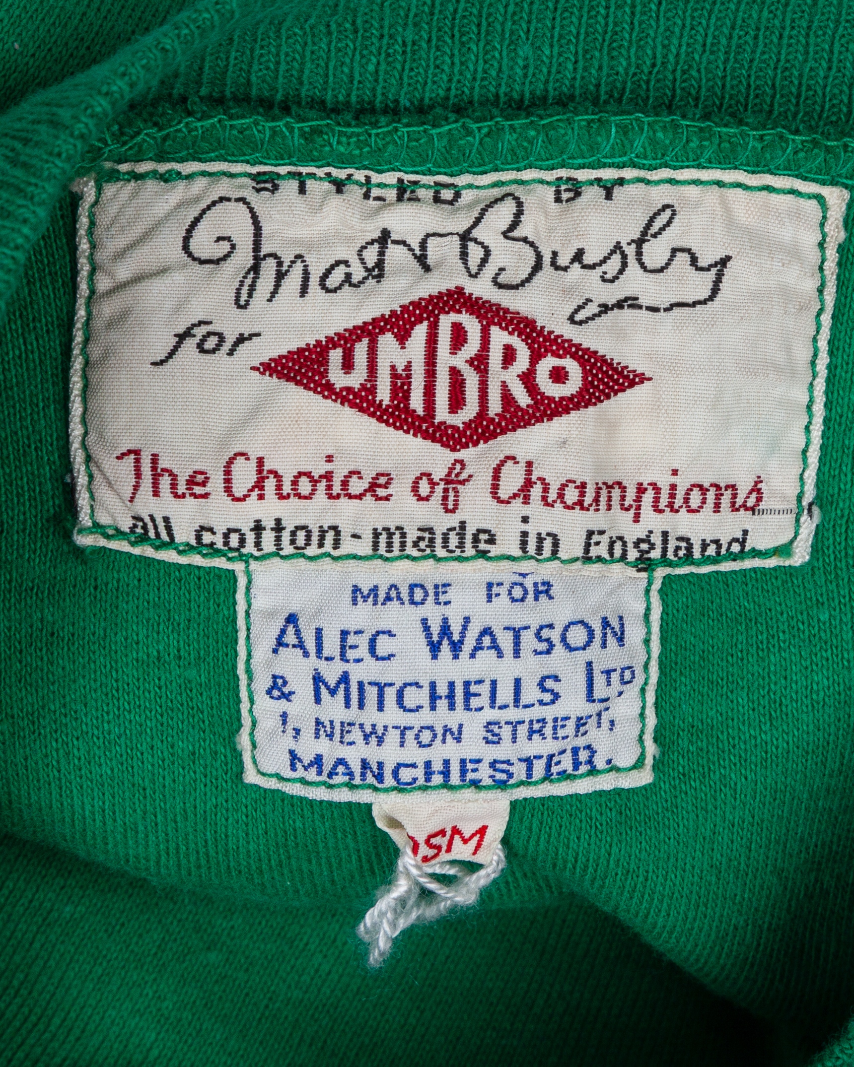 Harry Gregg green Manchester United v. Bolton Wanderers F.A.Cup Final match worn shirt, 1958, Umbro, OSM, with crew-neck collar and embroidered badge inscribed WEMBLEY 1958