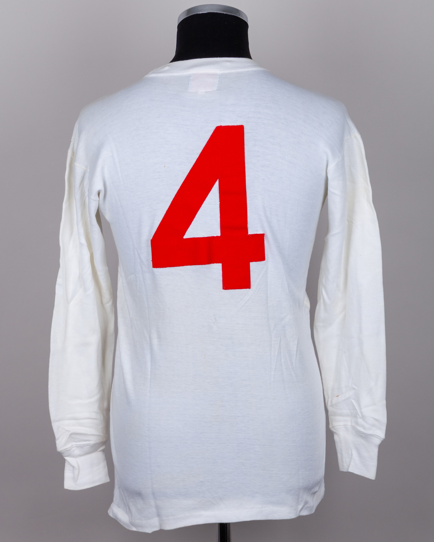 Nobby Stiles white No.4 England match worn long-sleeved shirt, mid 1960s