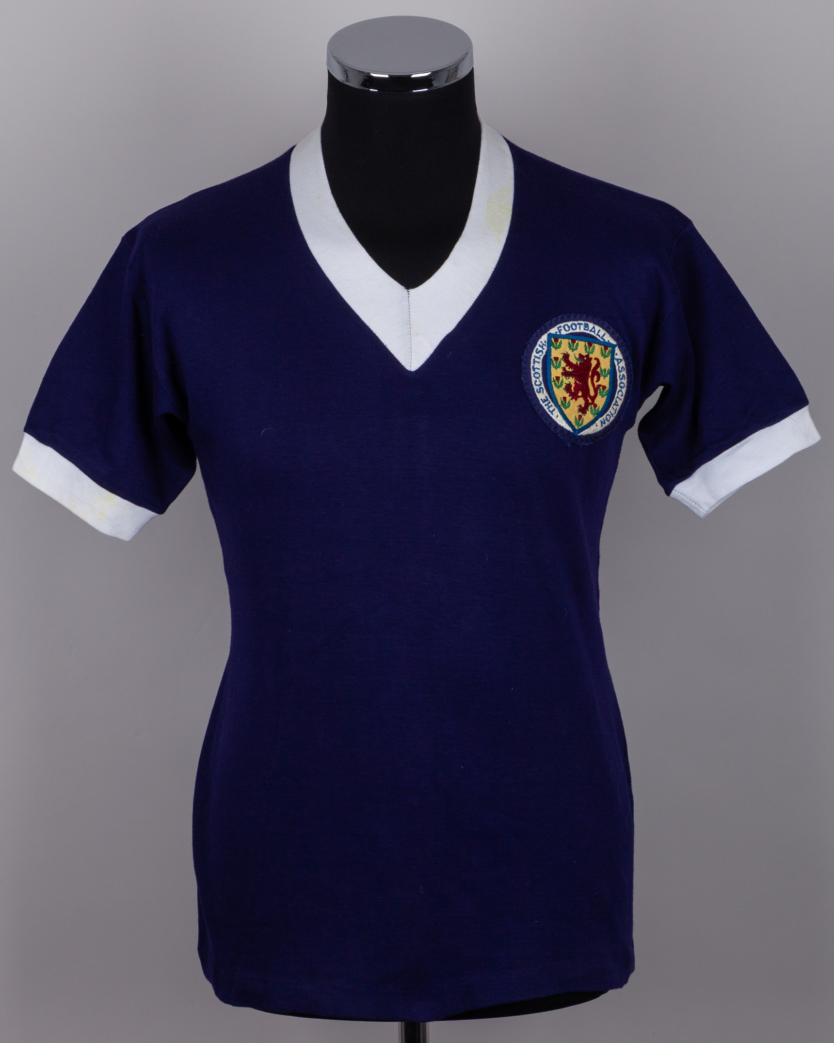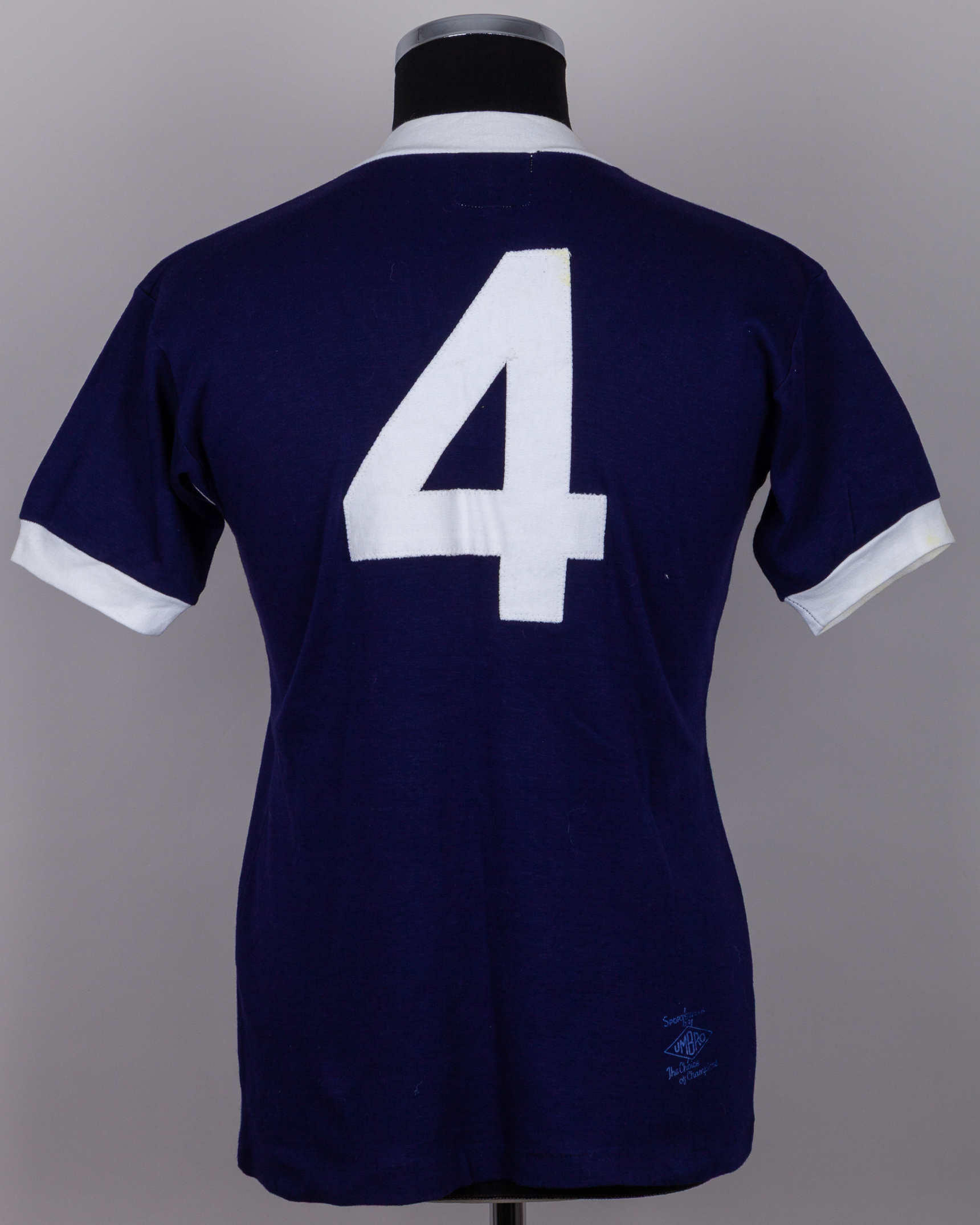 Paddy Crerand blue No.4 Scotland v. Northern Ireland match worn short-sleeved shirt, 1963