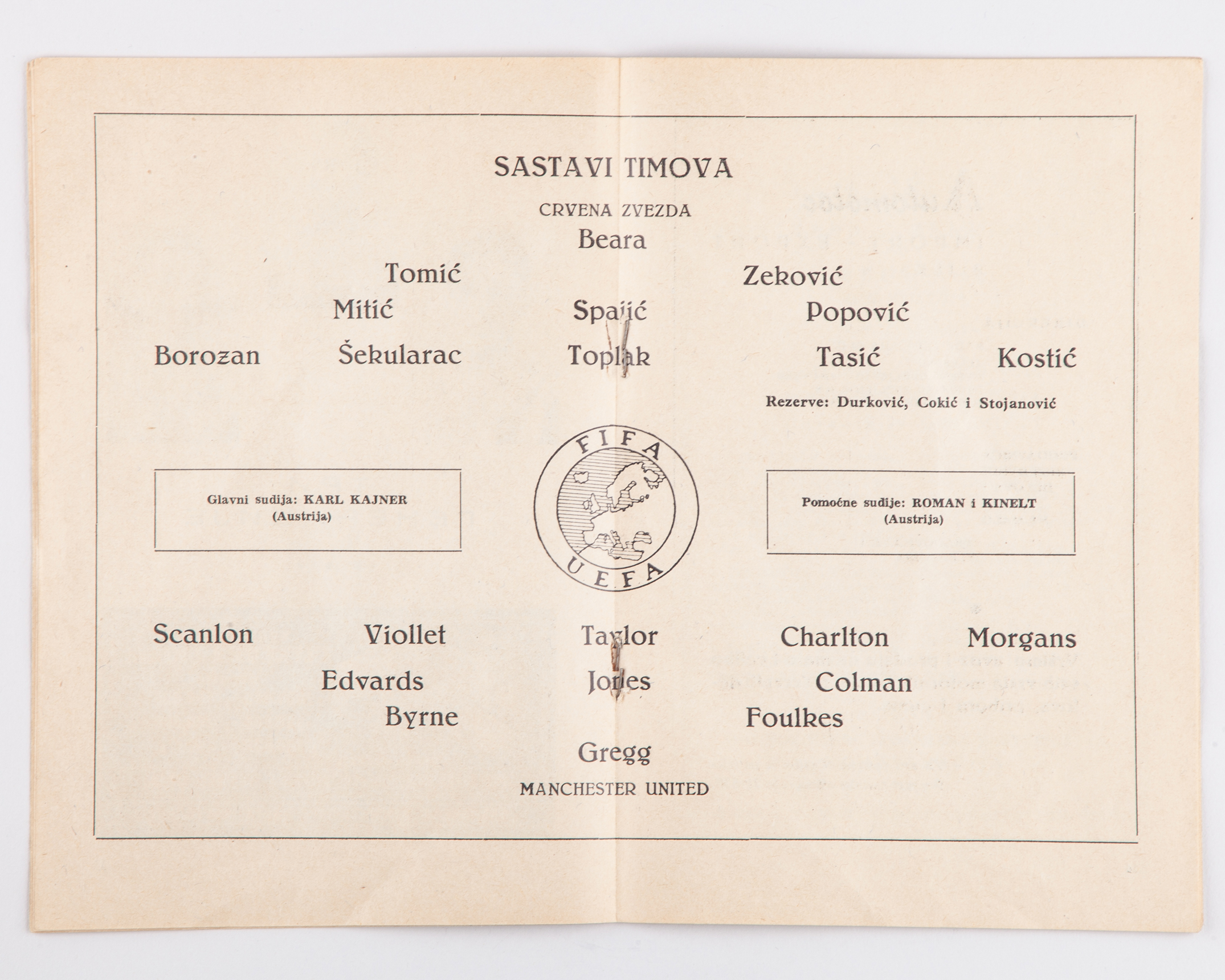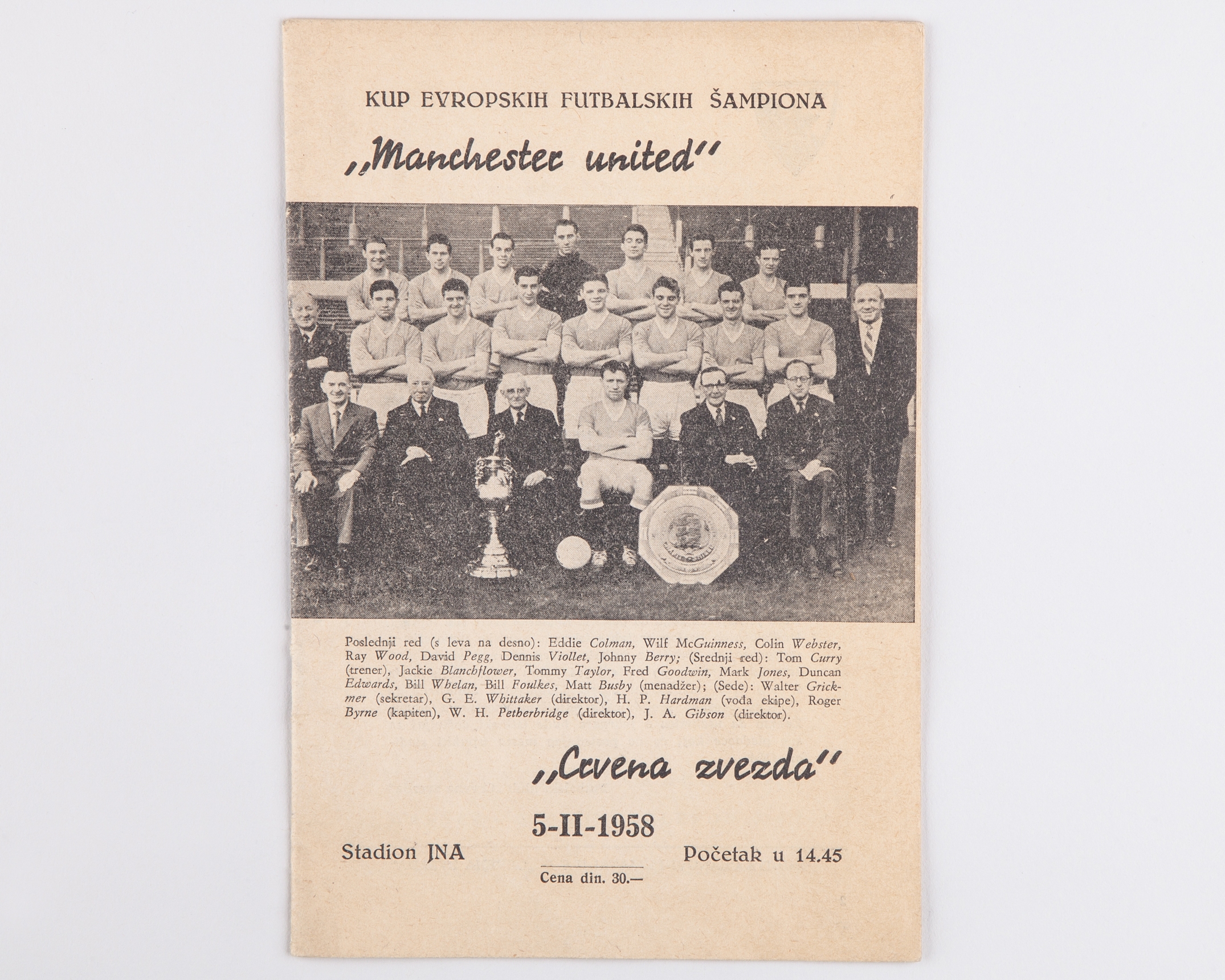 Harry Gregg Red Star Belgrade v. Manchester United, European Cup match programme, 5th February 1958 this was the match prior to the Munich Air Disaster