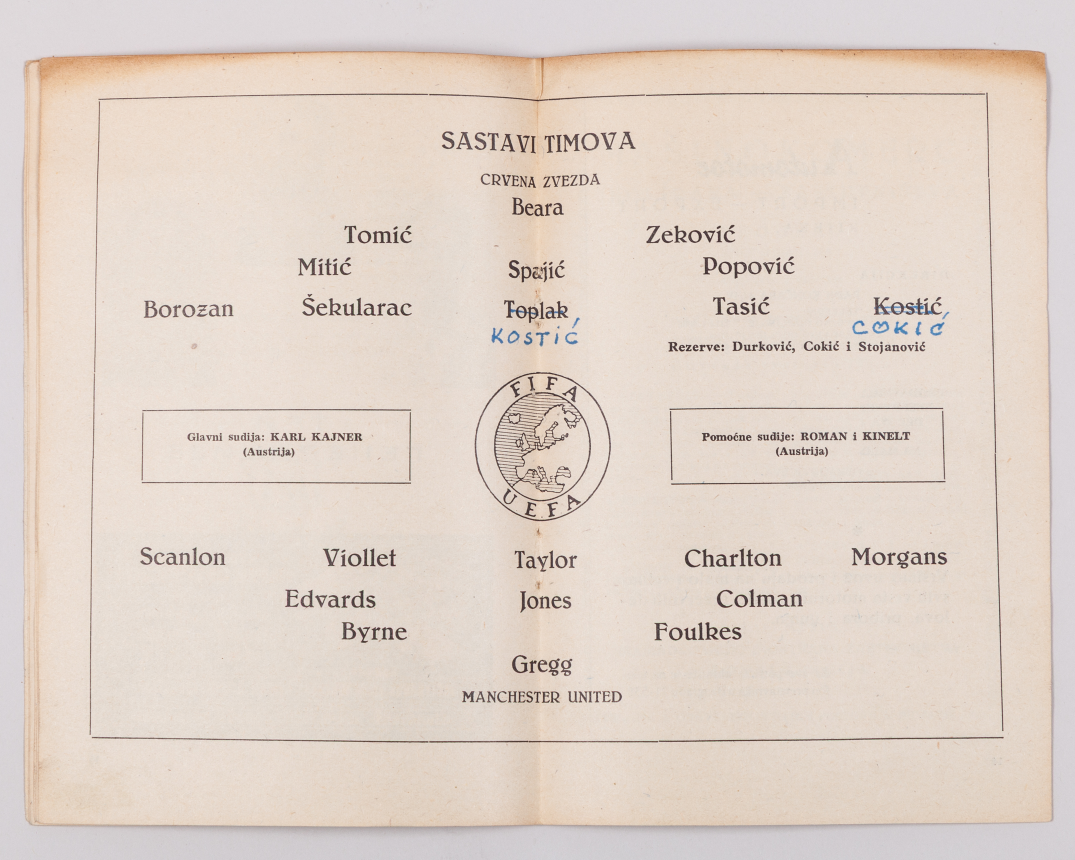 Harry Gregg Red Star Belgrade v. Manchester United, European Cup match programme, 5th February 1958 this was the match prior to the Munich Air Disaster