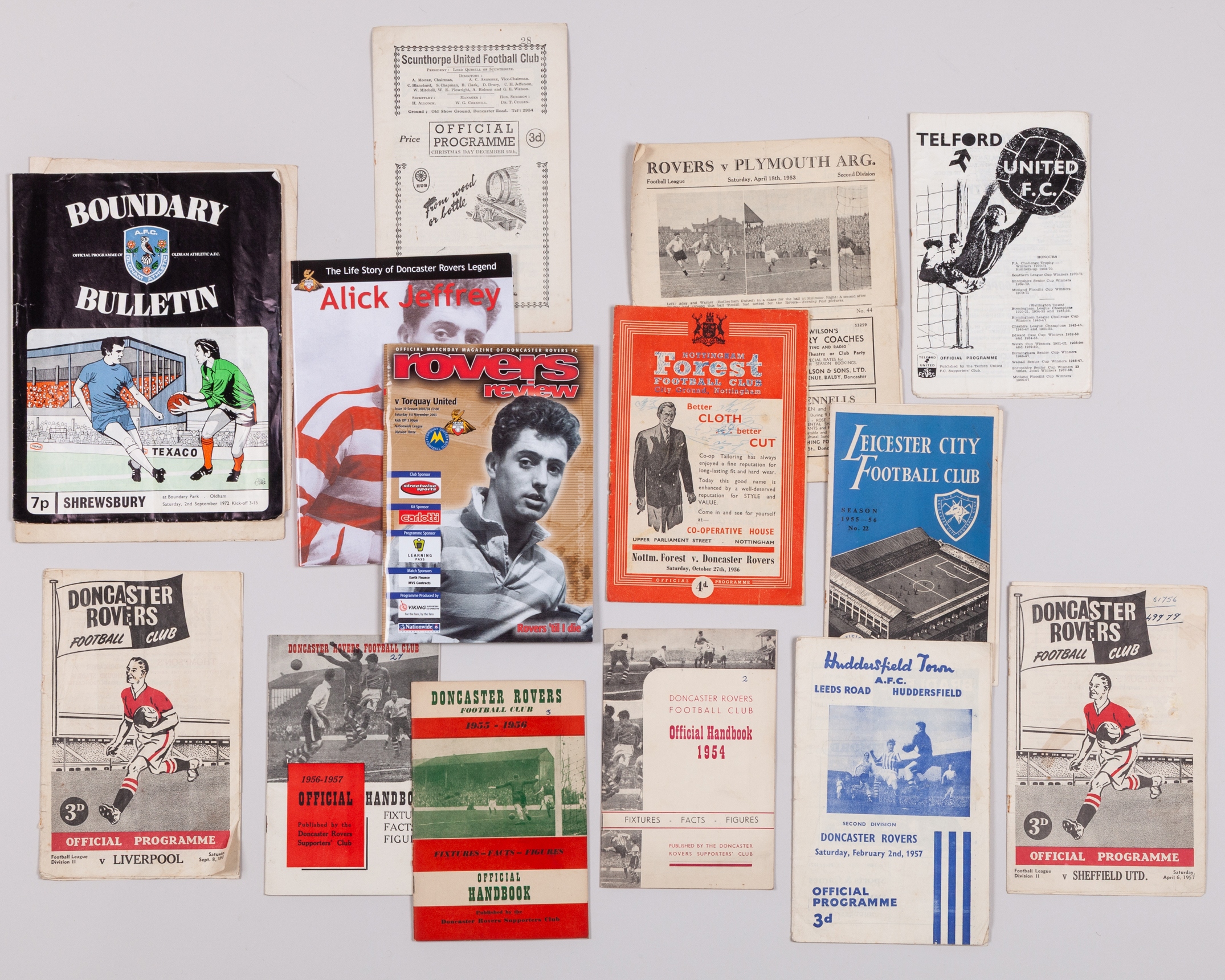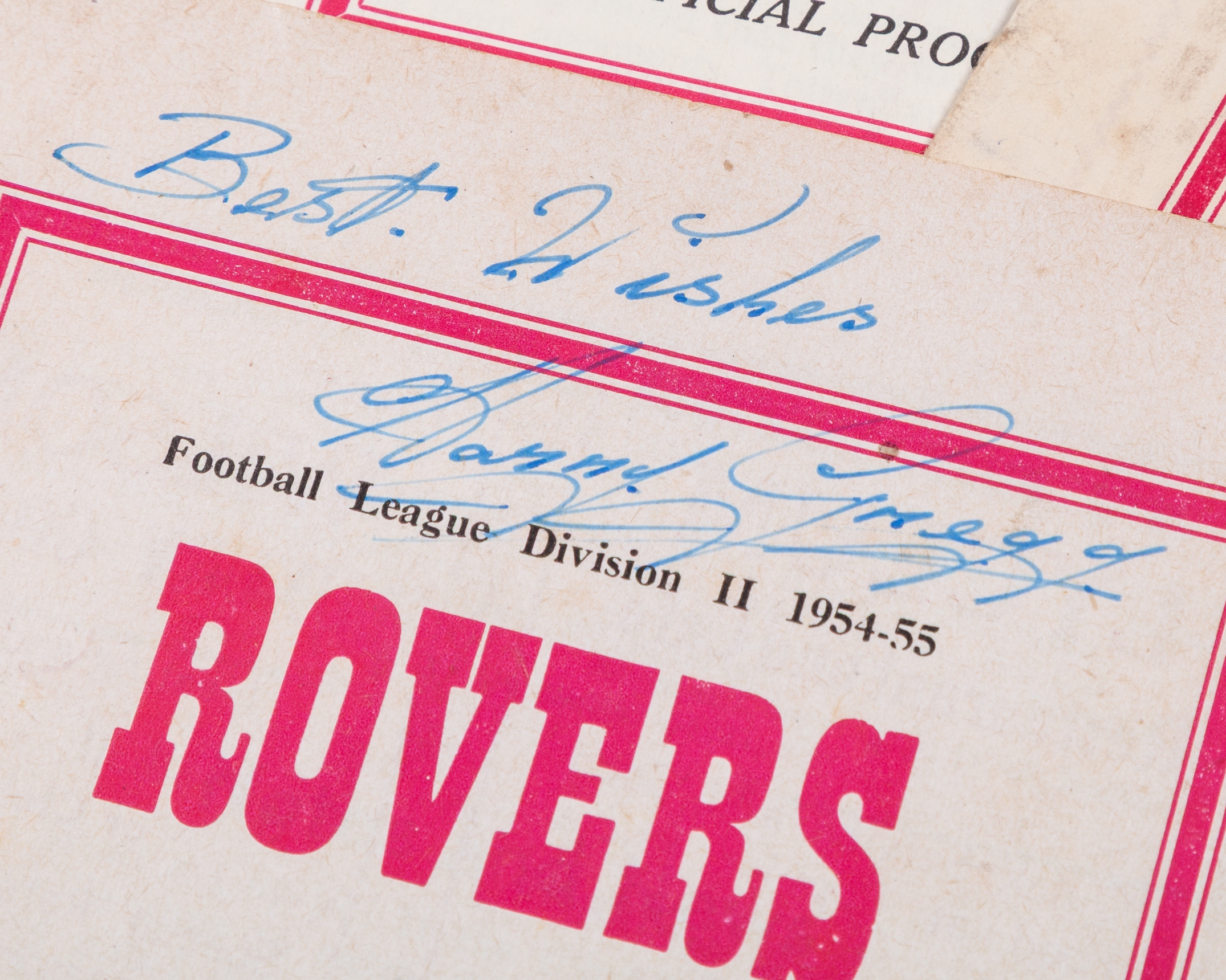 Harry Gregg eight Doncaster Rovers handbooks 1953 to 1957-58, one autographed and a collection of 17 Doncaster Rovers home and away match programmes 1950s including Celtic, 18th November 1952, Liverpool 8th September 1956 etc