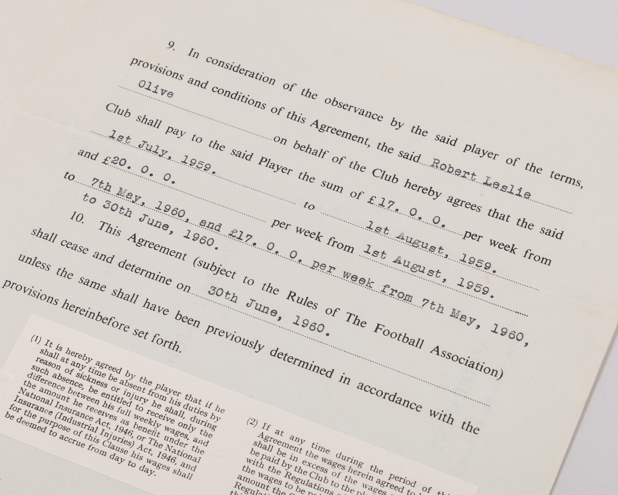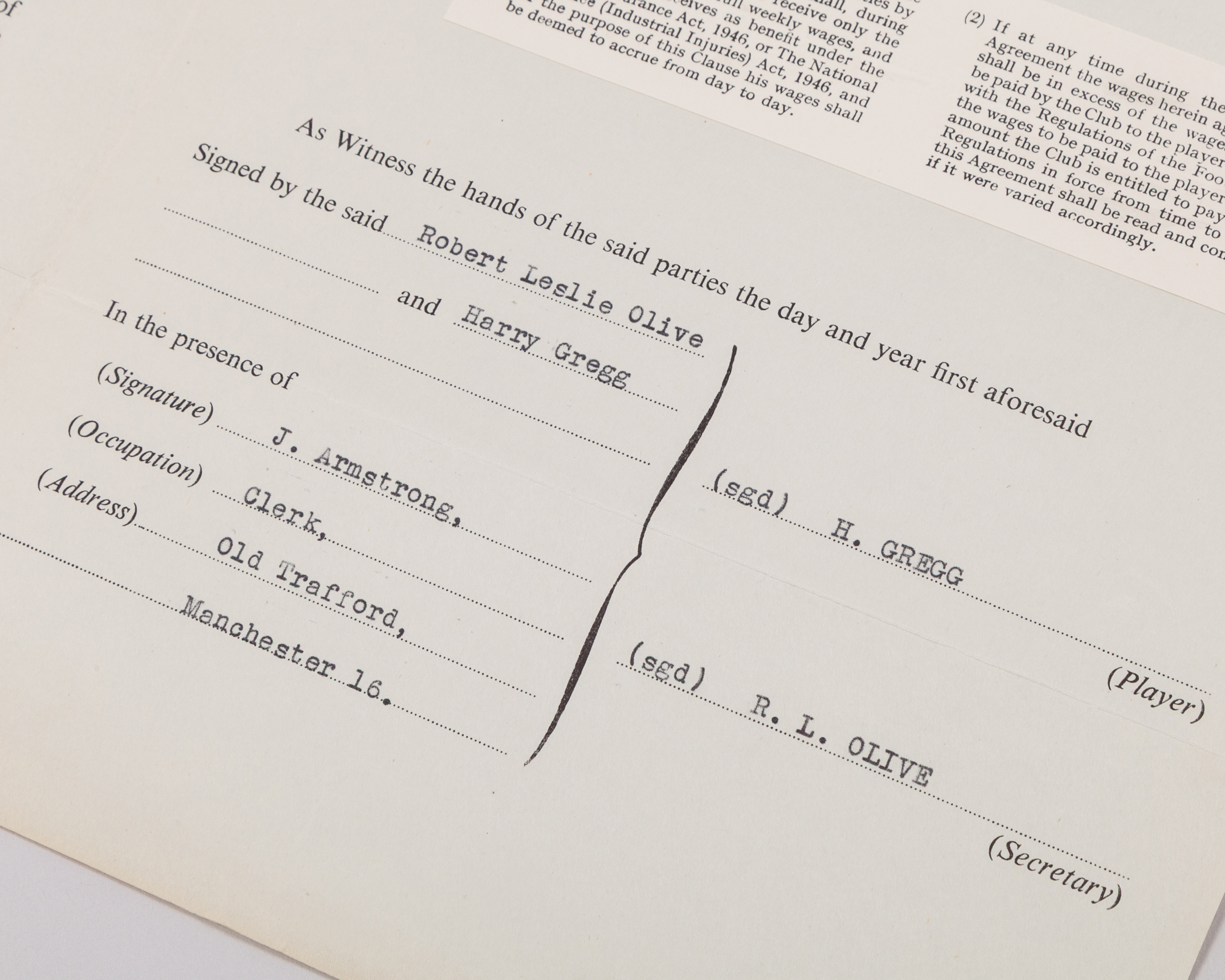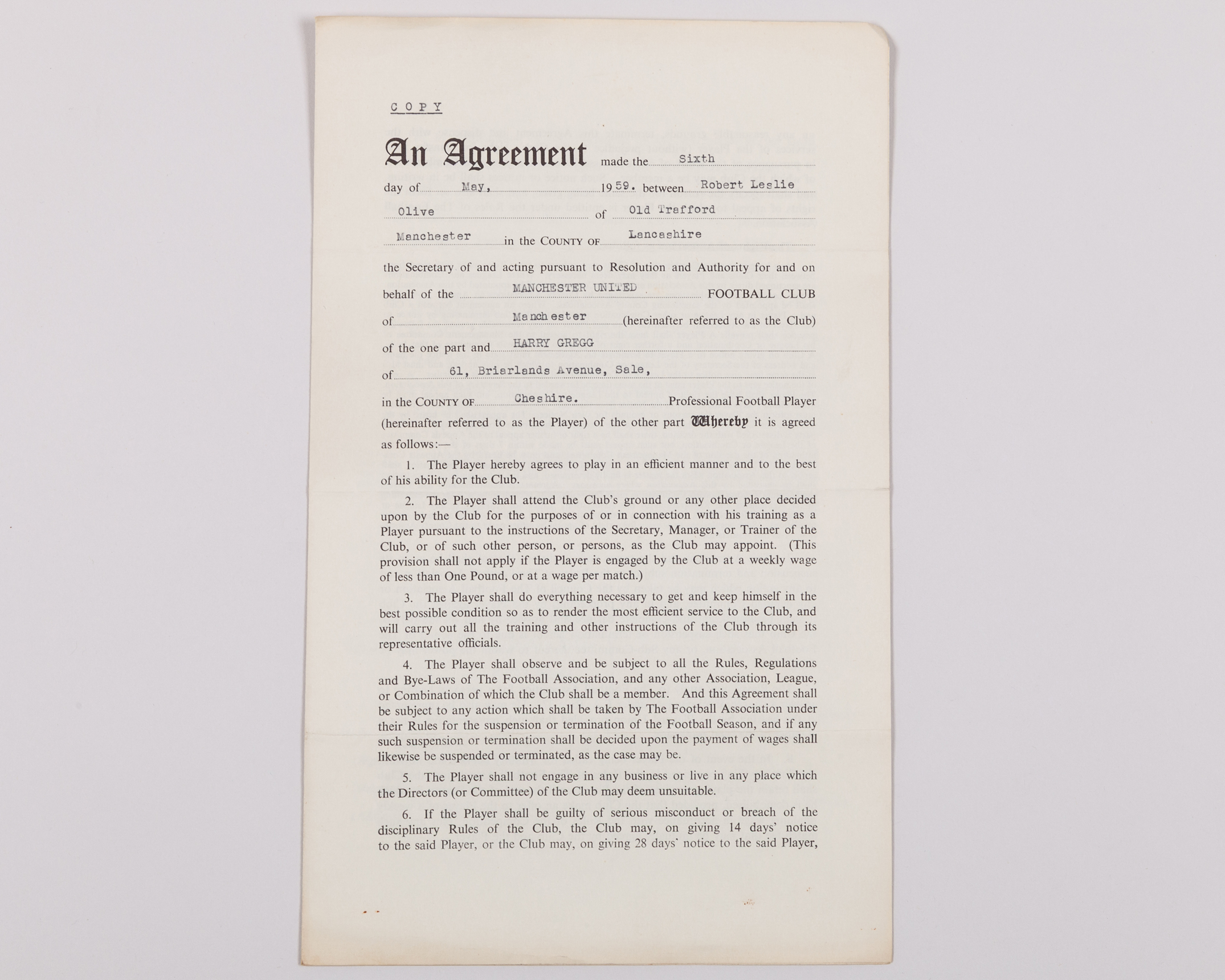 Harry Gregg a Manchester United players contract, from 6th May 1959