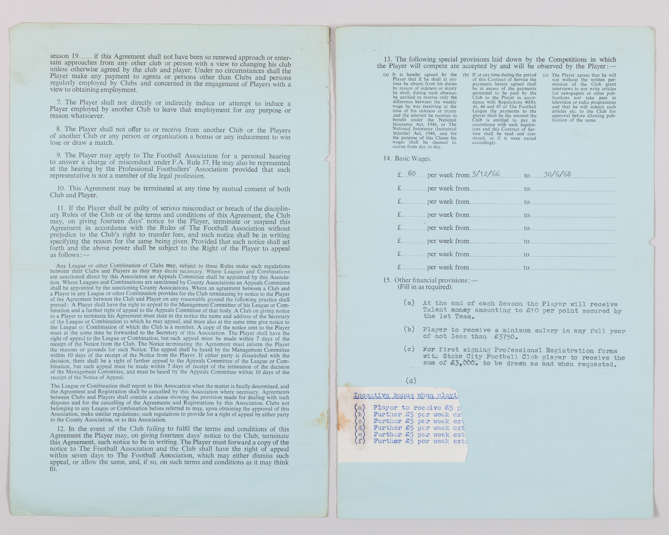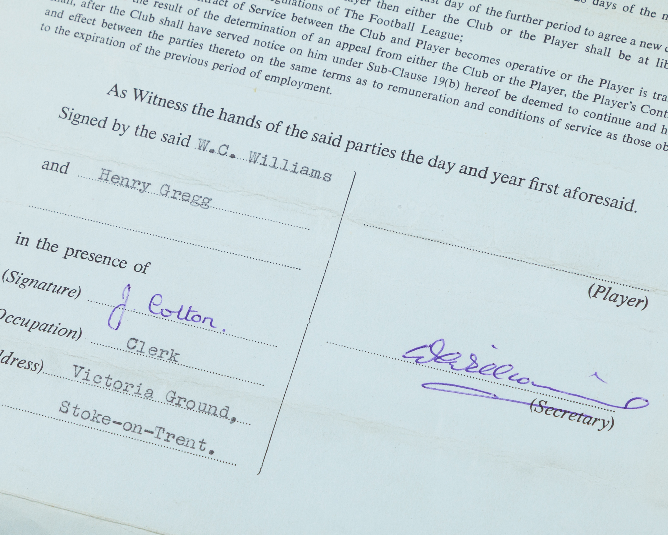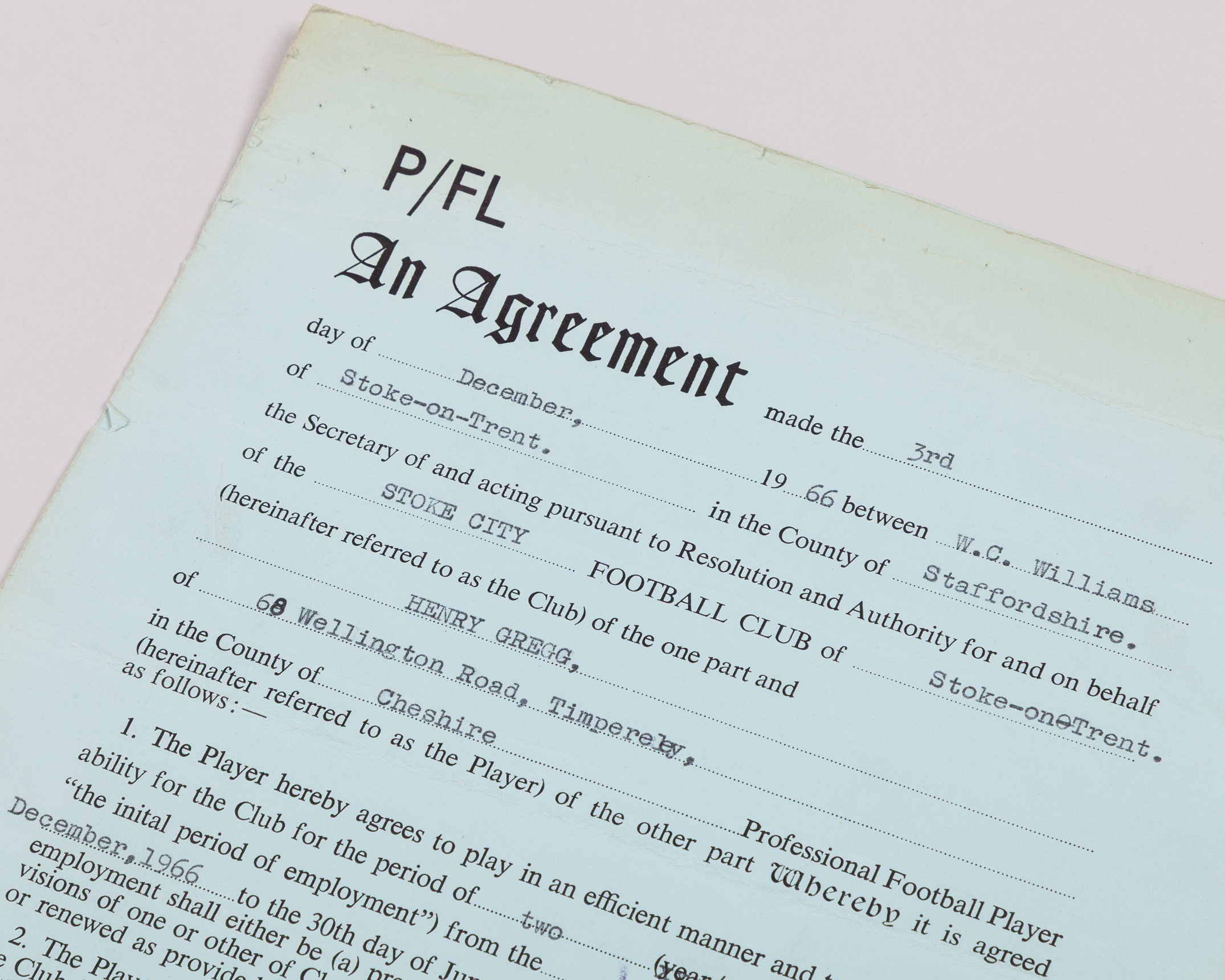 Harry Gregg a Stoke-on-Trent player contract, 1966
