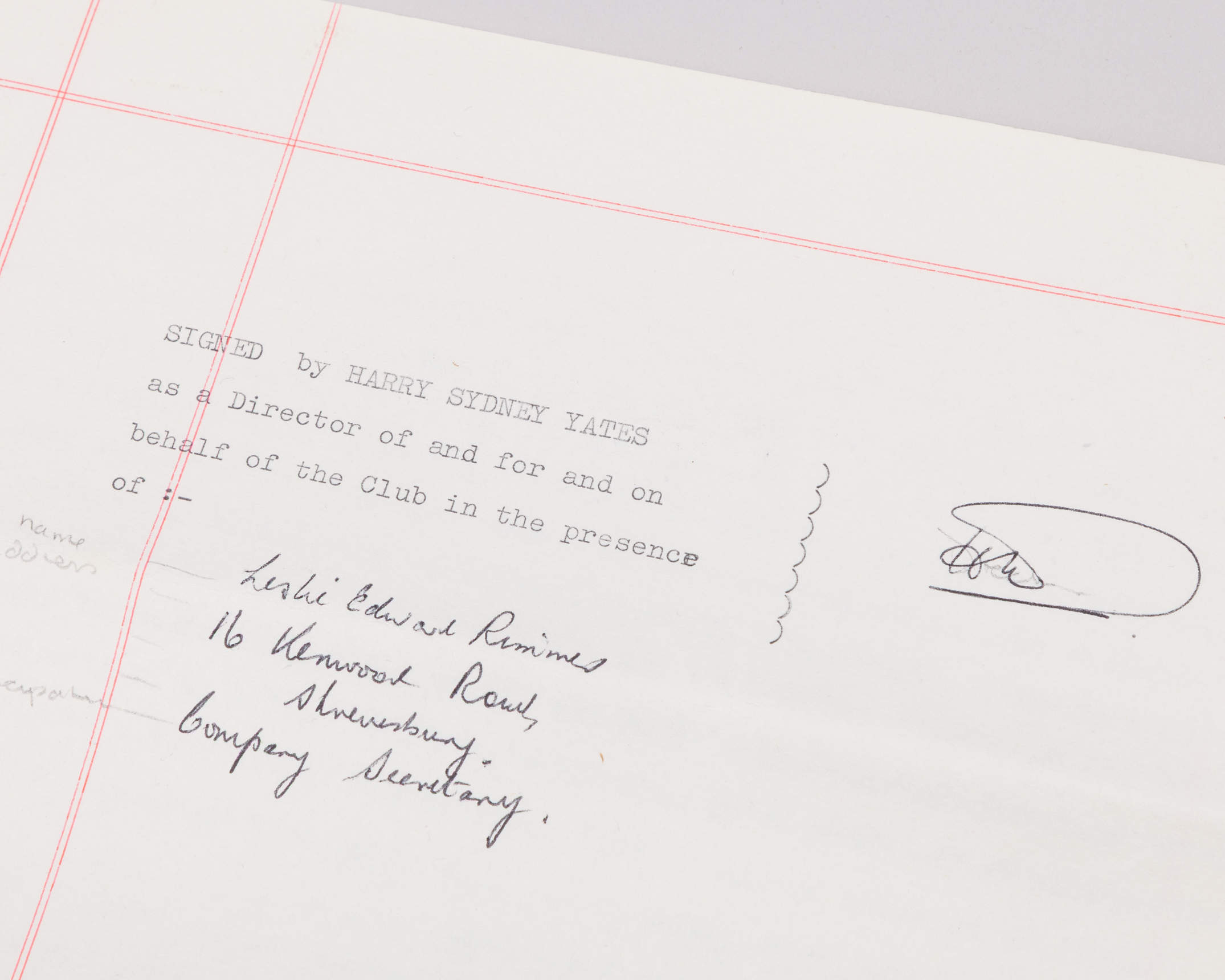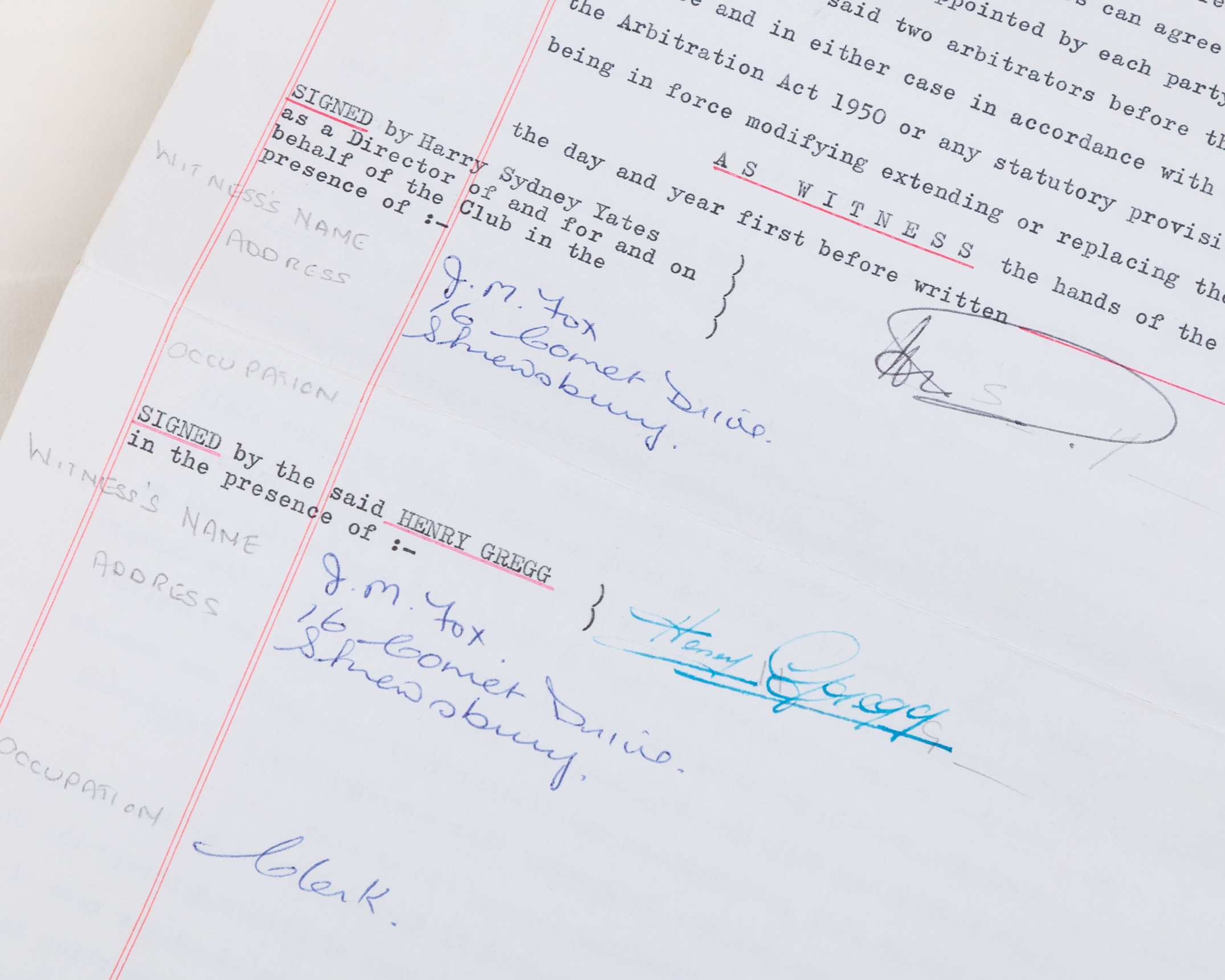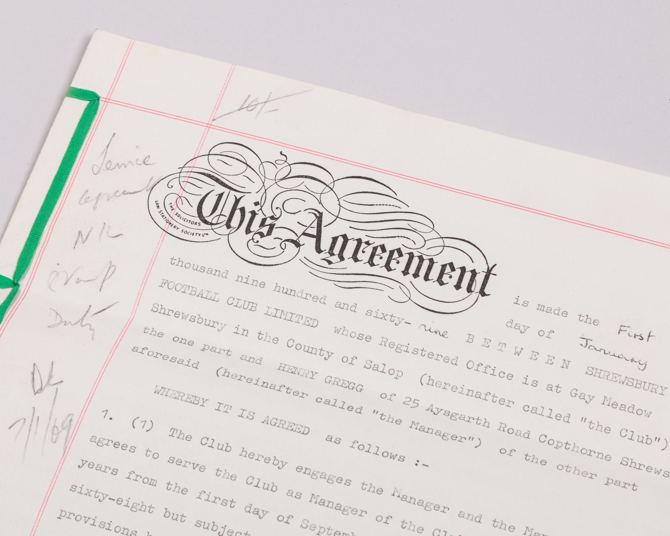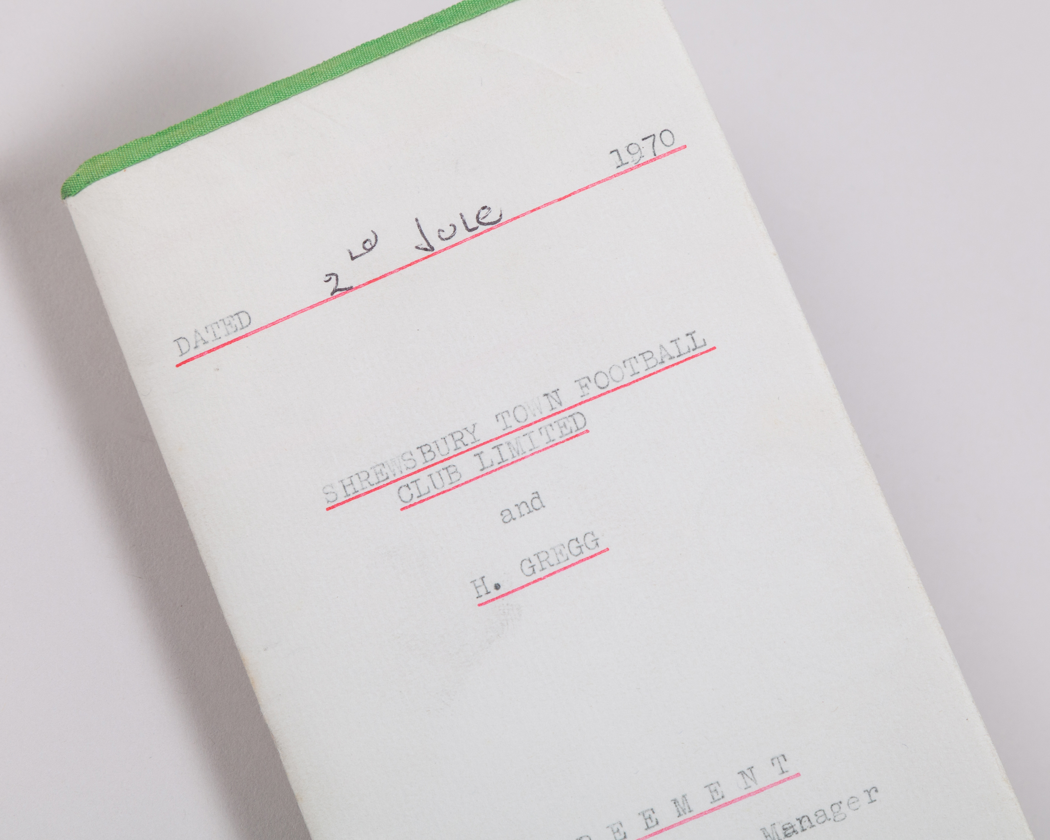 Harry Gregg two Shrewsbury Town manager's contracts, 1969-70, comprising 1st Jan 1969 and 2nd June 1970 (2)