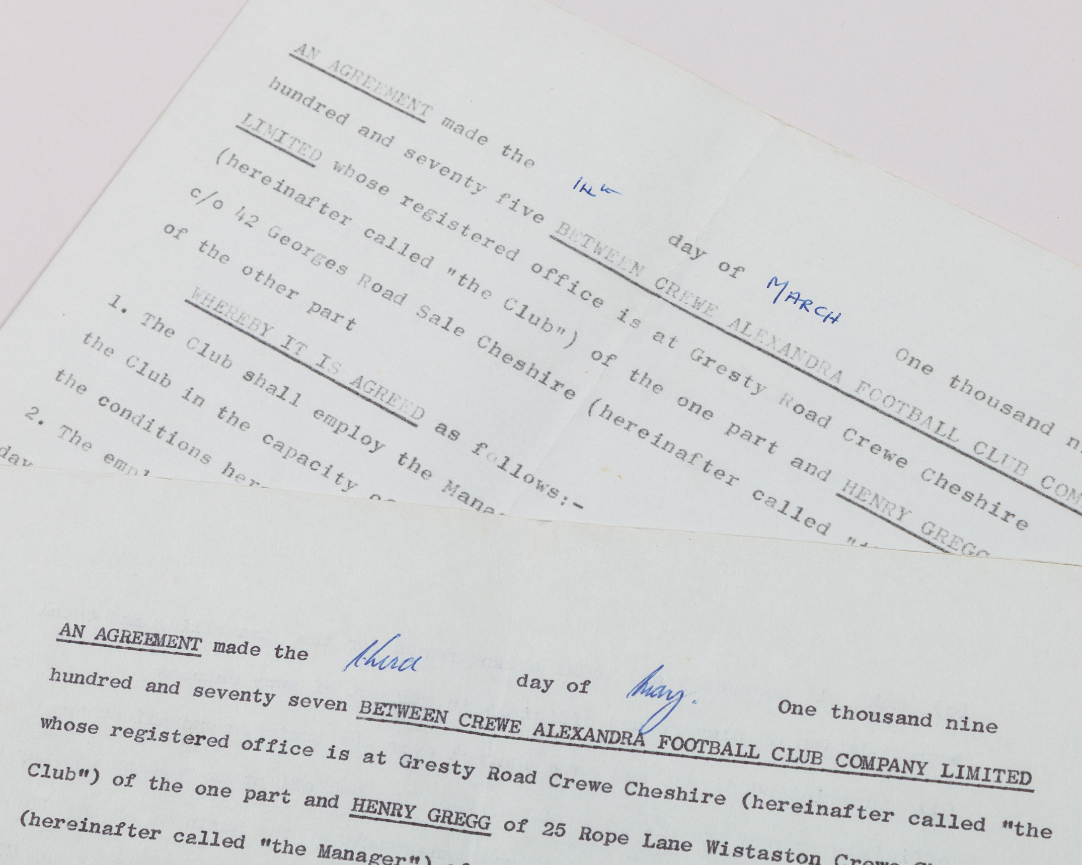 Harry Gregg three Crewe Alexandra F.C. contracts
