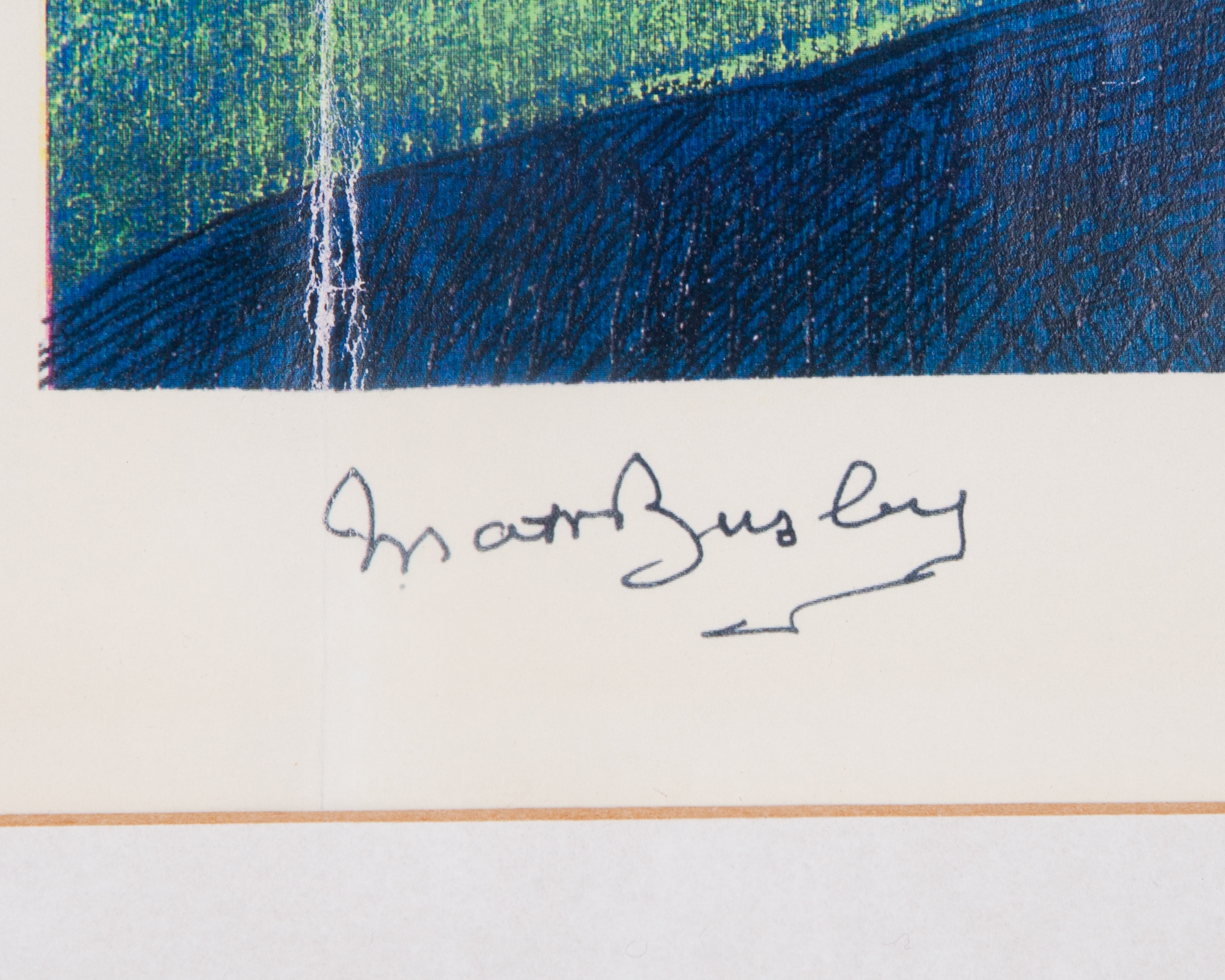 Harold Riley colour print of Matt Busby with quote from Dave Sexton