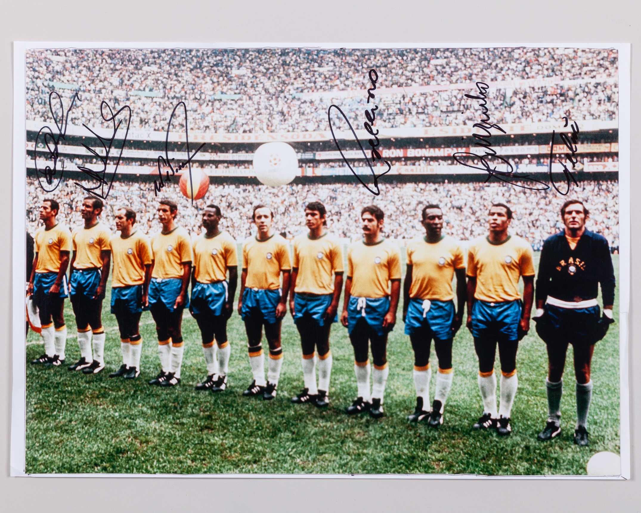 A partial autographed colour print of the Brazil 1970 World Cup-winning team