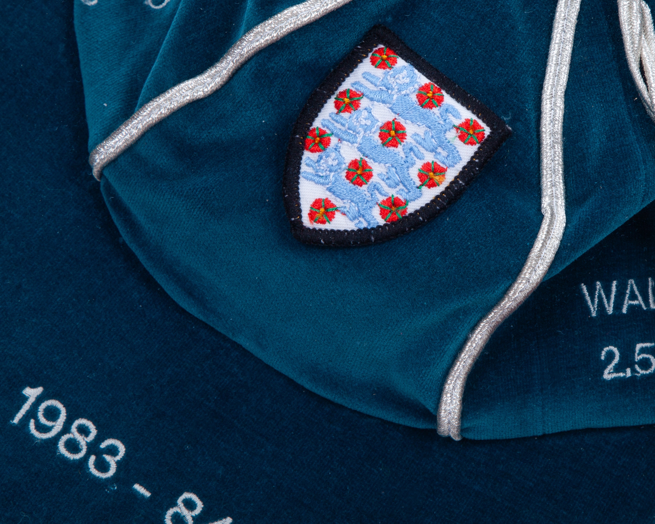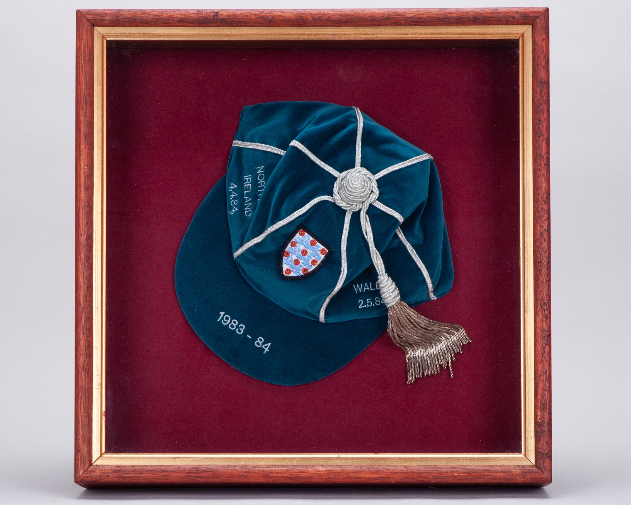 The above cap represents Sammy's 12th and 13th International appearances for England, in the match played on 4th April 1984 at Wembley, England defeated Ireland 1-0 and in the match against Wales played on 2nd May 1984 at the Racecourse Ground, Wales defeated England 1-0