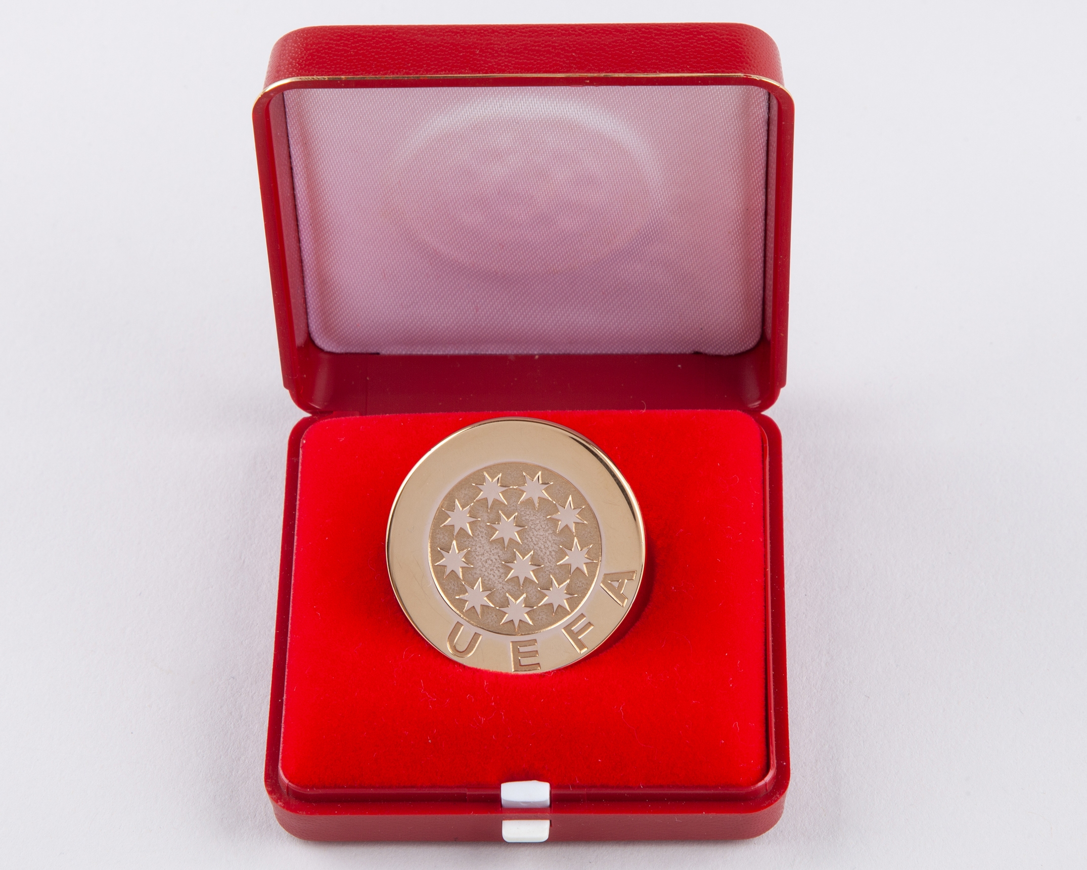 Sammy Lee Continental gilt-metal Liverpool v. Roma UEFA European Cup winner's medal, 1984, the obverse inscribed UEFA, the reverse inscribed COUPE DES CLUBS CHAMPIONS EUROPEENS, 1981, the reverse with residue of blu tack from the medal being framed, in original fitted case