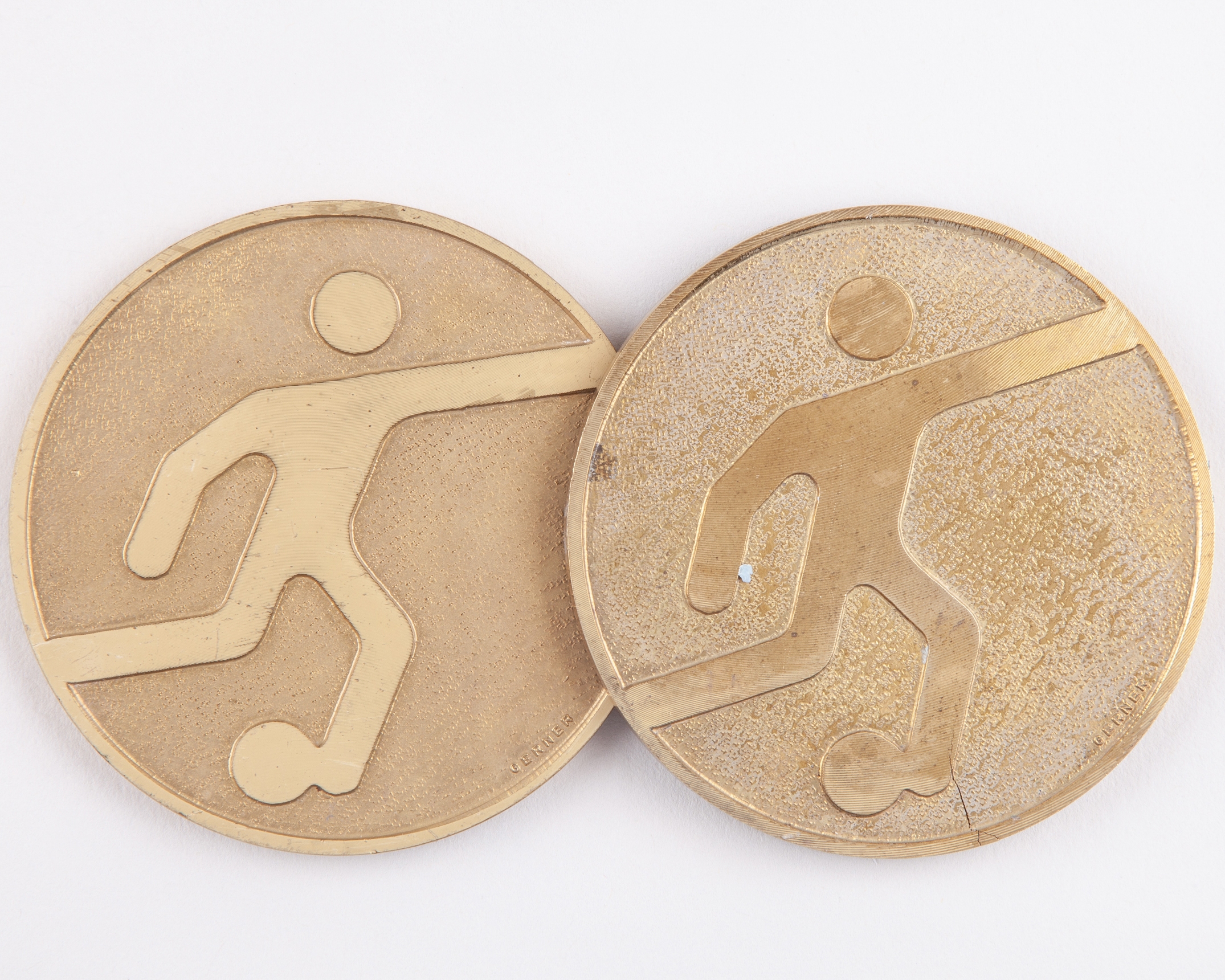 Sammy Lee two gilt-metal Challenge Europeen football medals, 1982 and 1984